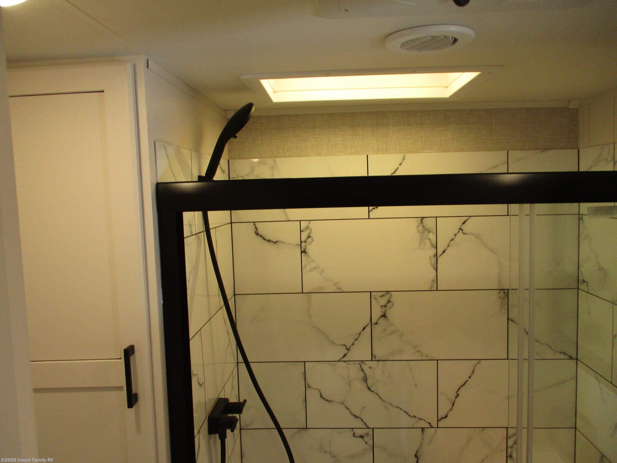 Ceiling Fan, Fireplace, King Size Bed, Medicine Cabinet, Rocker Recliner(s), Roof Vents, Shower, Toilet -