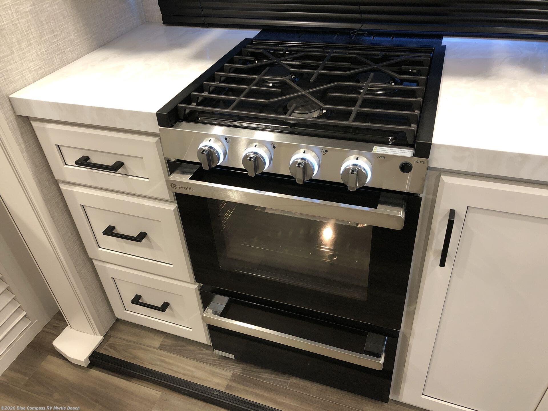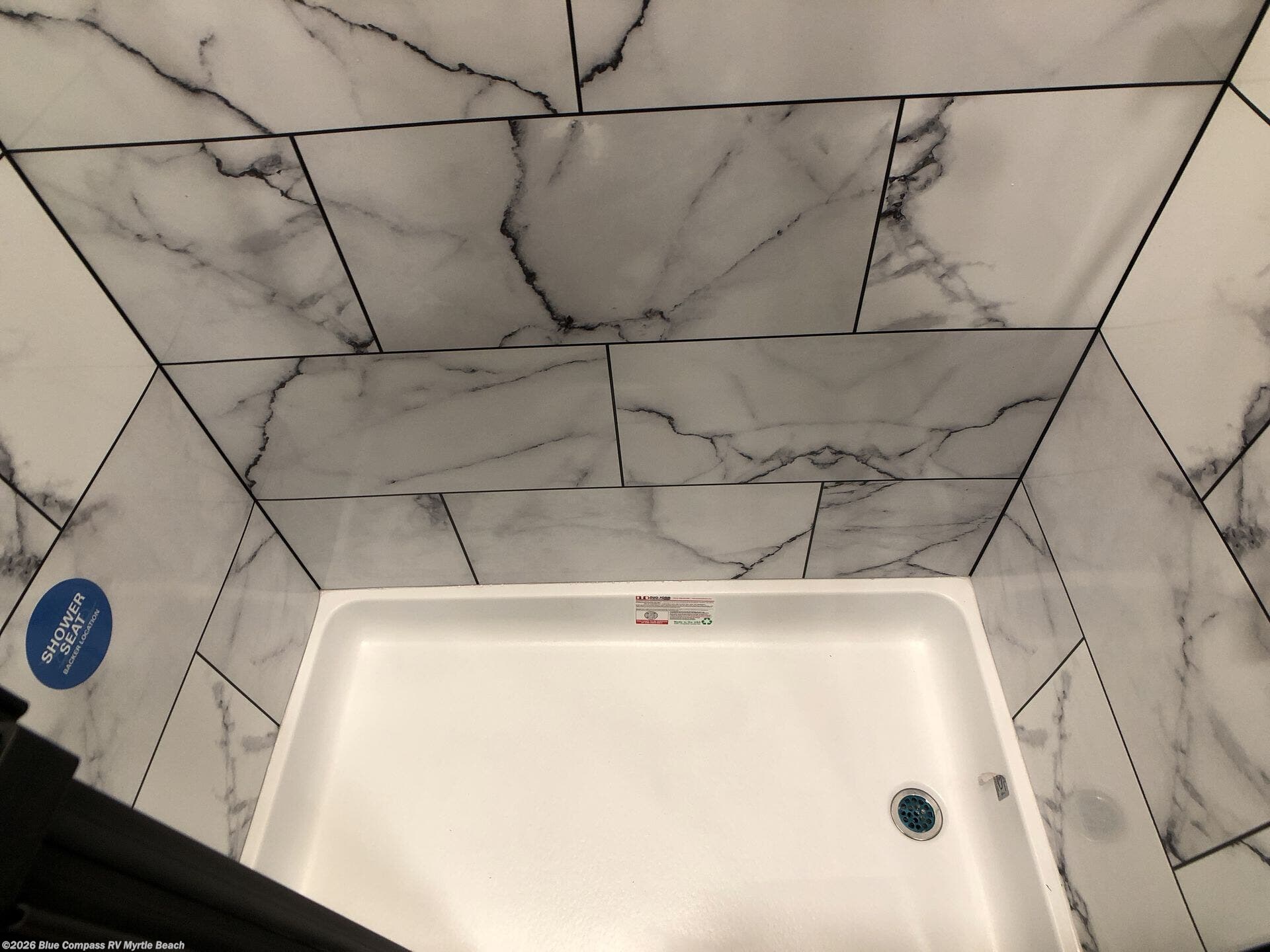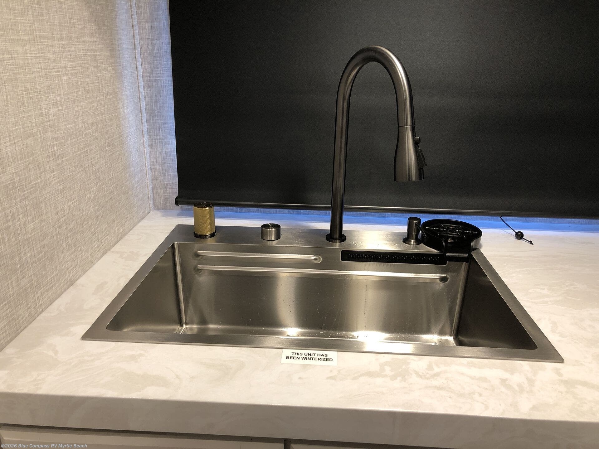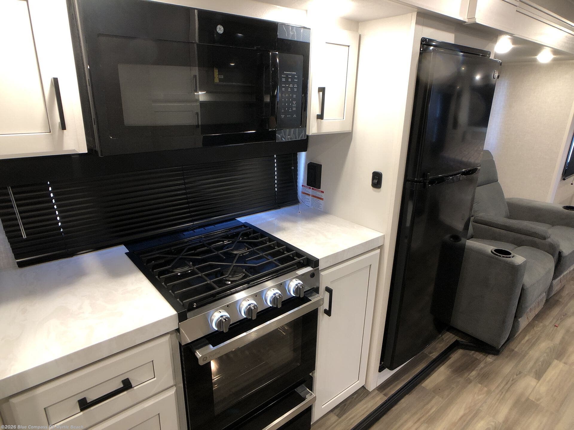 It will be so easy to enjoy camping trips when you're in this travel trailer! A full kitchen, complete with a three burner cooktop, over-the-range microwave, and 10 cu. ft. 12V refrigerator will let you cook and store meals, and the booth dinette provides a place to dine. Within the large slide, you'll find the 60" theater sofa with cup holders which is across from the 40" 4K Ultra LED HD Smart TV! You'll love having a 66" x 80" Olympic queen bed to sleep on, and there are dual wardrobes to keep your clothes organized. And larger camp gear can go outside in the pass-thru storage!