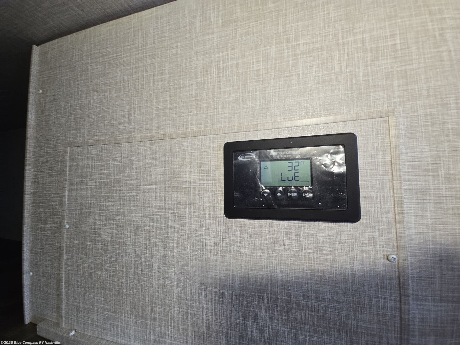 It will be so easy to enjoy camping trips when you're in this travel trailer! A full kitchen, complete with a three burner cooktop, over-the-range microwave, and 10 cu. ft. 12V refrigerator will let you cook and store meals, and the booth dinette provides a place to dine. Within the large slide, you'll find the 60" theater sofa with cup holders which is across from the 40" 4K Ultra LED HD Smart TV! You'll love having a 66" x 80" Olympic queen bed to sleep on, and there are dual wardrobes to keep your clothes organized. And larger camp gear can go outside in the pass-thru storage!