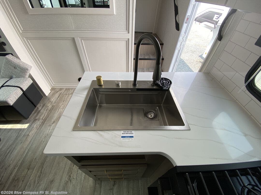 With any Eagle HT fifth wheel or travel trailer by Jayco you will enjoy a smooth drive thanks to the 4 Star Handling Package, Goodyear Endurance tires, and MORryde CRE-3000 rubberized suspension. The Customer Value Package includes amenities that are sure to make camping easier than ever, like the 60K on-demand water heater, Keyed-Alike lock system, 15,000 BTU "Whisper Quiet" A/C, and more. Handcrafted and glazed door/drawer fronts will make your space feel more like home, along with residential vinyl flooring throughout, GE appliances, and blackout roller shades with reflective side throughout to keep the sun out when you want to sleep in. Each model also includes a NuVo H2O water treatment system with filters included, interior and exterior "Blue Sync" audio connect with MB Quart Sound for your TV and phone, and 100% no floor vents for added comfort and convenience!