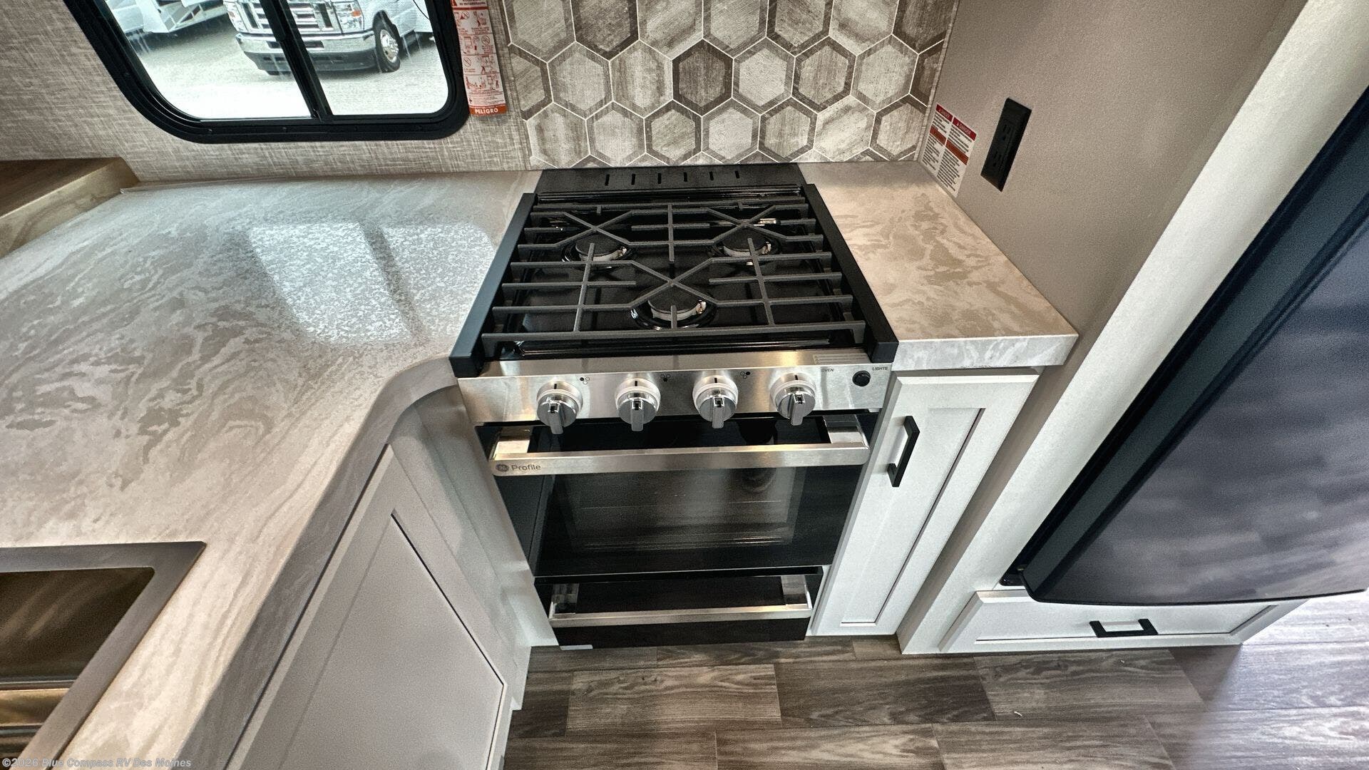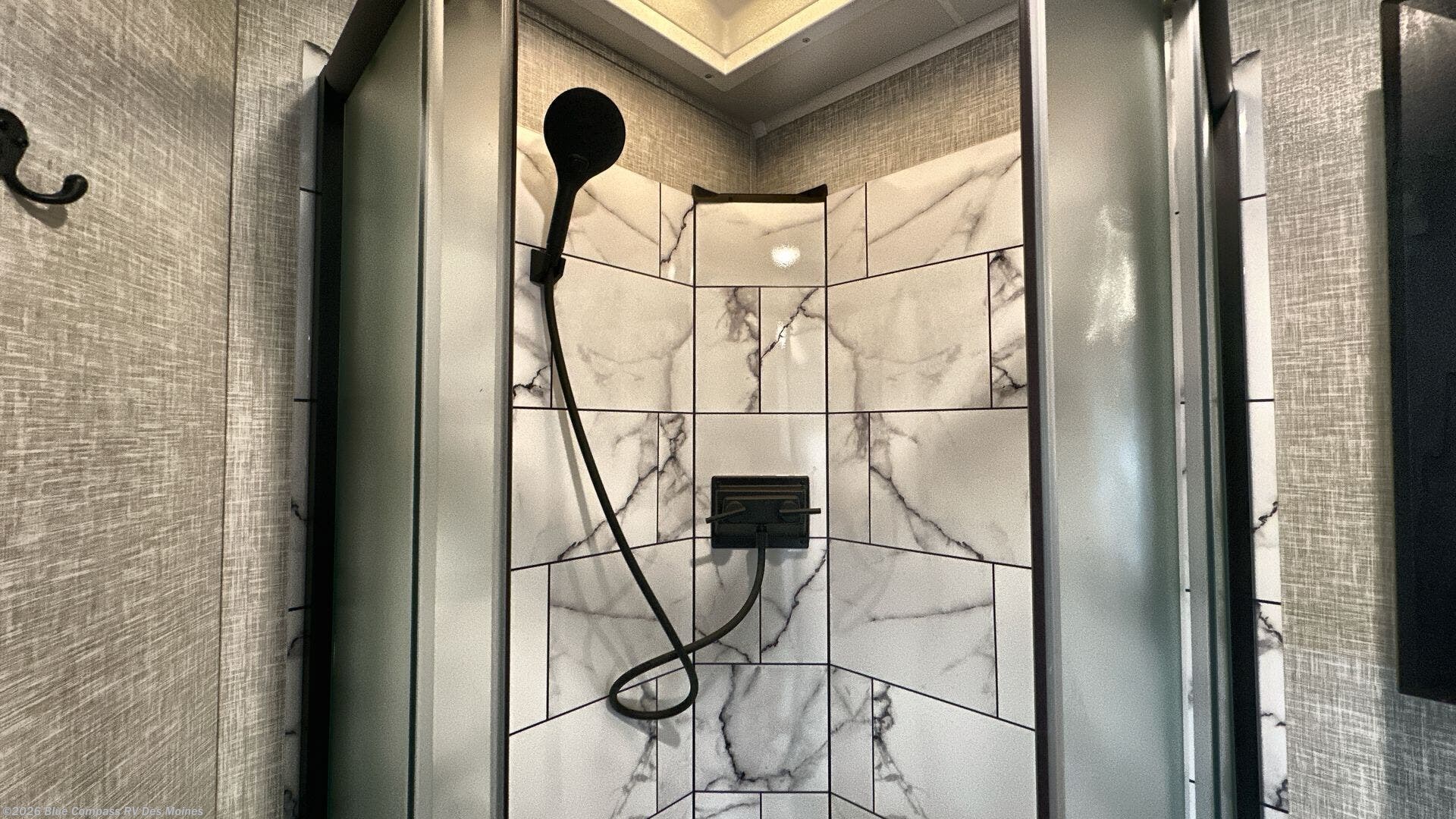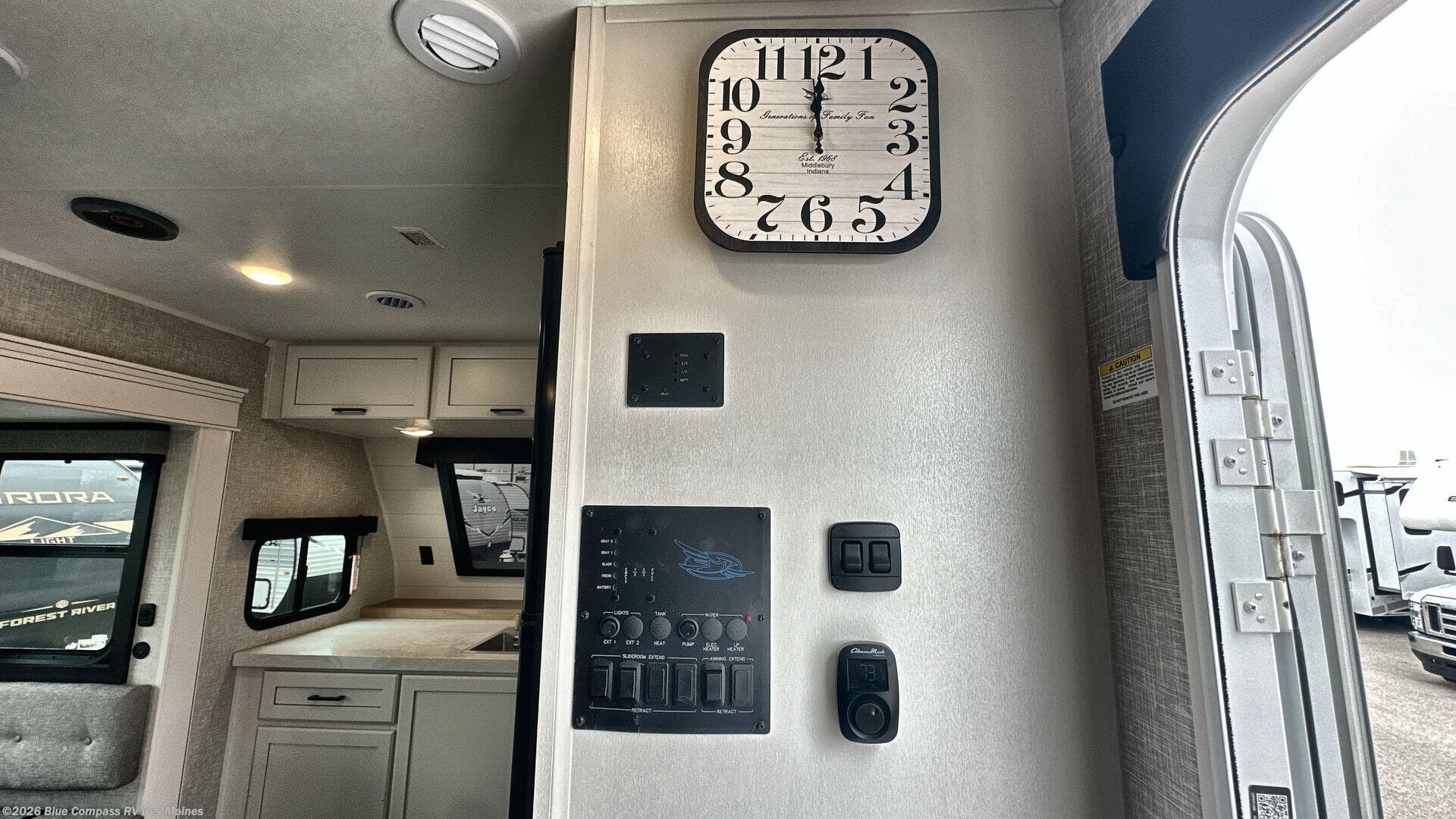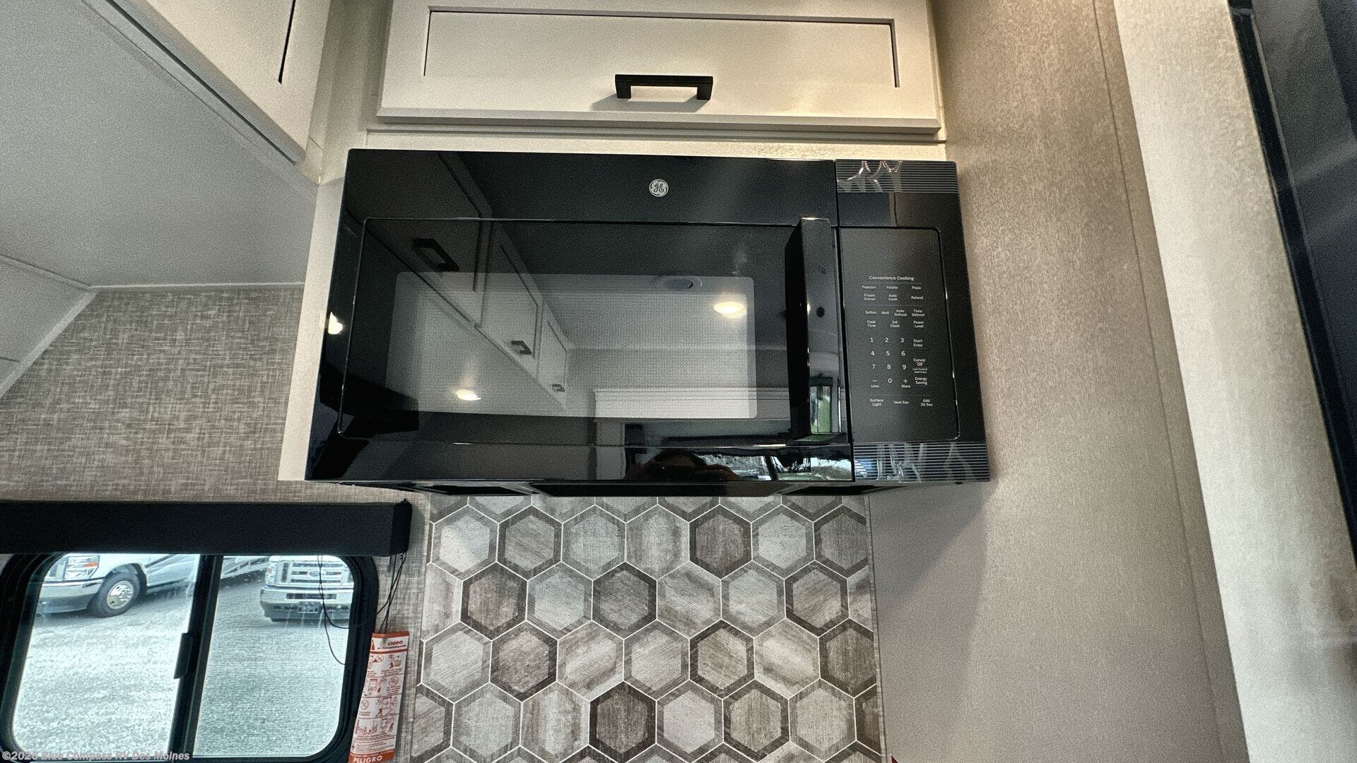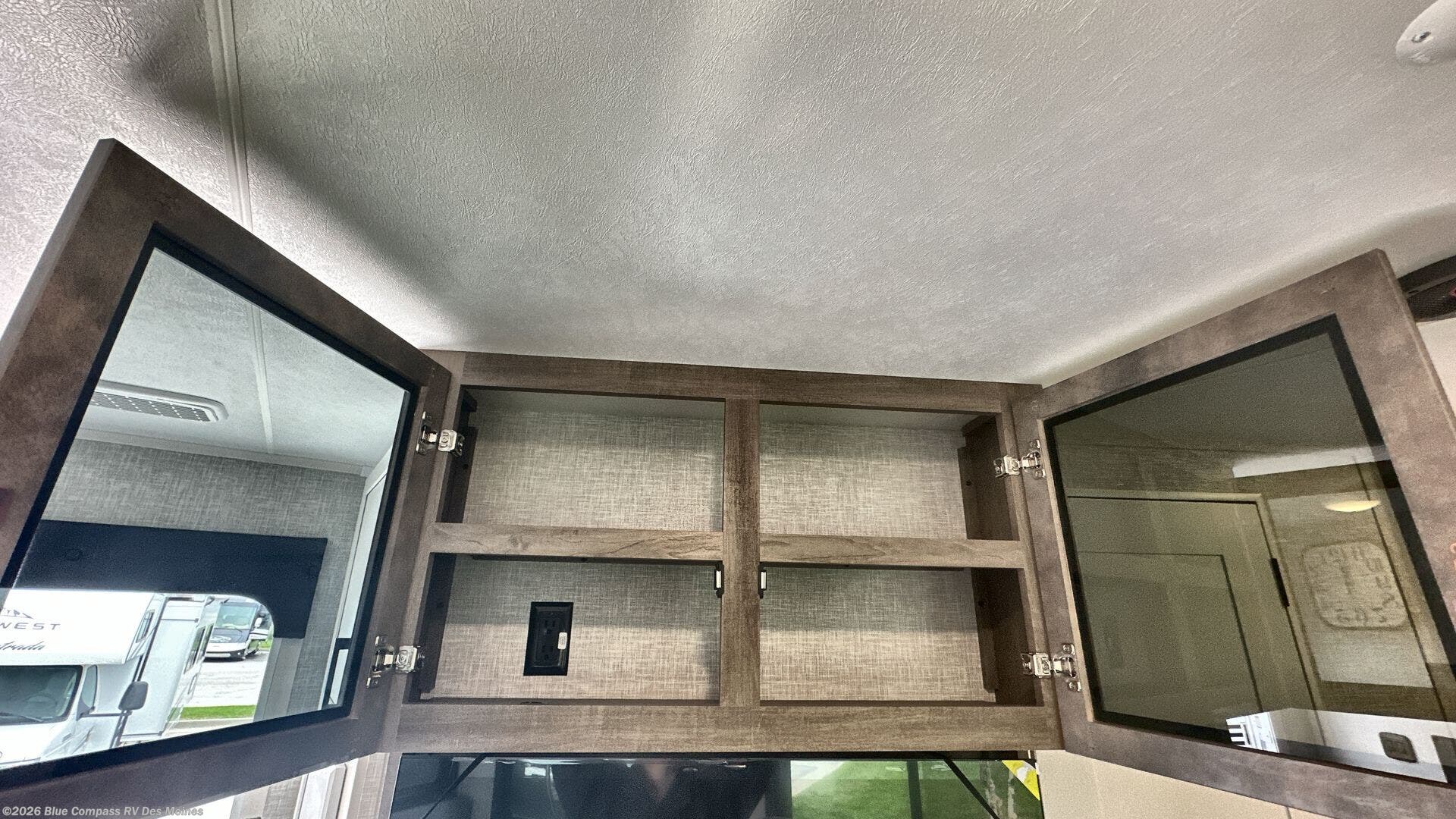 Escape the busyness of life for tranquil trips to the campground with this trailer. You will love the front kitchen with generous counter space, GE appliances, and a pantry by the entryway that can be used for food and more. If you're all hiked out, stay inside to relax on the theater seat across from the fireplace and entertainment center. There is also a free-standing table to dine at or play a game of cards. The dual entry bath will create a rear master suite, complete with a 66" x 80" Olympic queen bed across from a dresser, a private exit door, plus a full-width wardrobe with washer and dryer prep!