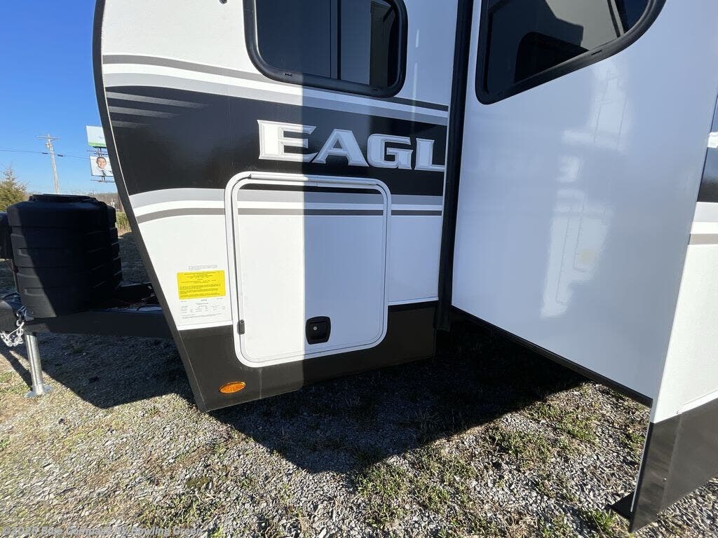 With any Eagle HT fifth wheel or travel trailer by Jayco you will enjoy a smooth drive thanks to the 4 Star Handling Package, Goodyear Endurance tires, and MORryde CRE-3000 rubberized suspension. The Customer Value Package includes amenities that are sure to make camping easier than ever, like the 60K on-demand water heater, Keyed-Alike lock system, 15,000 BTU "Whisper Quiet" A/C, and more. Handcrafted and glazed door/drawer fronts will make your space feel more like home, along with residential vinyl flooring throughout, GE appliances, and blackout roller shades with reflective side throughout to keep the sun out when you want to sleep in. Each model also includes a NuVo H2O water treatment system with filters included, interior and exterior "Blue Sync" audio connect with MB Quart Sound for your TV and phone, and 100% no floor vents for added comfort and convenience!