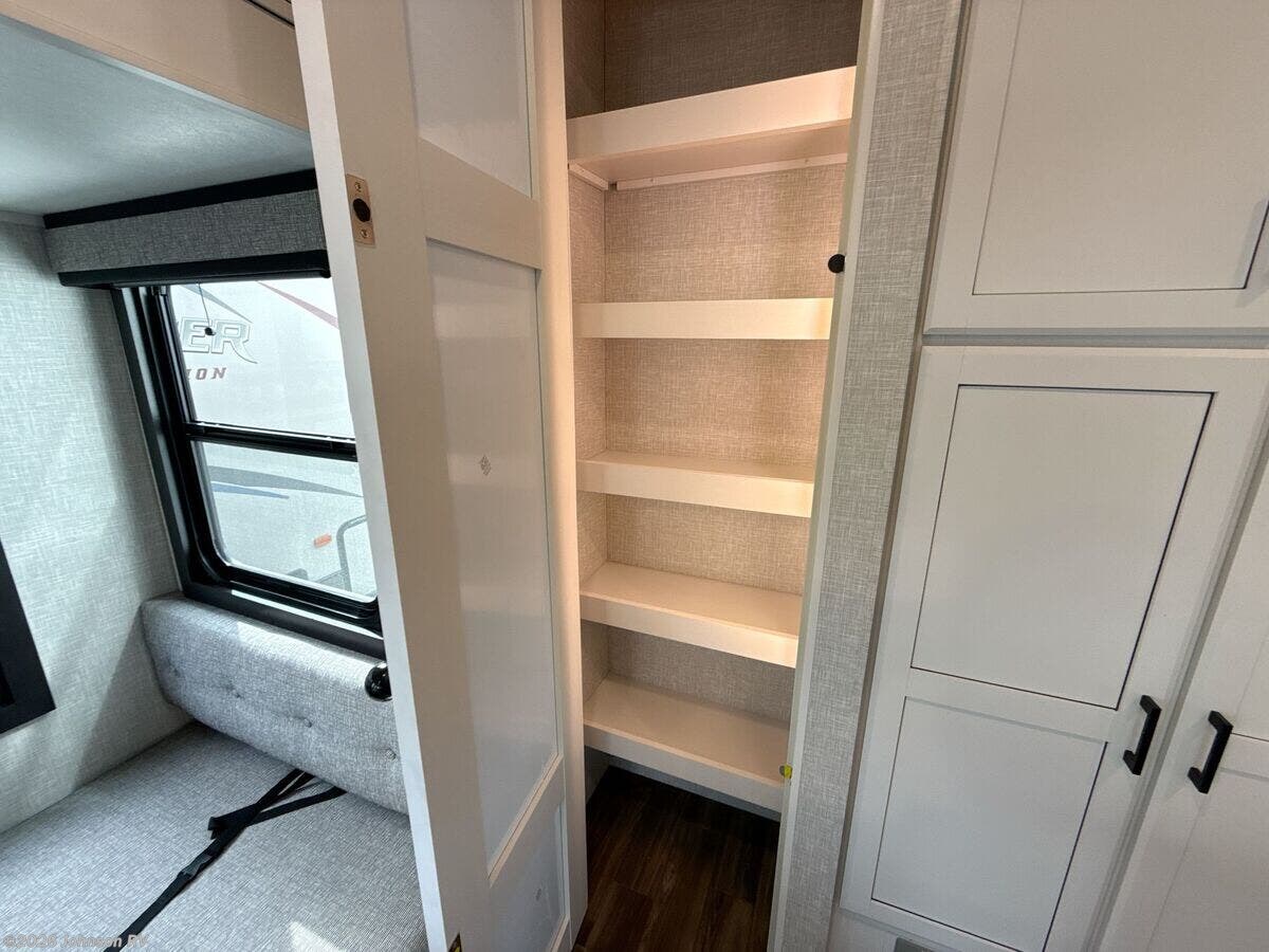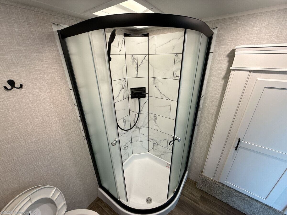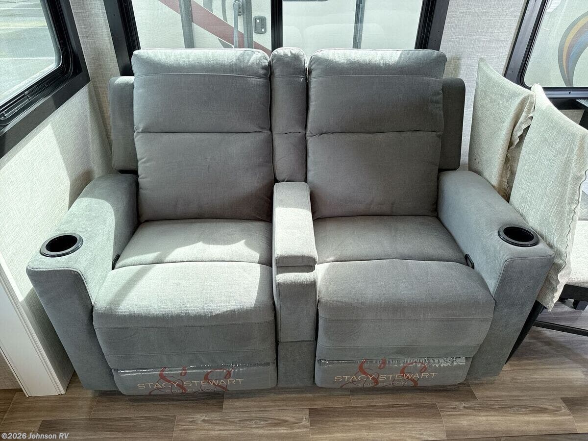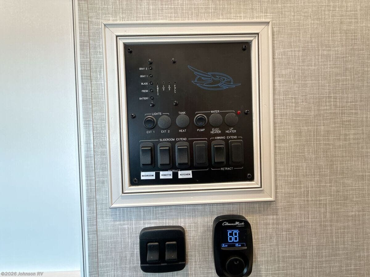 Features Include: Customer Value, Luxury, Entertainment Center, Overhead Cabinets, Dinette Booth (vbm), Pantry, 110v Outlets, GE Appliances, Systems Center, Backup Camera Prep, 12vUSB Ports, 5G Router Prep, Reading Lights, Nightstands, Wardrobes, Bedroom TV Prep, CPAP Prep, Roof Vent Bathroom, Vanity Sink, Linen Storage, Skylight, Teak Seat Prep (vbm), Glass Shower Door, Two 30# LP Bottles, LP Auto Regulator, Inverter Prewire, High Output Furnace, HELIX Cooling System, 15k AC Whisper Quiet, Bedroom AC Prep, PEX Plumbing, 60k Demand Hot Water, Black Tank Flush, Wet Bolt Fasteners, Bronze Bushings, Nev-R-Adjust Brakes, Aluminum Framed, Roof Access Ladder