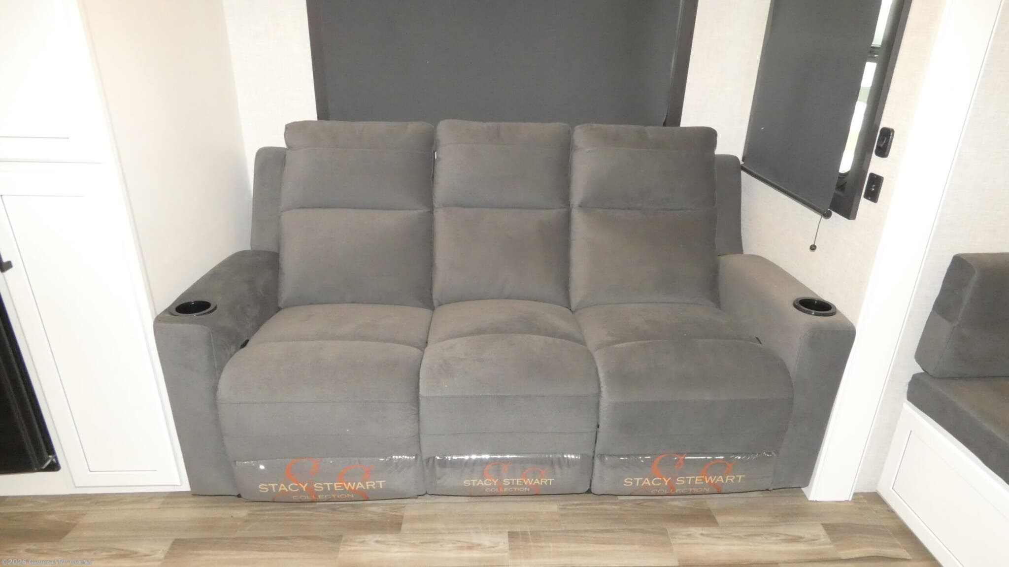 Jayco Eagle HT fifth wheel 27MLC highlights: Rear Kitchen Spacious Full Bath Olympic Queen Bed Outside Kitchen This fifth wheels is perfect for extended stays at the campground or weekend trips to the lake! Once you arrive at your destination, you can set up the 18' electric awning, then make lunch on the outside kitchen. The main living area will be a favorite place to join together since there is a theater seat across from the TV and an L-shaped dinette. With any Eagle HT fifth wheel or travel trailer by Jayco you will enjoy a smooth drive thanks to the 4 Star Handling Package and MORryde CRE-3000 rubberized suspension. The Customer Value Package includes amenities that are sure to make camping easier than ever, like the 60K on-demand water heater, Keyed-Alike lock system, 15,000 BTU "Whisper Quiet" A/C, and more. Handcrafted and glazed door/drawer fronts will make your space feel more like home, along with residential vinyl flooring throughout, GE appliances, and blackout roller shades with reflective side throughout to keep the sun out when you want to sleep in. Each model also includes a NuVo H2O water treatment system with filters included, interior and exterior "Blue Sync" audio connect with MB Quart Sound for your TV and phone, and 100% no floor vents for added comfort and convenience!