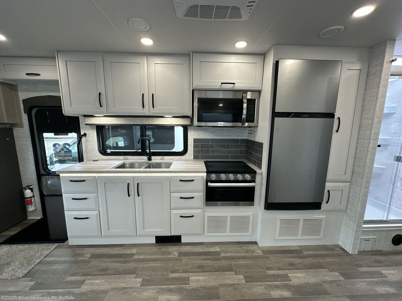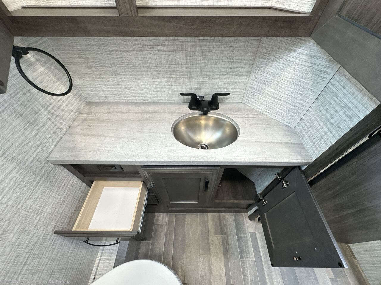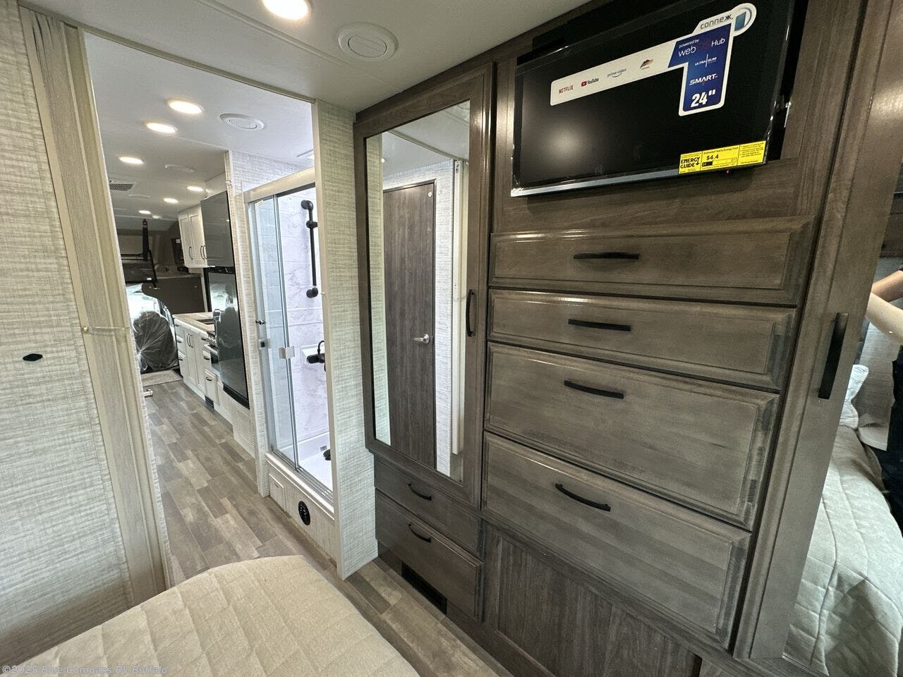With any Greyhawk Class C gas motorhome by Jayco you will experience smooth sailing thanks to the JRIDE PLUS that comes with Koni shock absorbers, a computer-balanced driveshaft, Hellwig helper springs, and more. The Ford E-450 chassis with a 7.3L V8 325 HP engine will power your excursions, and you'll appreciate the added safety features for your peace of mind. Each model features a Sony infotainment center with Apple CarPlay and Android Auto, backup and side-view cameras, and a tire pressure monitor system the driver is sure to appreciate. Durable construction begins with Stronghold VBL roof, floor and sidewalls, bead-foam insulation, and a one-piece seamless fiberglass front cap. Head inside to find blackout night roller shades, LED-lit pressed countertops, an 84" interior ceiling height, and hardwood cabinet doors and drawers.