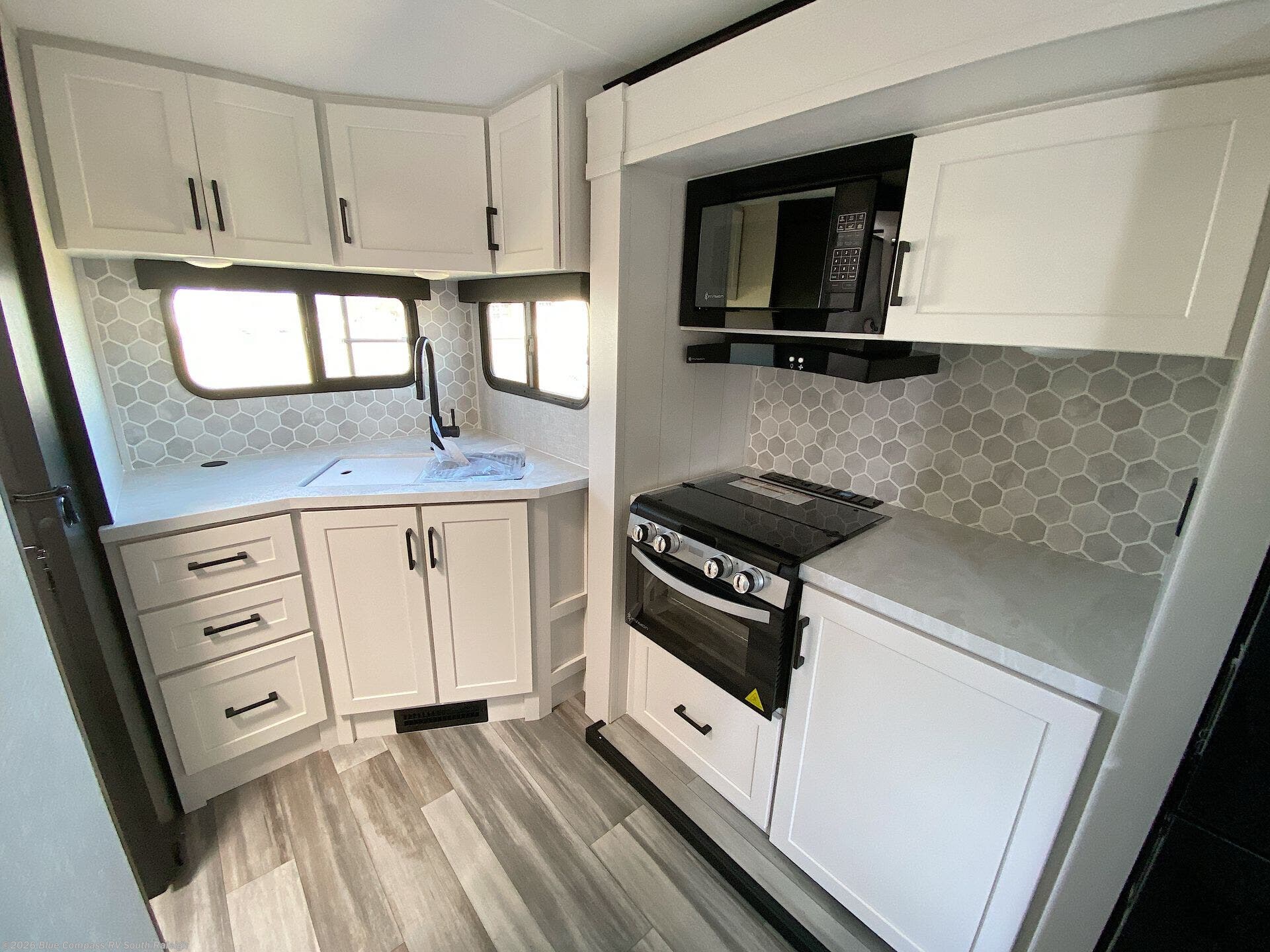 With any Jay Feather travel trailer by Jayco, you will enjoy lightweight towing, convenient exterior amenities, and at-home comforts inside! The Overlander 1 Solar Package included within the Jay Sport Package comes with a 200W solar panel and a 30-amp digital controller so you can enjoy some off-grid camping. There is also a modern graphics package with a dual-colored sidewall, LCI Solid Step fold-down aluminum tread steps on the main entry door, and Climate Shield 0 -100° F tested weather insulation package that will allow you to camp in all sorts of climates. The Customer Value Package will make time outdoors easier than ever with a power tongue jack and a Rock Solid stabilizer system, plus American-made nitro-filled Goodyear tires with self-adjusting electric brakes. More exterior features include a Keyed-Alike locking system, marine grade exterior speakers, a Magnum Truss roof system, and the list goes on! And we haven't even touched on the interior comforts, like the residential style seamless countertops and vinyl flooring throughout, decorative backsplash, handcrafted hardwood door/drawer fronts, and multiple USB charging ports to keep you going!