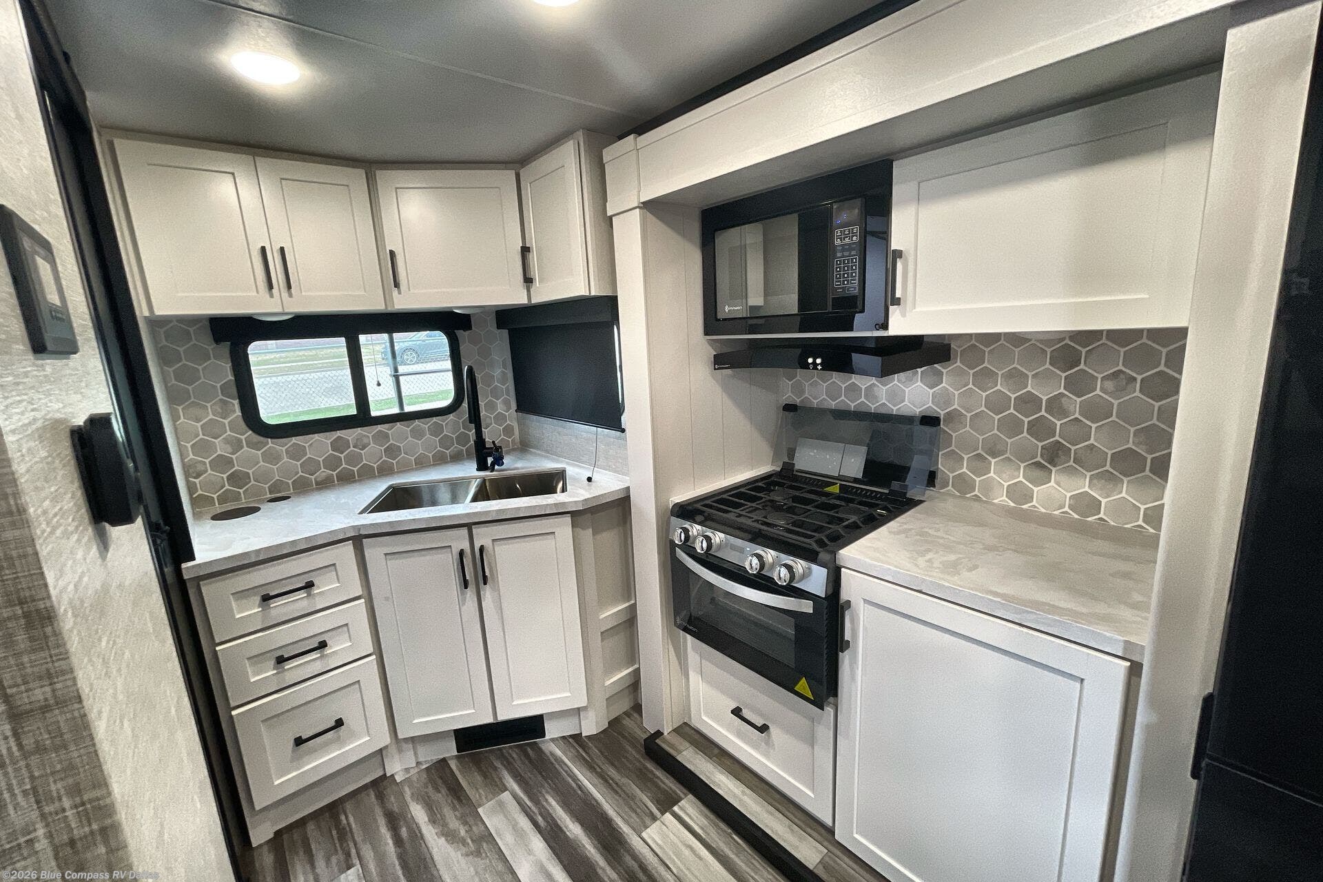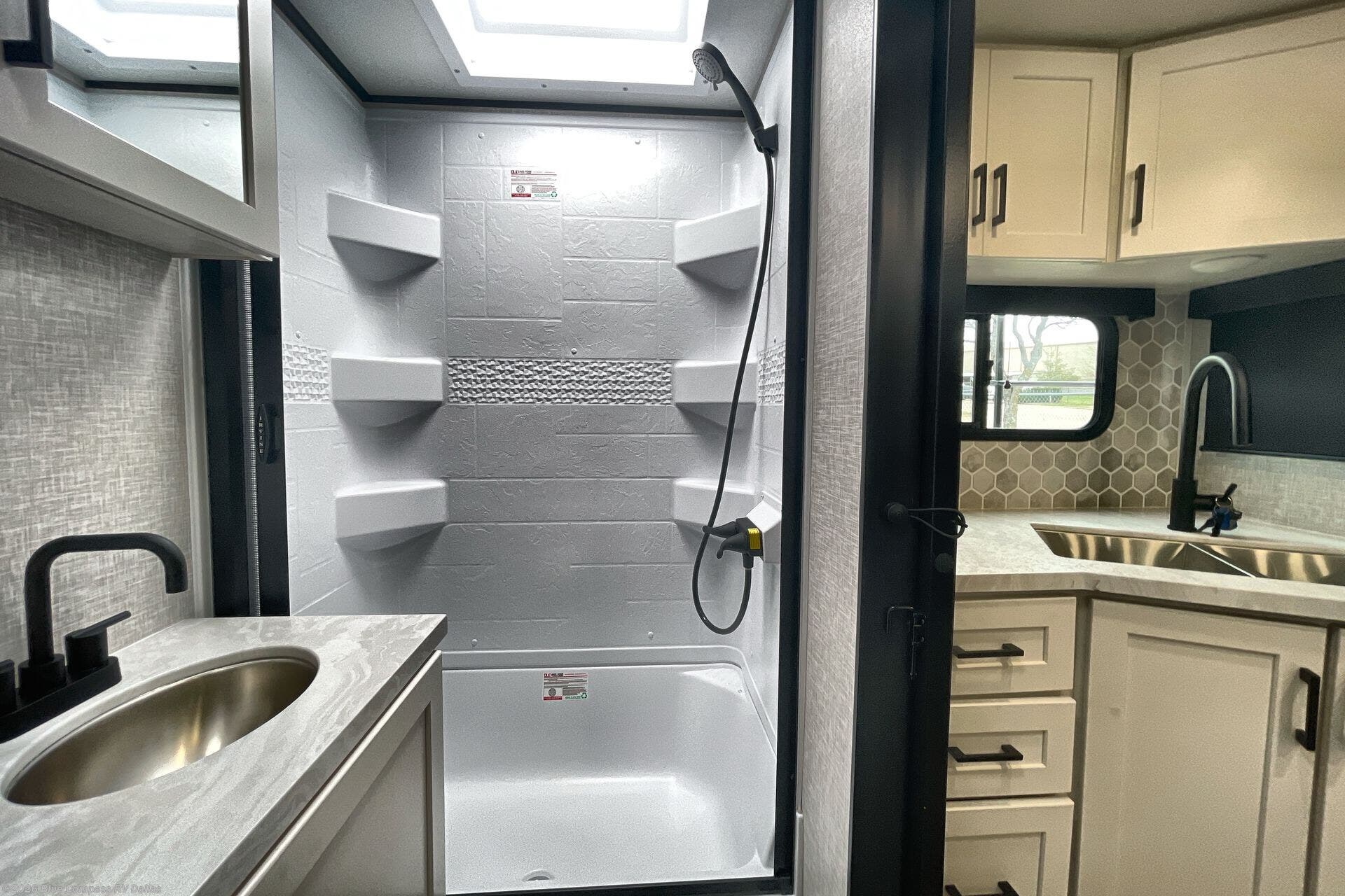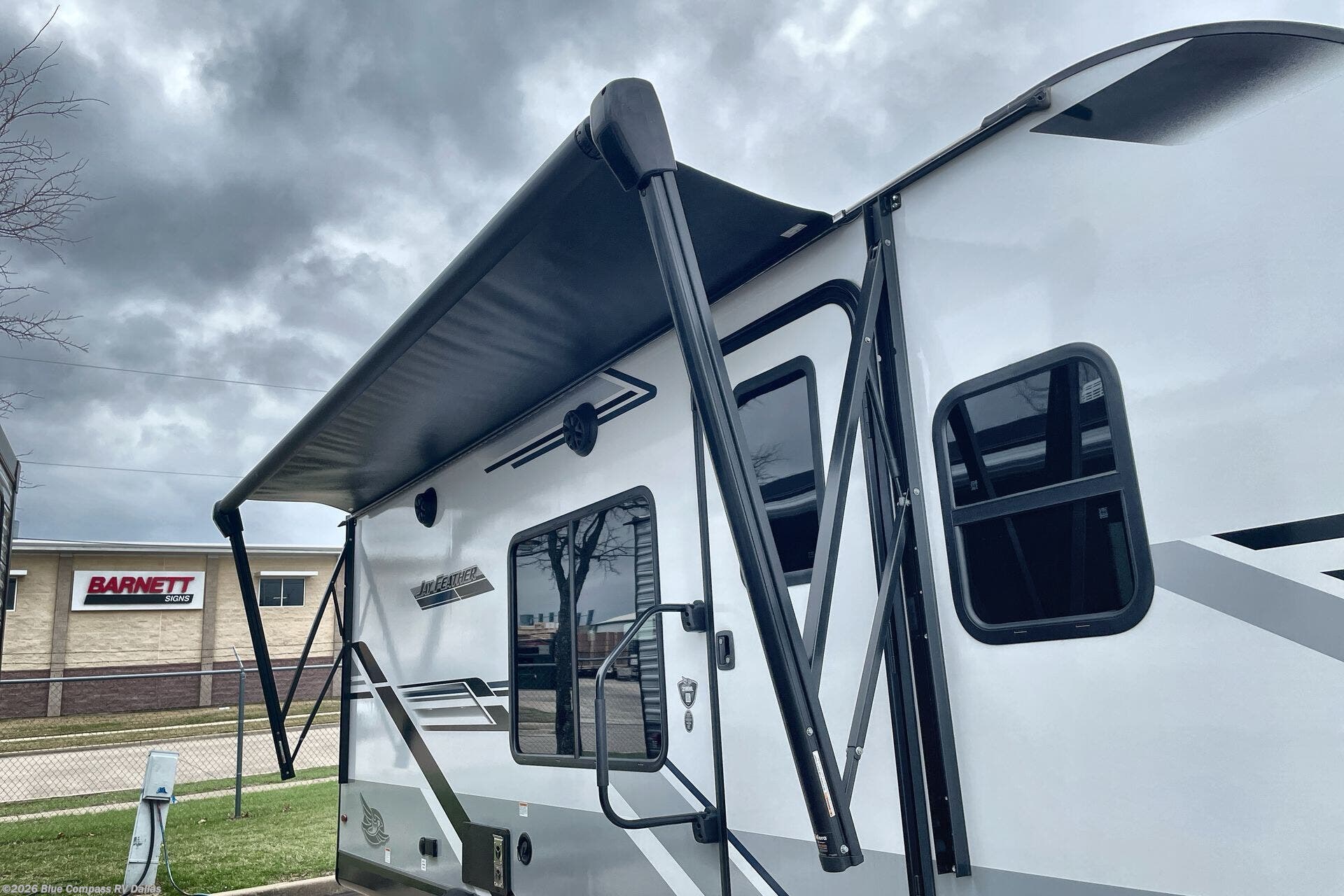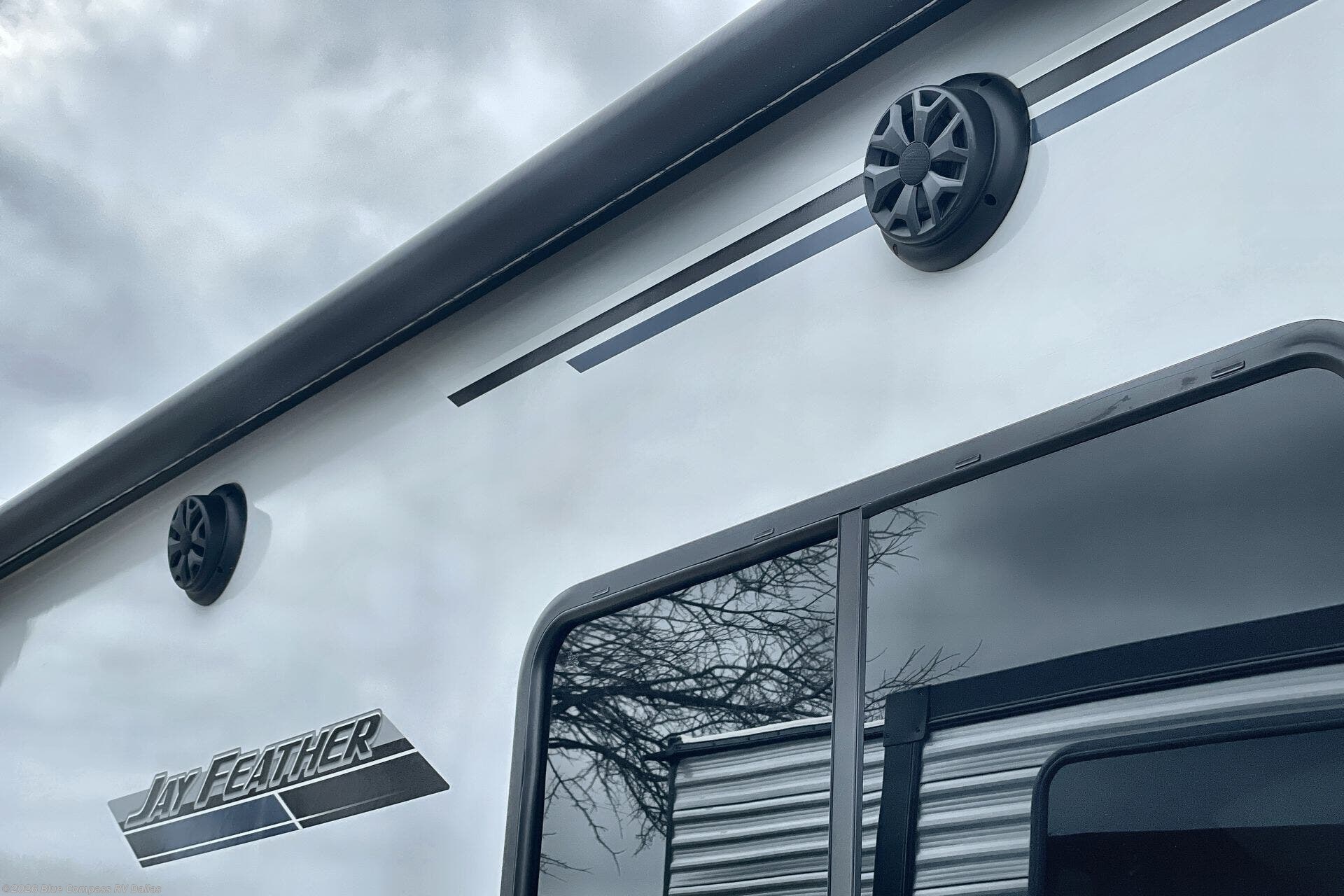 With any Jay Feather travel trailer by Jayco, you will enjoy lightweight towing, convenient exterior amenities, and at-home comforts inside! The Overlander 1 Solar Package included within the Jay Sport Package comes with a 200W solar panel and a 30-amp digital controller so you can enjoy some off-grid camping. There is also a modern graphics package with a dual-colored sidewall, LCI Solid Step fold-down aluminum tread steps on the main entry door, and Climate Shield 0 -100° F tested weather insulation package that will allow you to camp in all sorts of climates. The Customer Value Package will make time outdoors easier than ever with a power tongue jack and a Rock Solid stabilizer system. More exterior features include a Keyed-Alike locking system, marine grade exterior speakers, a Magnum Truss roof system, and the list goes on! And we haven't even touched on the interior comforts, like the residential style seamless countertops and vinyl flooring throughout, decorative backsplash, handcrafted hardwood door/drawer fronts, and multiple USB charging ports to keep you going!