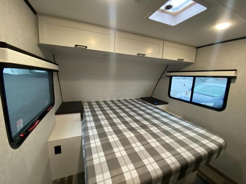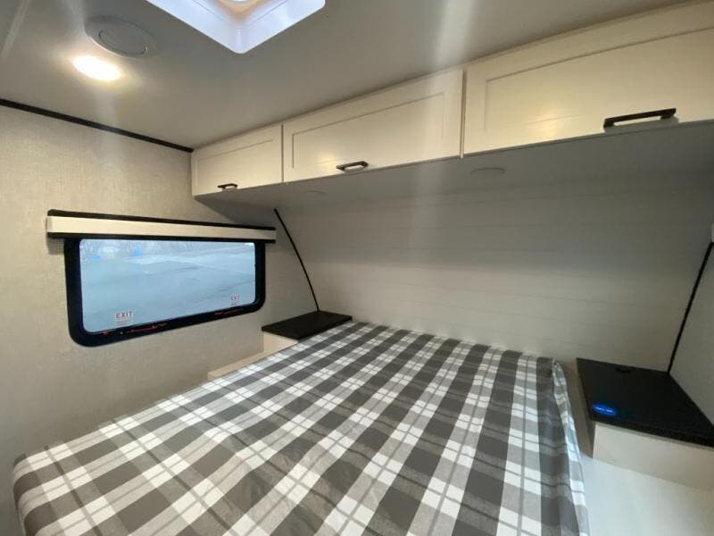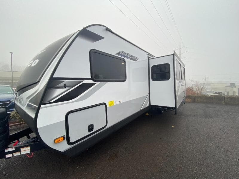 With any Jay Feather travel trailer by Jayco, you will enjoy lightweight towing, convenient exterior amenities, and at-home comforts inside! The Overlander 1 Solar Package included within the Jay Sport Package comes with a 200W solar panel and a 30-amp digital controller so you can enjoy some off-grid camping. There is also a modern graphics package with a dual-colored sidewall, LCI Solid Step fold-down aluminum tread steps on the main entry door, and Climate Shield 0 -100° F tested weather insulation package that will allow you to camp in all sorts of climates. The Customer Value Package will make time outdoors easier than ever with a power tongue jack and a Rock Solid stabilizer system. More exterior features include a Keyed-Alike locking system, marine grade exterior speakers, a Magnum Truss roof system, and the list goes on! And we haven't even touched on the interior comforts, like the residential style seamless countertops and vinyl flooring throughout, decorative backsplash, handcrafted hardwood door/drawer fronts, and multiple USB charging ports to keep you going!