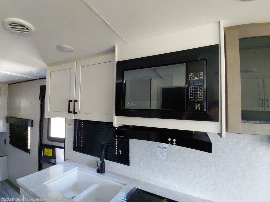 Camping in the woods is just what the doctor ordered and this trailer will provide all the interior comforts you need! There is a three burner cooktop and a microwave oven to prepare meals each day, plus an 8 cu. ft. 12V refrigerator for cold items. After your meal is made, you can dine at the booth dinette or relax on the jack-knife sofa, and these areas can become sleeping space for two to three guests at night. The full bath with a shower means you won't have to use the camp's facilities and the 16' power awning will provide protection from the sun as you visit with other campers!