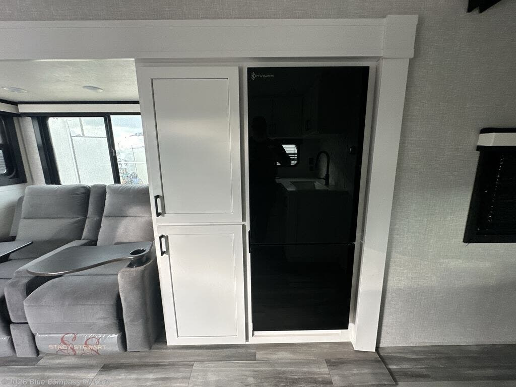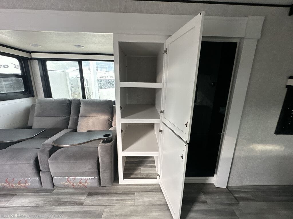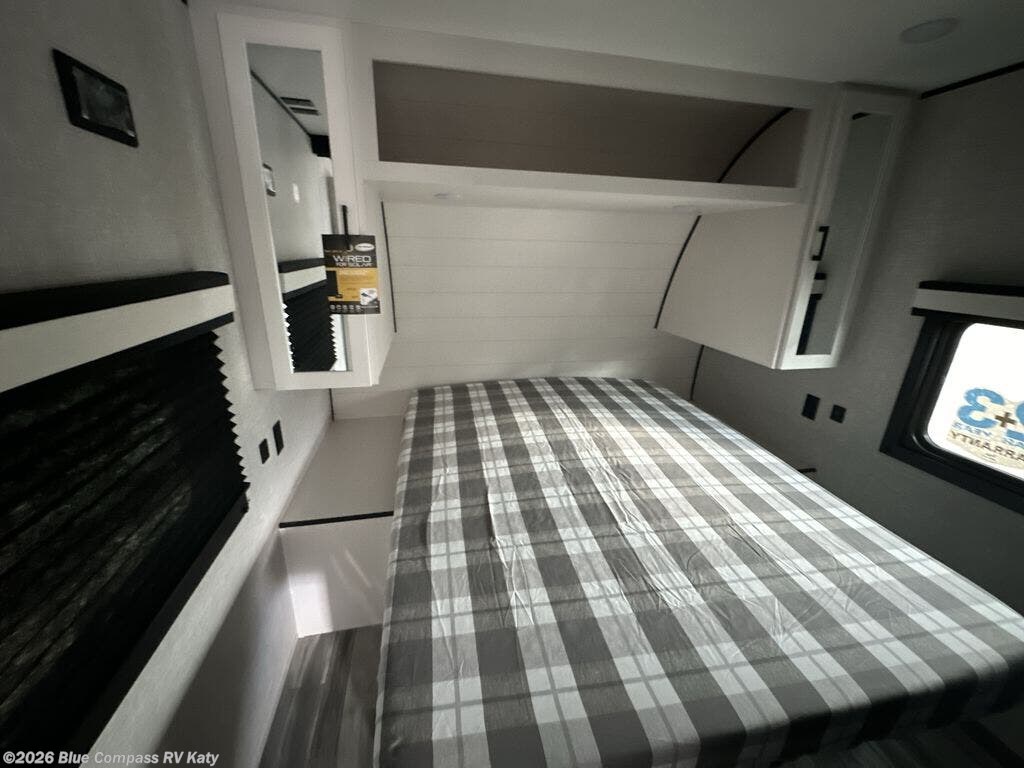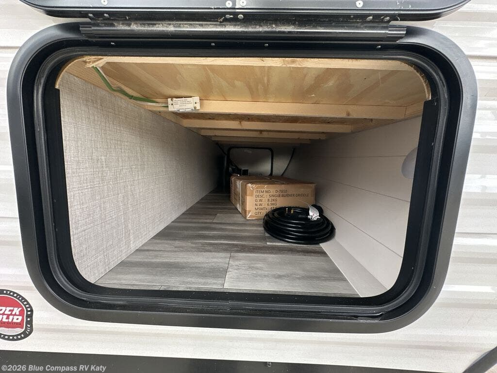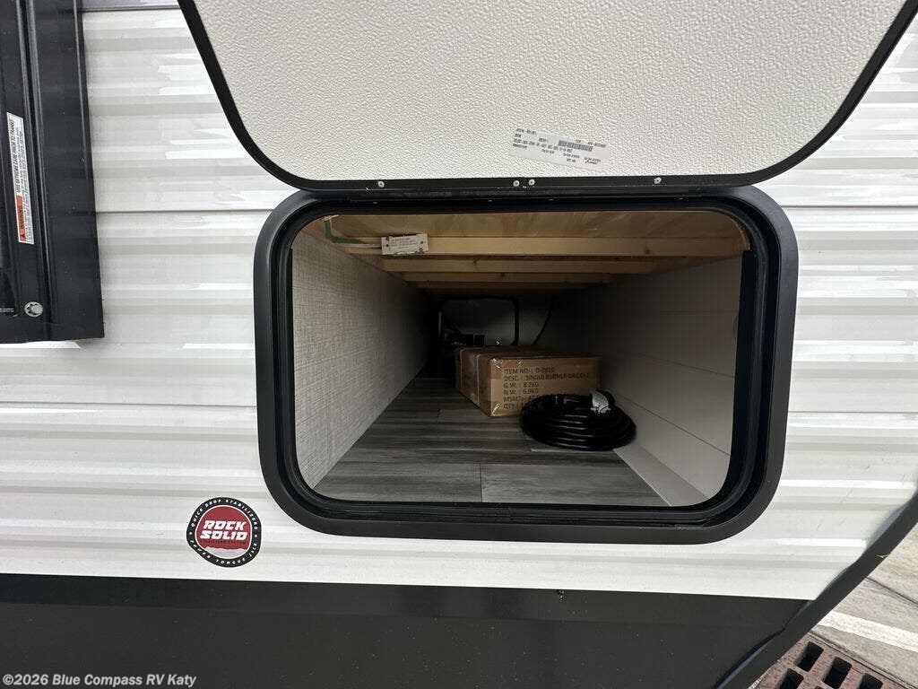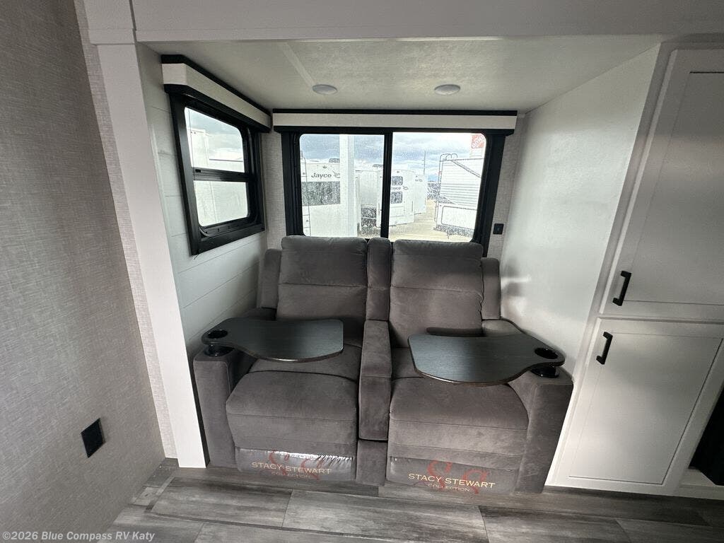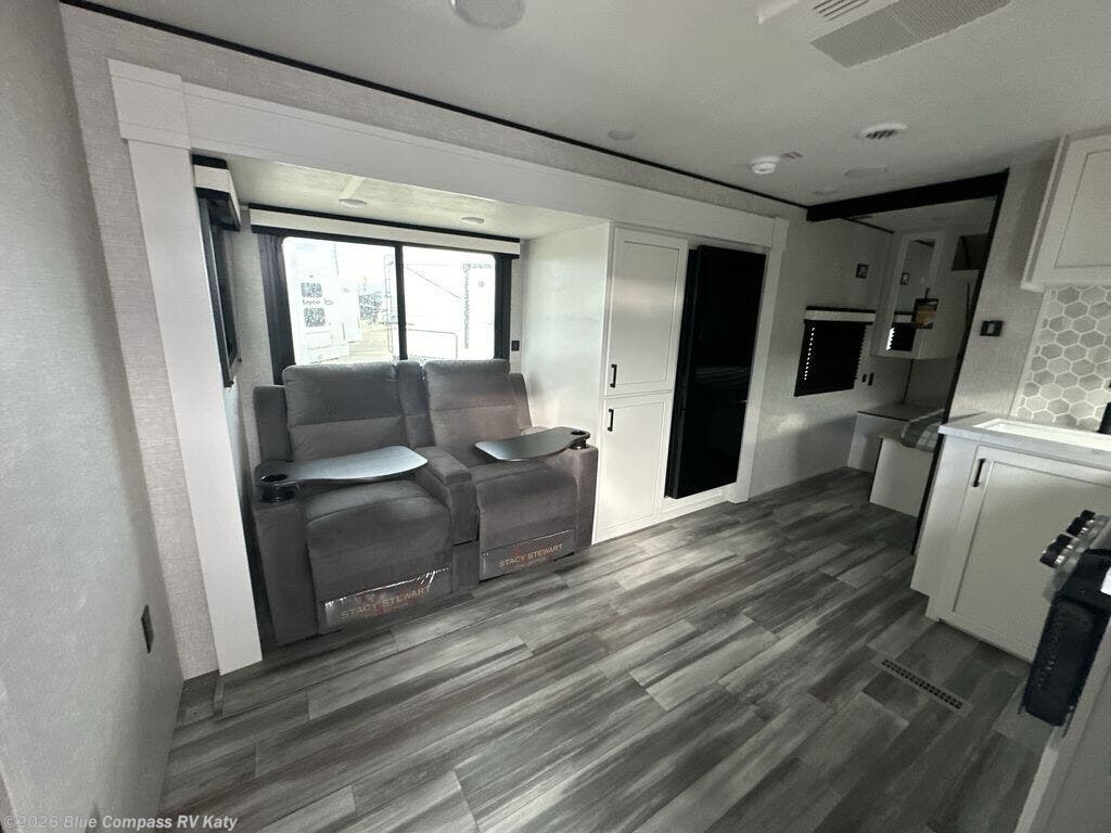You will feel right at home in this travel trailer! It features a front private bedroom with a 60" x 75" queen bed that has wardrobes on either side and a shelf above to set your books. The kitchen has everything you will need to prepare a delicious home cooked meal including a large pantry to store your favorite snacks. The theater seats are directly across from the entertainment center and can also be switched out for an optional tri-fold sofa and you can choose to add an optional LED Smart TV as well. The full rear bathroom has an abundance of room for you to walk around as you get ready each morning. You can grab a jacket on those crisp mornings and head to the outdoor griddle with LP Quick Connect to make pancakes!