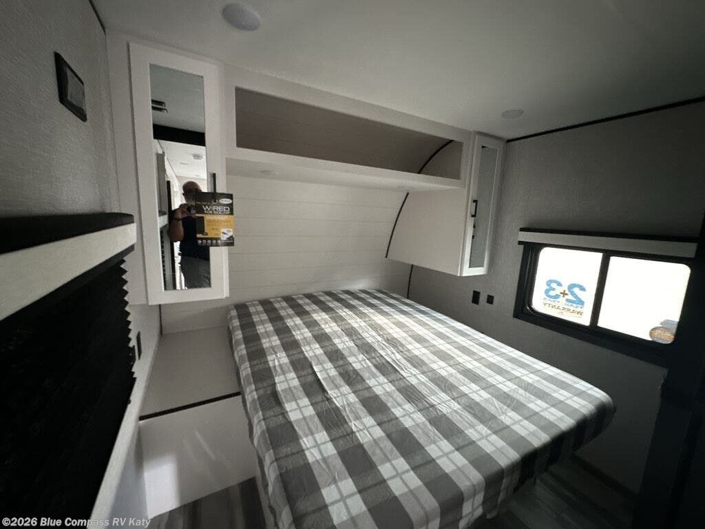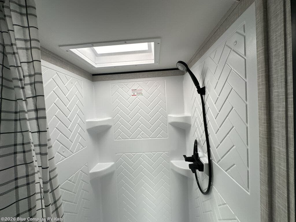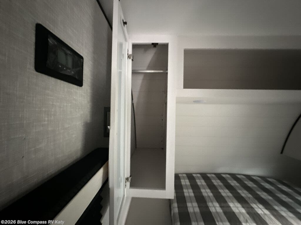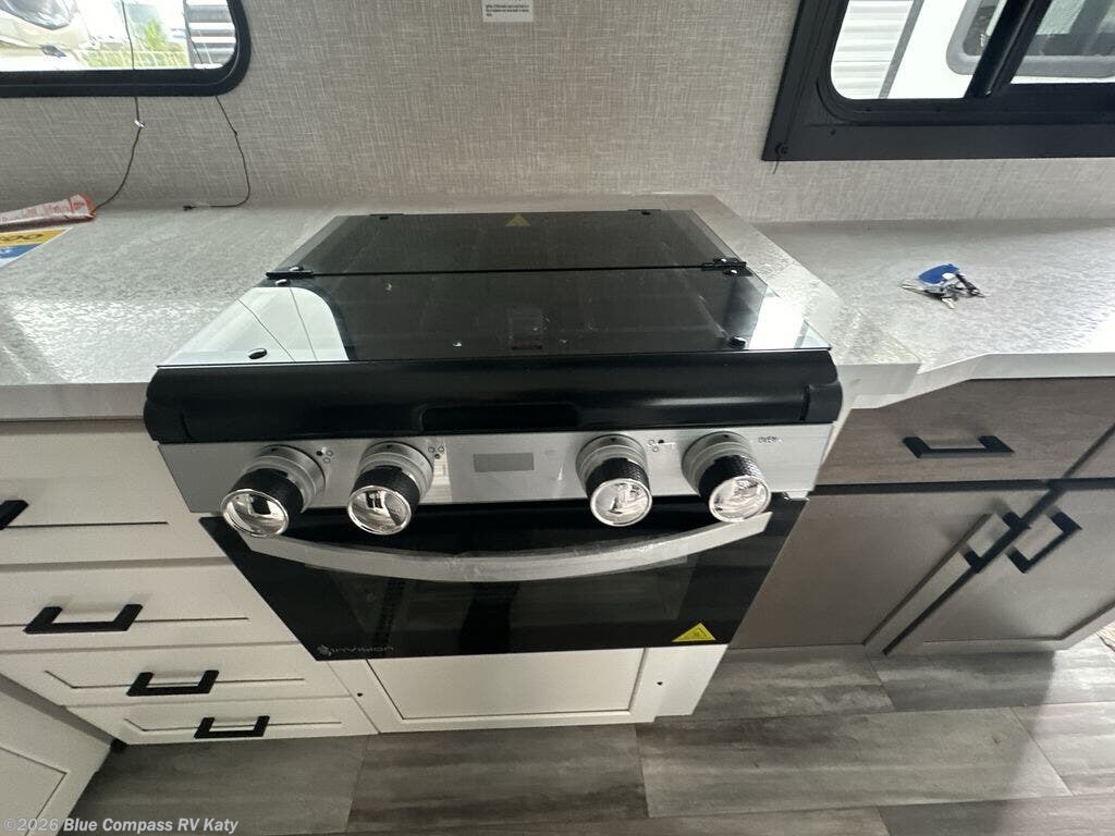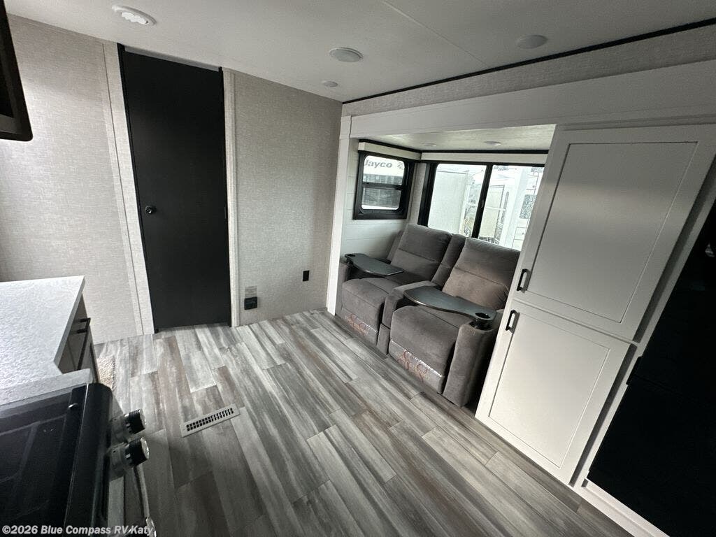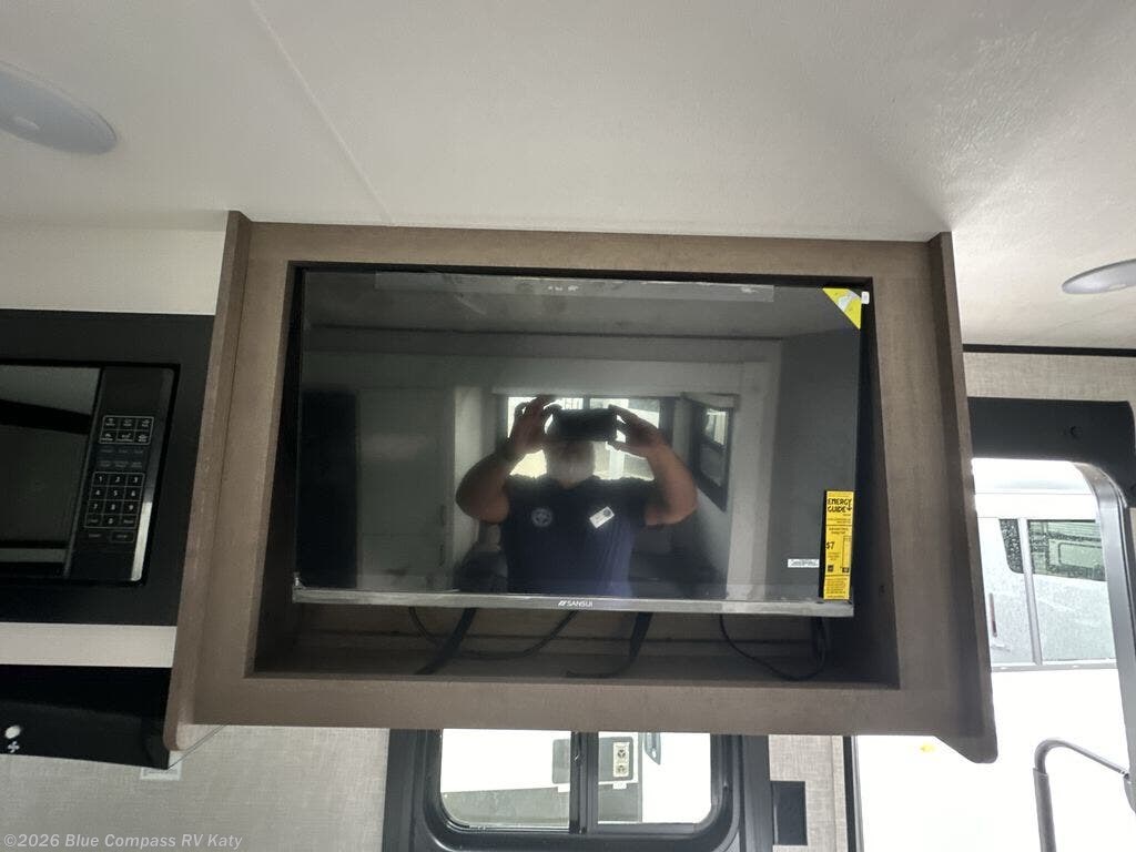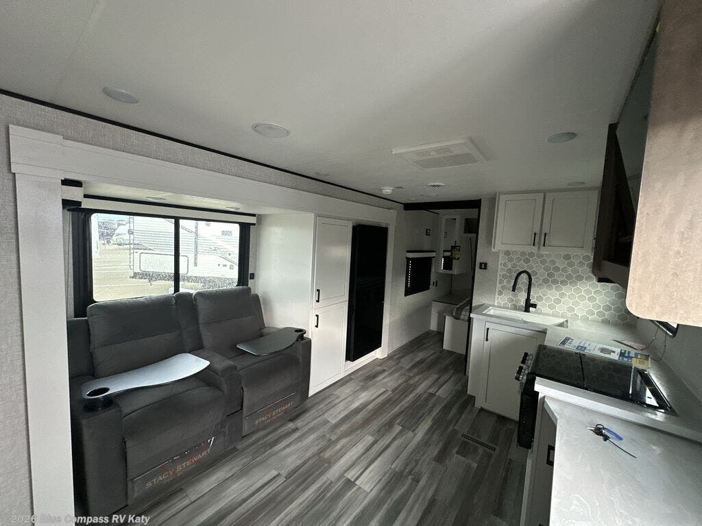 You will feel right at home in this travel trailer! It features a front private bedroom with a 60" x 75" queen bed that has wardrobes on either side and a shelf above to set your books. The kitchen has everything you will need to prepare a delicious home cooked meal including a large pantry to store your favorite snacks. The theater seats are directly across from the entertainment center and can also be switched out for an optional tri-fold sofa and you can choose to add an optional LED Smart TV as well. The full rear bathroom has an abundance of room for you to walk around as you get ready each morning. You can grab a jacket on those crisp mornings and head to the outdoor griddle with LP Quick Connect to make pancakes!