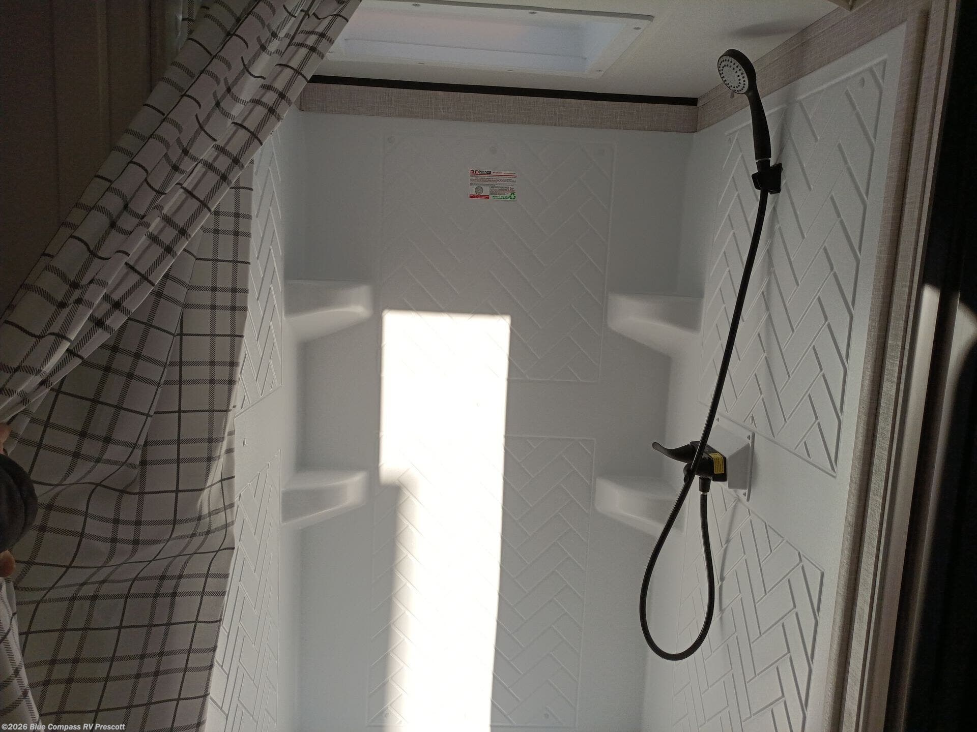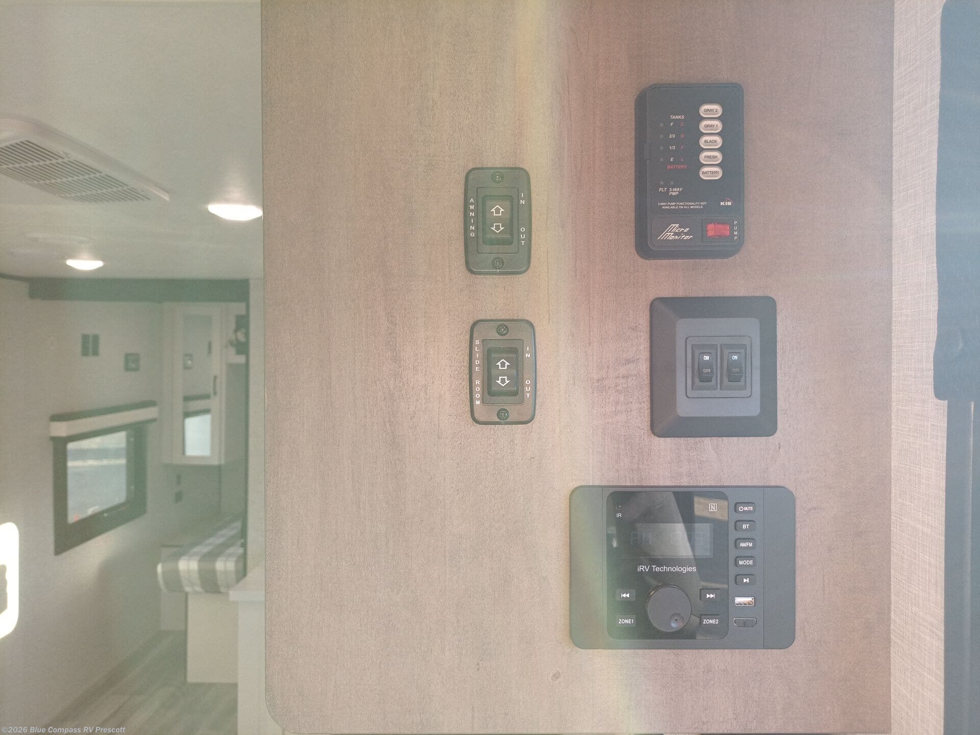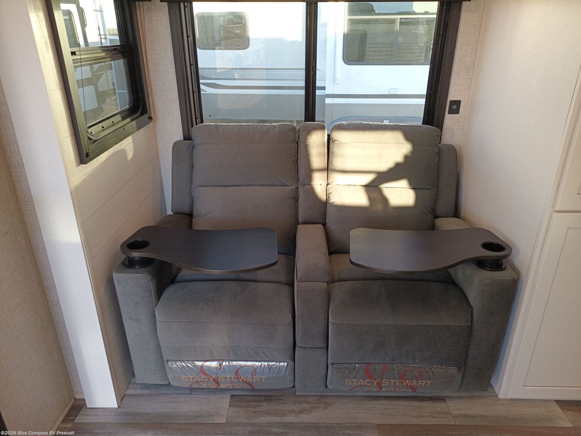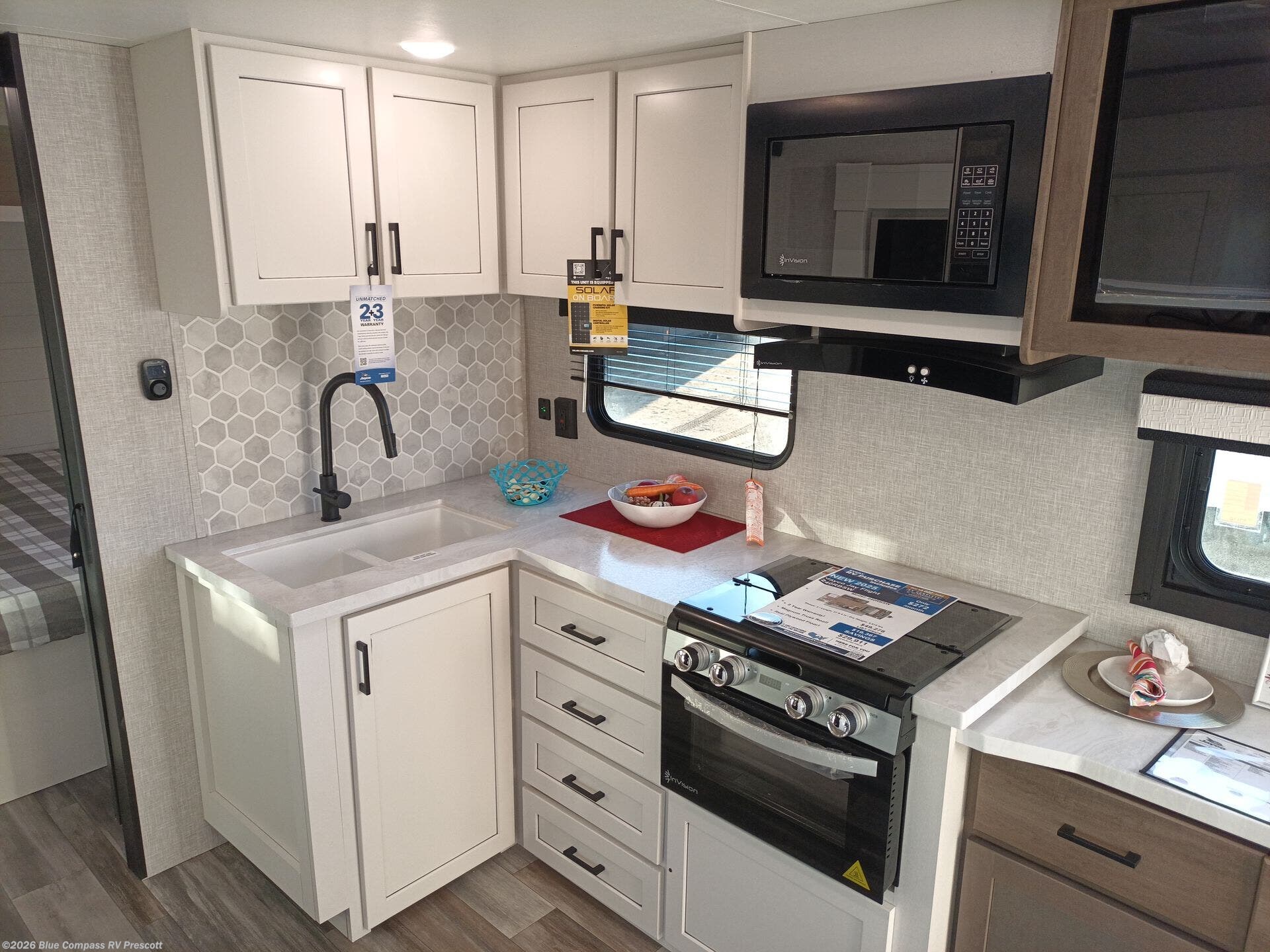 You will feel right at home in this travel trailer! It features a front private bedroom with a 60" x 75" queen bed that has wardrobes on either side and a shelf above to set your books. The kitchen has everything you will need to prepare a delicious home cooked meal including a large pantry to store your favorite snacks. The theater seats are directly across from the entertainment center and can also be switched out for an optional tri-fold sofa and you can choose to add an optional LED Smart TV as well. The full rear bathroom has an abundance of room for you to walk around as you get ready each morning. You can grab a jacket on those crisp mornings and head to the outdoor griddle with LP Quick Connect to make pancakes!