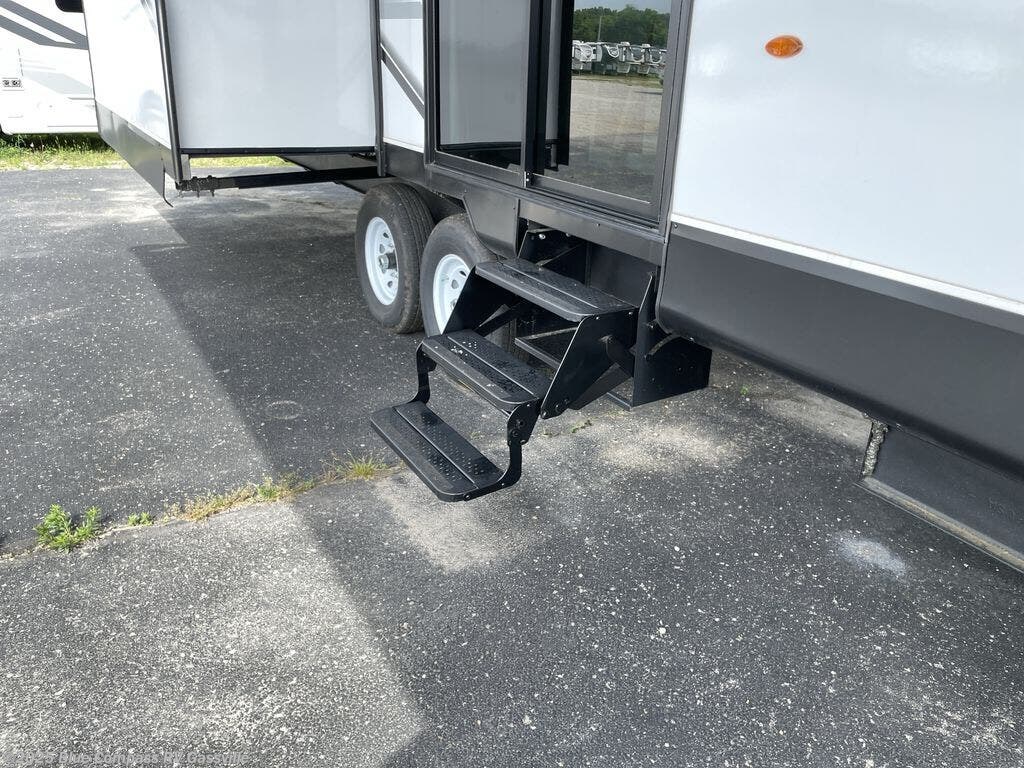 Each Jay Flight Bungalow travel trailer by Jayco features a Magnum Truss roof system, an 8' 6" wide-body construction, and an insulated and enclosed underbelly for added protection against the elements. You will love the open living space and the atrium-style front wall, along with oversized side windows and hardwood look vinyl flooring. A central vacuum with a push button retract makes cleaning and hose storage easier than ever, and the four burner Insignia gas range and 30" microwave will complete the chef's dream kitchen. These travel trailers also include an AM/FM/Bluetooth stereo and marine grade exterior speakers, a power awning with an LED light, an outside shower, plus many more exterior conveniences!