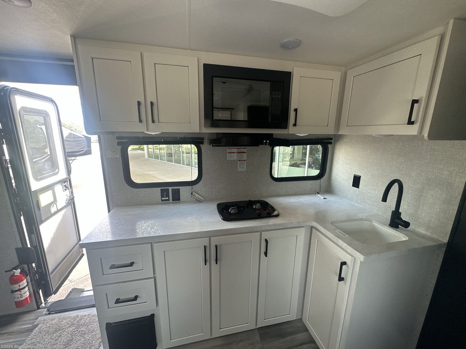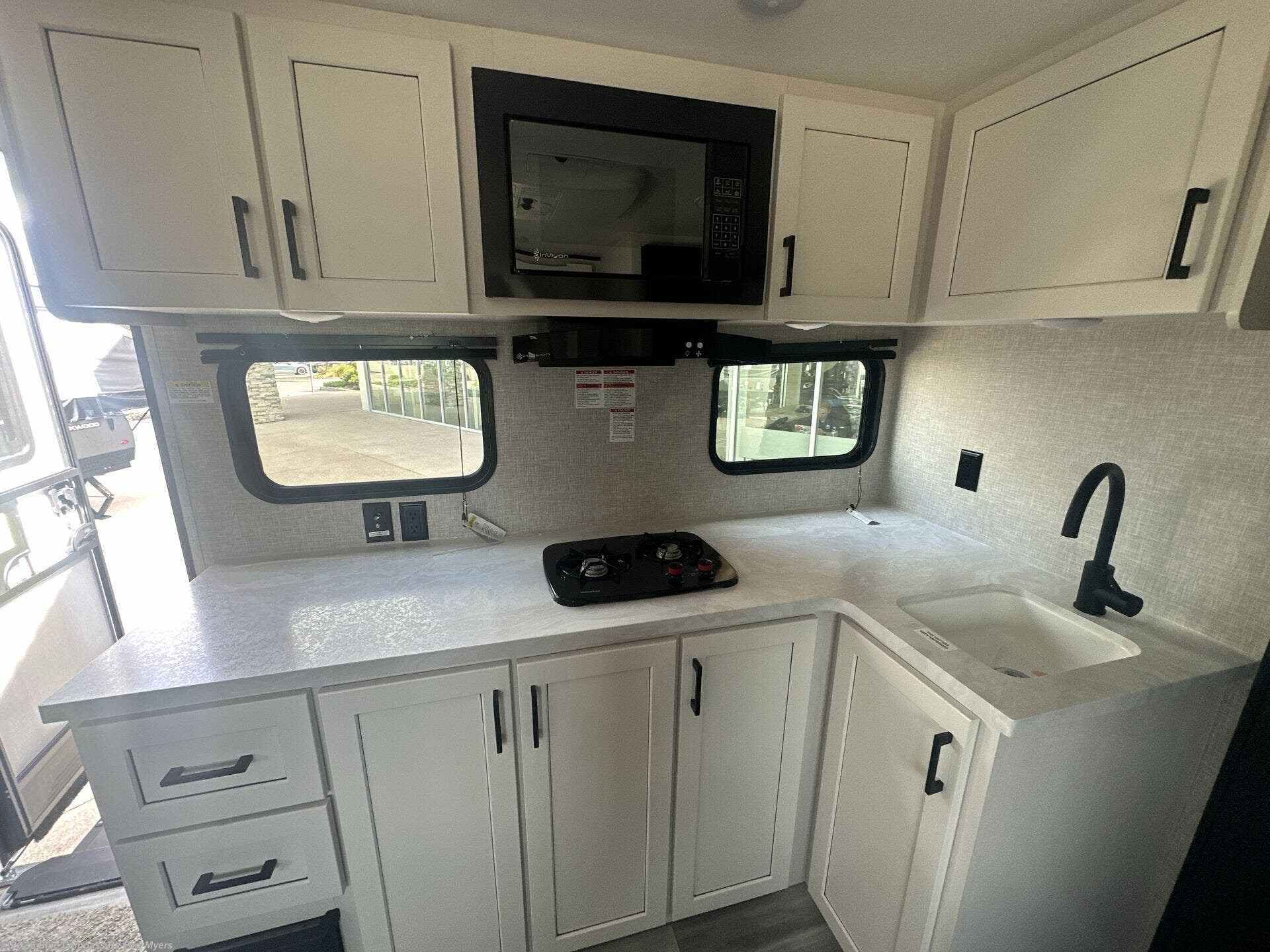 This single-axle couple's travel trailer is sure to bring you happiness at the campground. There is a front queen bed with a privacy curtain if you have a guest staying over on the jack-knife sofa, and the movable table in front of the sofa will provide more floor space when needed. A cooktop and microwave oven will let you make meals each day, and an 8 cu. ft. 12V refrigerator will be perfect for perishables. This model also includes a full rear bath with a tub/shower, a toilet, plus a sink and a linen closet for clean towels. The optional STX Edition can be added on this model which includes 16 in. off-road tires, triple entry steps, a power tongue jack, and more!