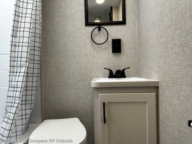 Your crew of five will love camping in this single-axle travel trailer! There are bunk beds in the rear corner and a full bath in the other rear corner for easy nighttime use. You will have the front queen bed to yourselves, along with a privacy curtain, overhead shelf, and a nightstand/wardrobe for your clothes. The booth dinette provides a place to dine, play games, and even let an extra guest stay over. The optional STX Edition can be added on this model which includes 16 in. off-road tires, triple entry steps, a power tongue jack, and more!