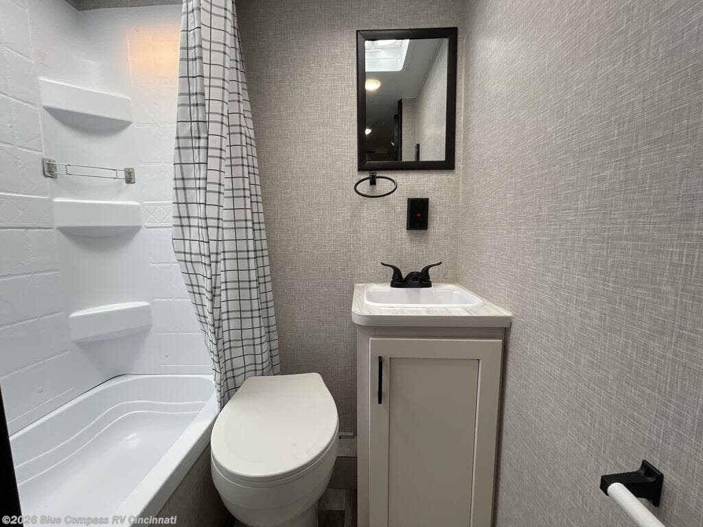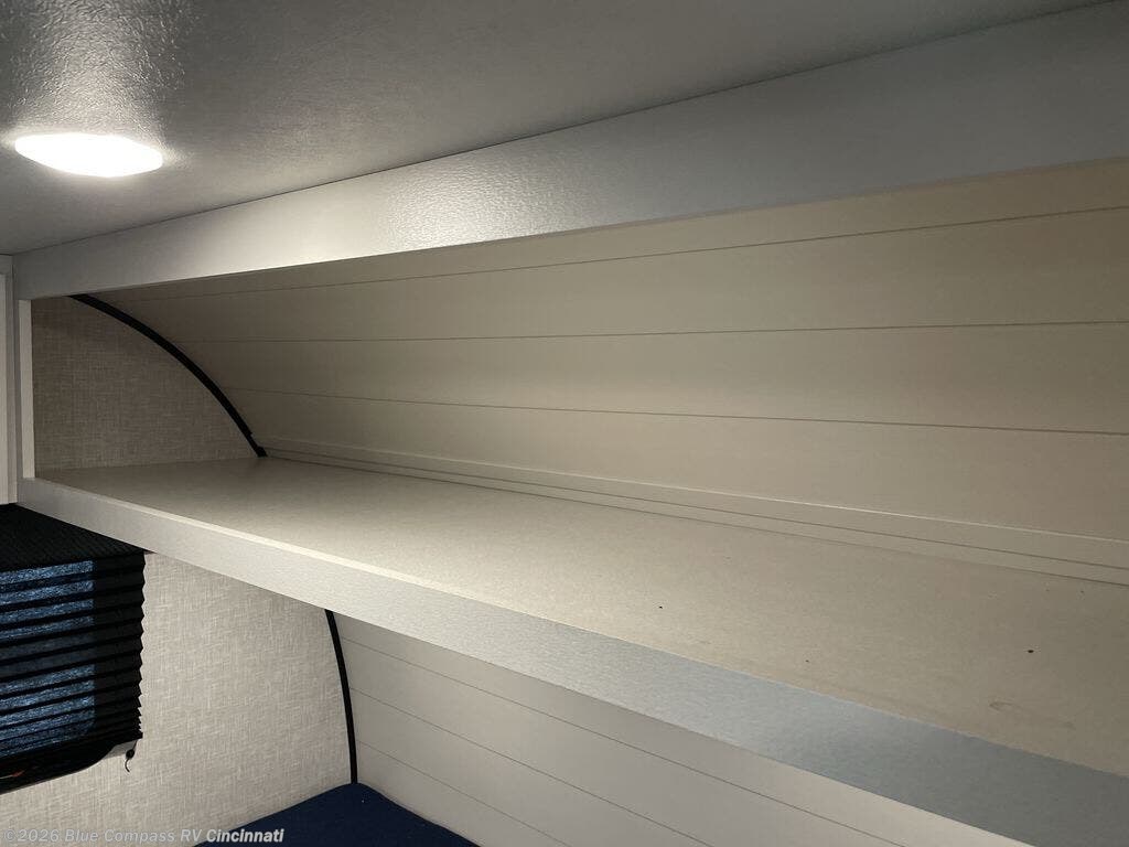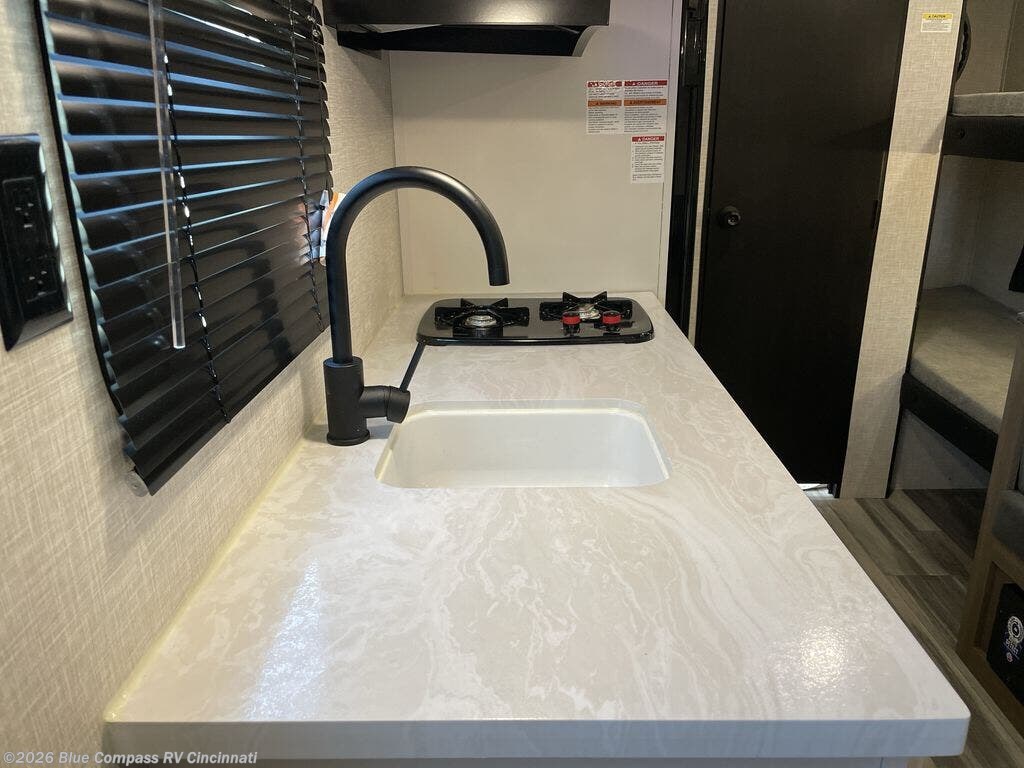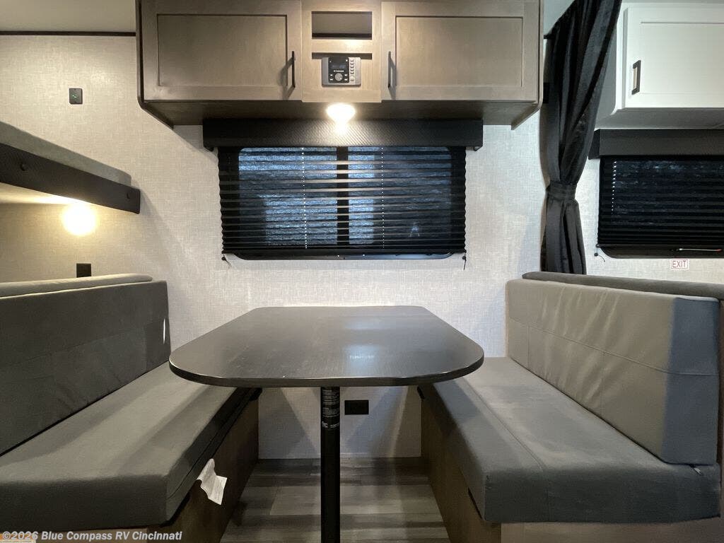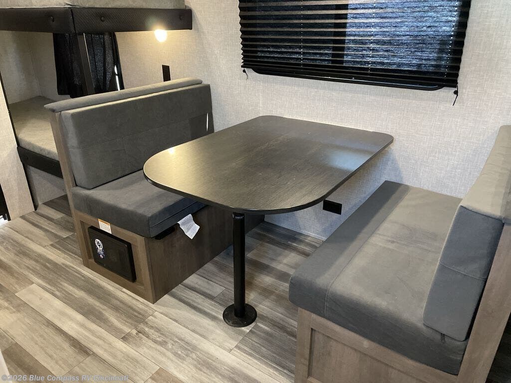 Your crew of five will love camping in this single-axle travel trailer! There are bunk beds in the rear corner and a full bath in the other rear corner for easy nighttime use. You will have the front queen bed to yourselves, along with a privacy curtain, overhead shelf, and a nightstand/wardrobe for your clothes. The booth dinette provides a place to dine, play games, and even let an extra guest stay over. The optional STX Edition can be added on this model which includes 16 in. off-road tires, triple entry steps, a power tongue jack, and more!