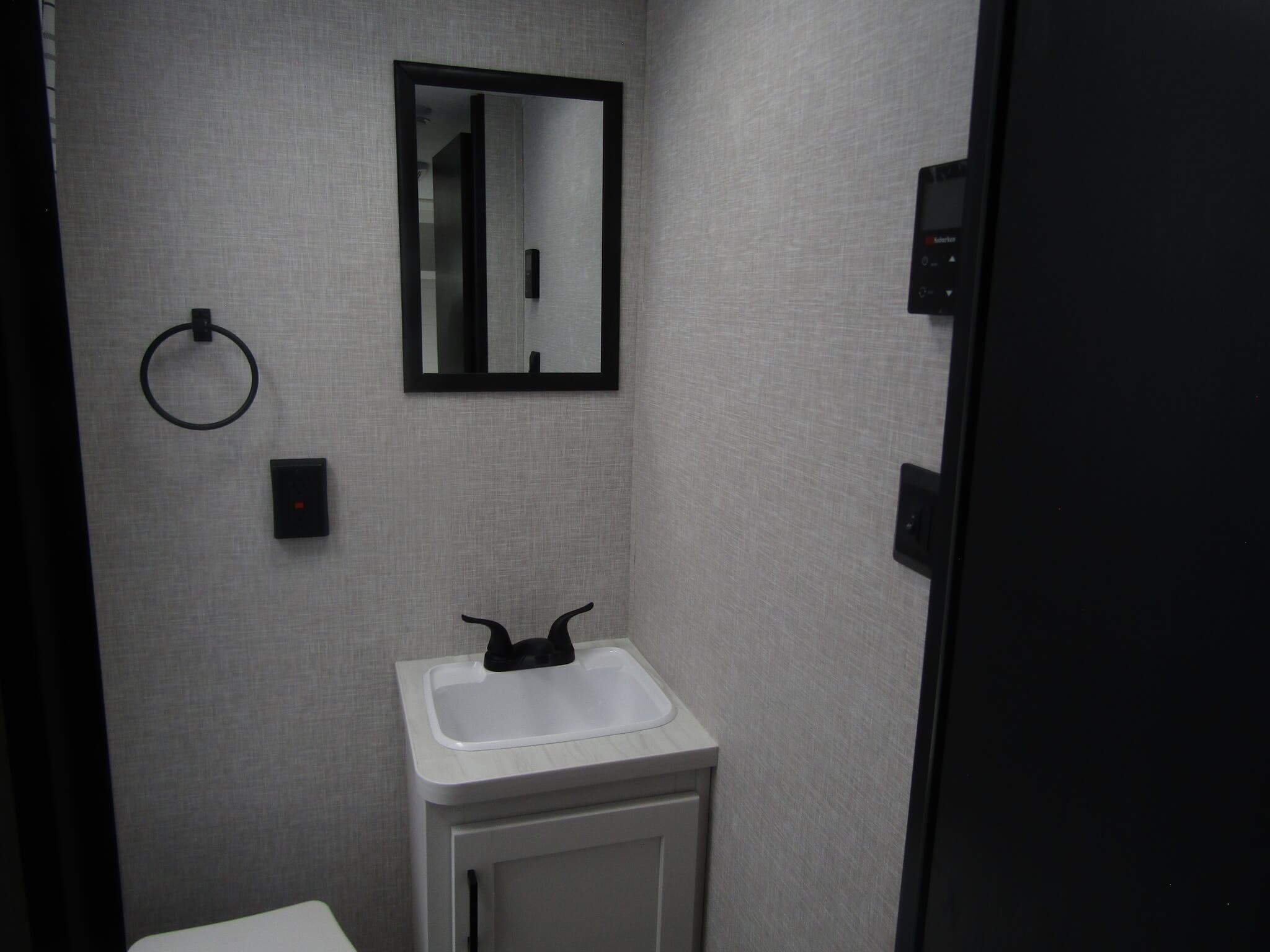 Cooking is a breeze with amenities such as a Microwave, Refrigerator, and Stove Top Burner. Enjoy your favorite meals under the shelter of the Awning and turn up the fun with the built-in Surround Sound System and Exterior Speakers. Essential comforts like water heating with the Water Heater and climate control with the Air Conditioning (8000 BTUs) ensure that you can enjoy a home-like experience anywhere you go.