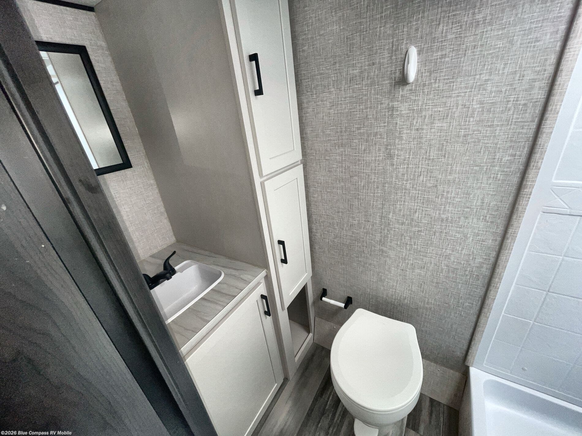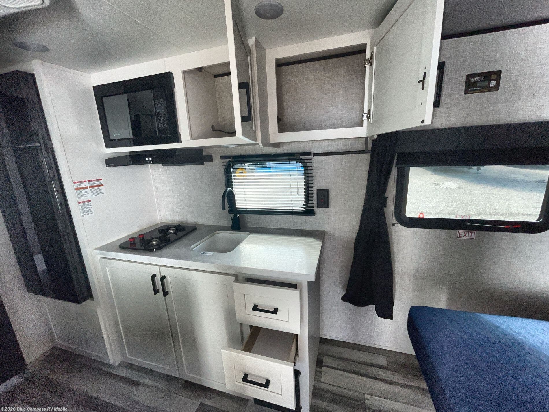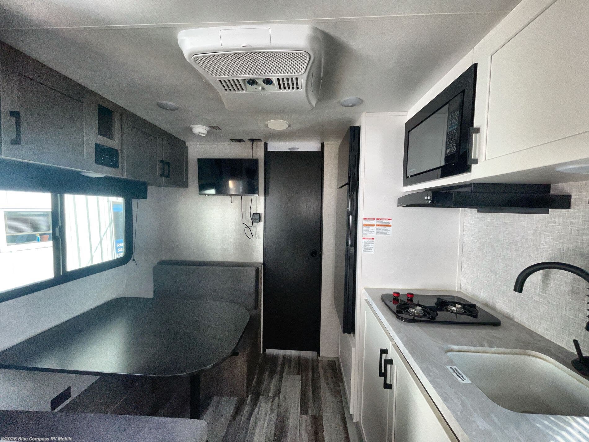 This travel trailer includes everything you need for fun trips at the lake. When you arrive at the campground, you can unload the exterior storage, then put out the 12' power awning with LED lights. There is also an LP Quick Connect if you want to hook up your own grill! The booth dinette inside will provide a place to dine together, and the full rear bath with a tub/shower will make bath time easier than ever for little ones. A front RV queen bed will provide a great night's rest, and the privacy curtain will be appreciated when you're getting dressed in the morning. The optional STX Edition can be added on this model which includes 16 in. off-road tires, triple entry steps, a power tongue jack, and more!