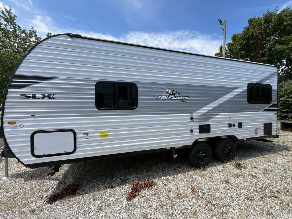 The Jayco Jay Flight SLX travel trailer is quite easy to own because it is lightweight for an easier towing experience. Built on a fully integrated A-frame with galvanized-steel, impact-resistant wheel wells, the Jay Flight SLX has quality at its very foundation. That quality continues on to the electric self-adjusting brakes, easy-lube hubs, Magnum Truss roof system, and LP quick connect. Some of what the mandatory Customer Value Package includes is backup camera prep, Keyed-Alike entry and baggage doors, marine grade exterior speakers, and an on-demand tankless water heater.