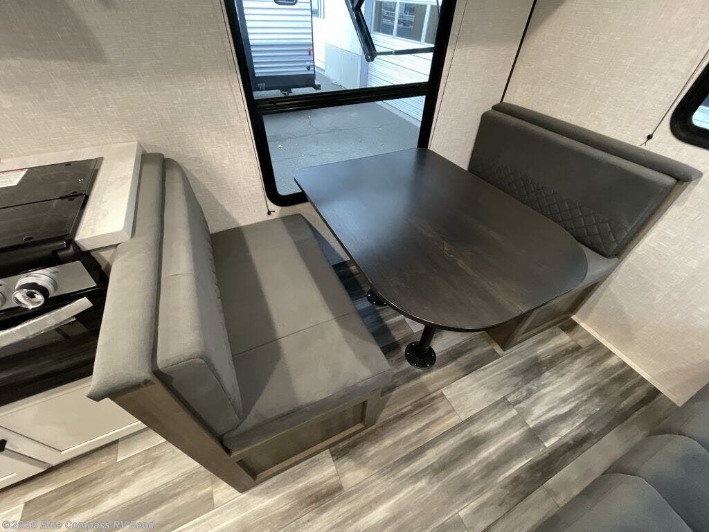 Camping in the woods is just what the doctor ordered and this trailer will provide all the interior comforts you need! There is a three burner cooktop and a microwave oven to prepare meals each day, plus an 8 cu. ft. 12V refrigerator for cold items. After your meal is made, you can dine at the booth dinette or relax on the jack-knife sofa, and these areas can become sleeping space for two to three guests at night. The full bath with a tub/shower means you won't have to use the camp's facilities and the 16' power awning will provide protection from the sun as you visit with other campers!
