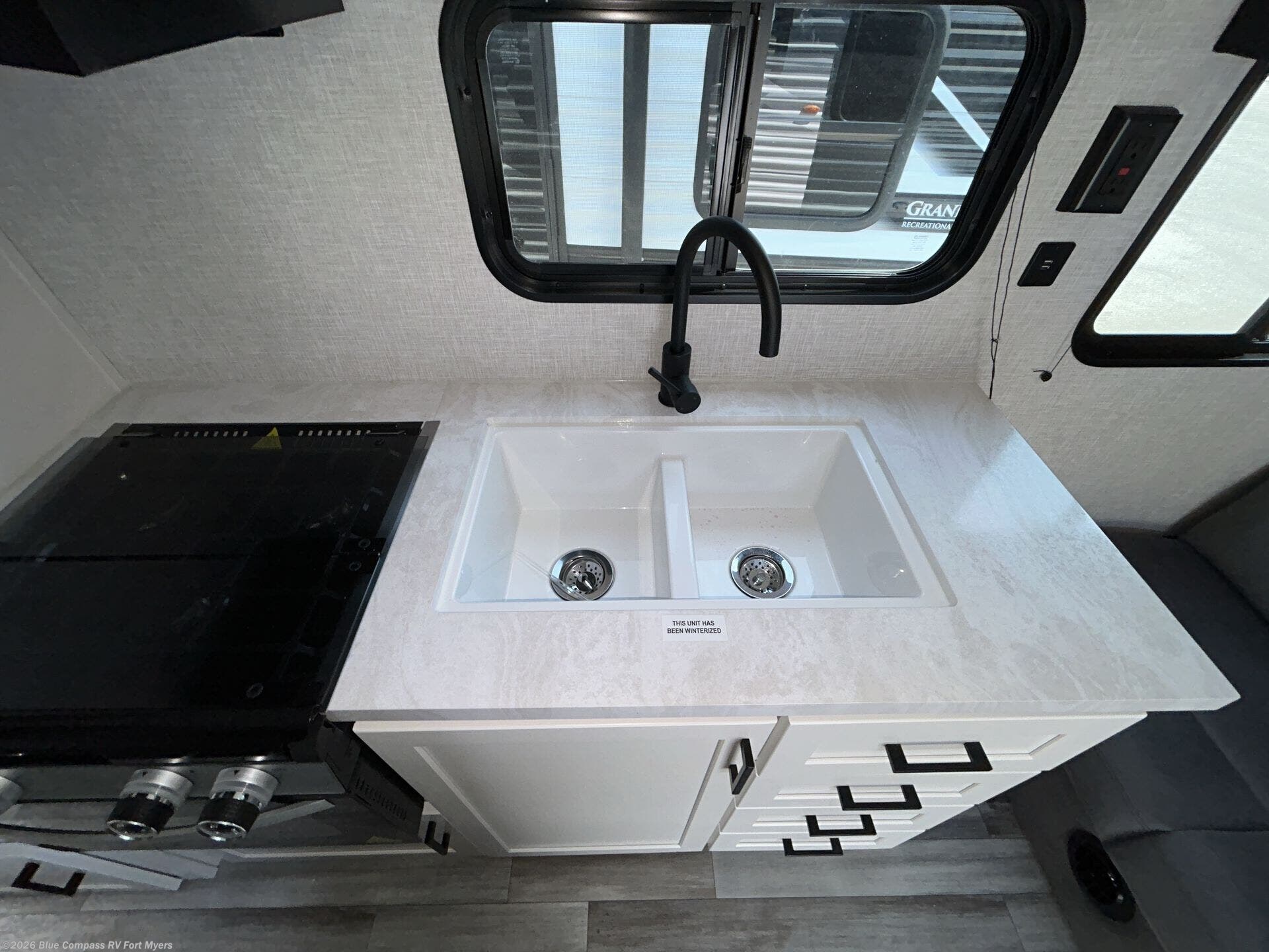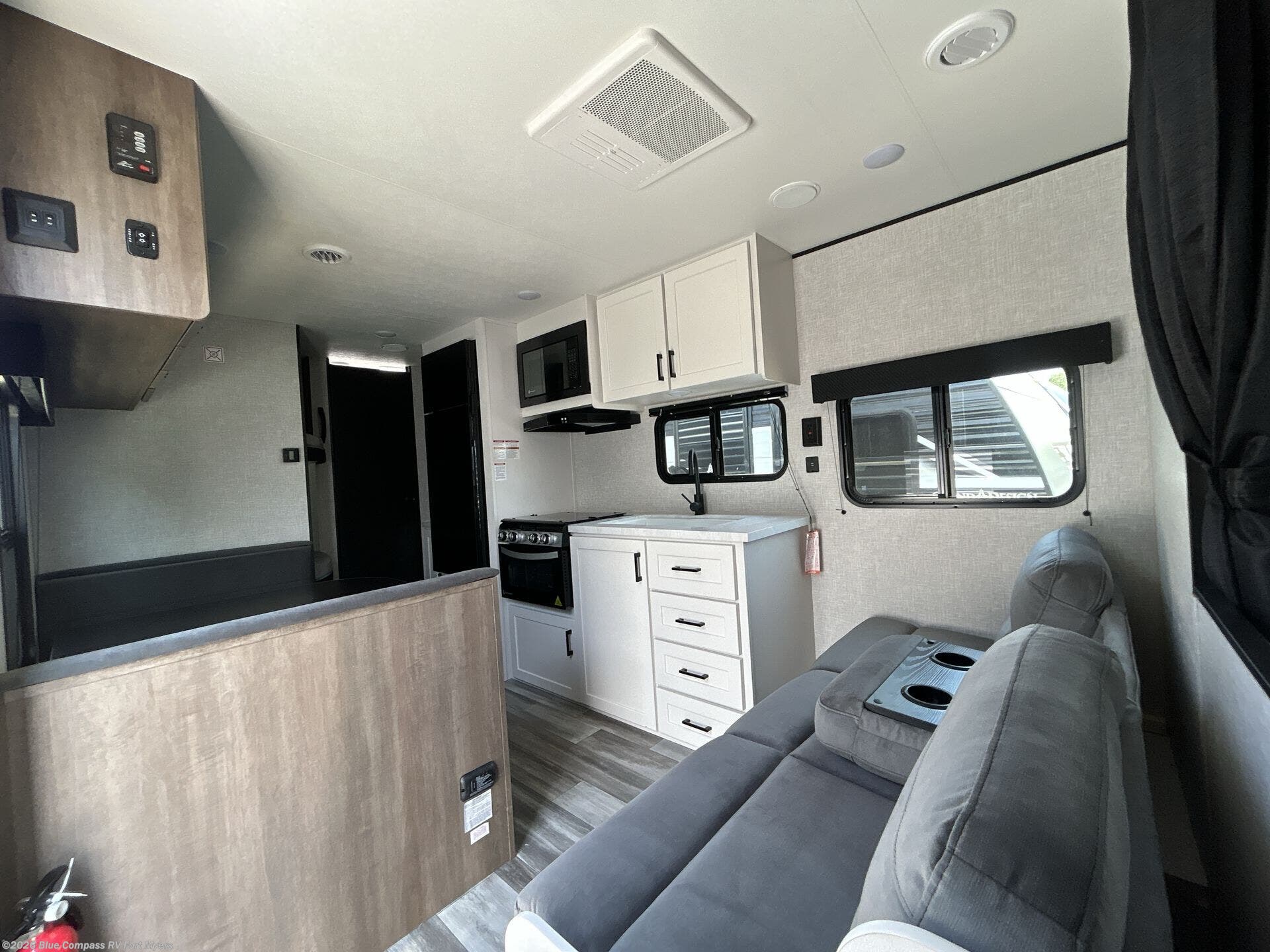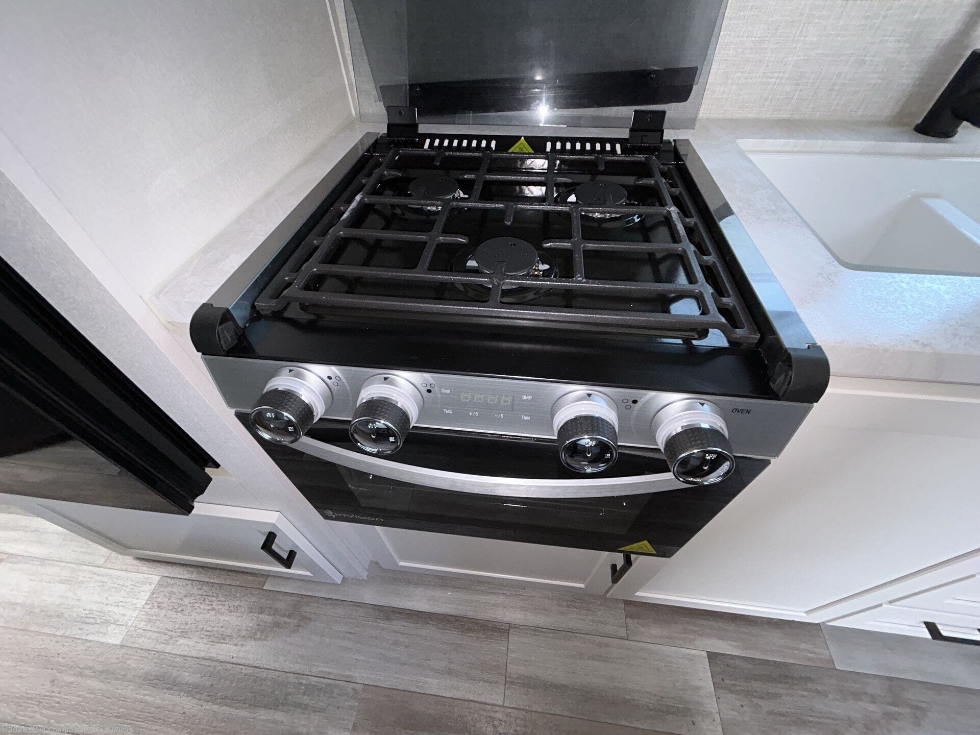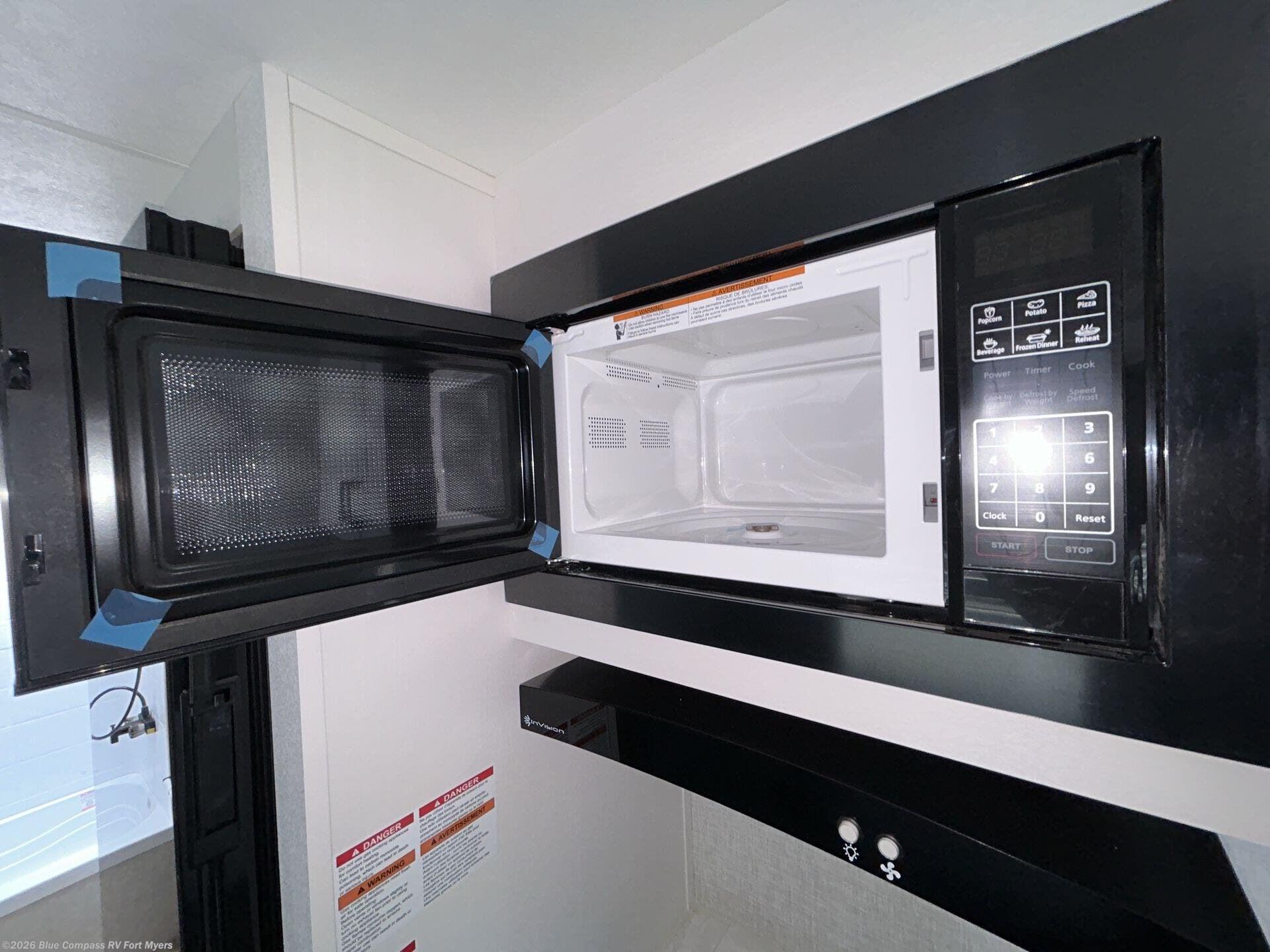 You can comfortably sleep eight to ten people in this trailer thanks to the double-size bunks, the RV queen bed in the front bedroom, plus the booth dinette and jack-knife sofa in the main living area! The chef of your crew will have a three burner cooktop and microwave oven to prepare meals, and everyone can store their favorite drinks in the 8 cu. ft. 12V refrigerator. The bathroom includes a tub/shower and a toilet, with the sink just outside of this room so others can brush their teeth if one is taking a shower before bed. The outside storage will let you bring along fishing poles and the 16' power awning with LED lights will create a nice place to gather in the evenings!