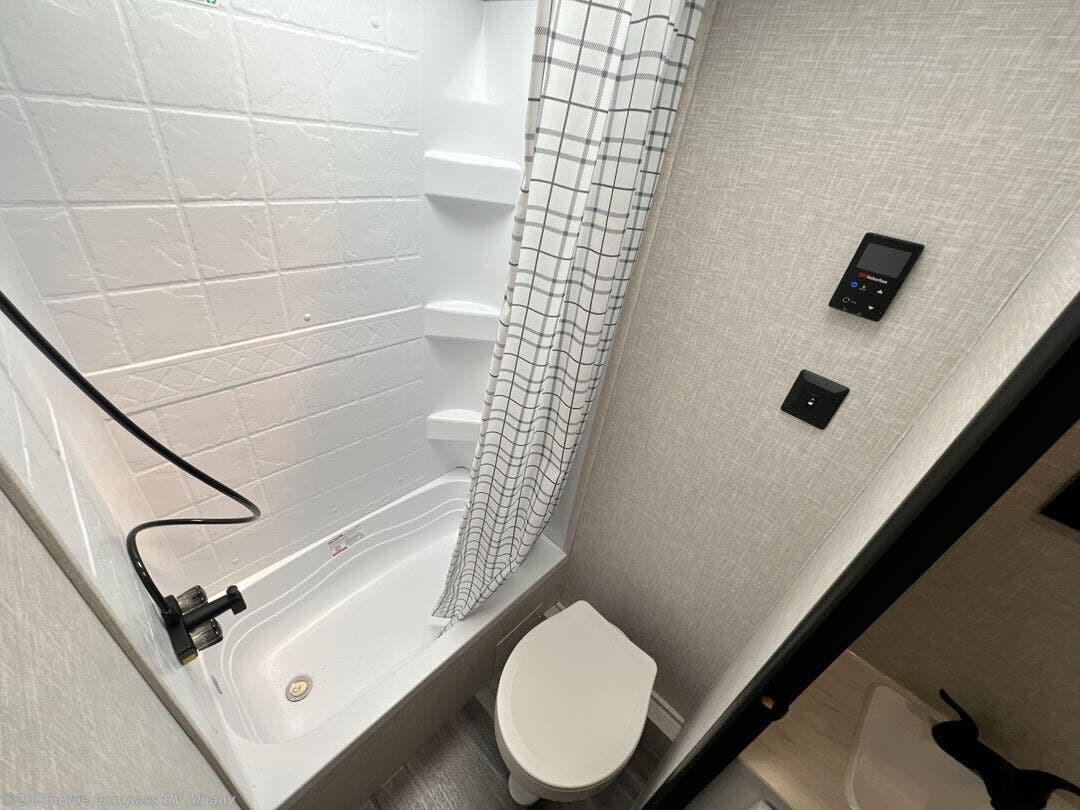 You can comfortably sleep eight to ten people in this trailer thanks to the double-size bunks, the RV queen bed in the front bedroom, plus the booth dinette and jack-knife sofa in the main living area! The chef of your crew will have a three burner cooktop and microwave oven to prepare meals, and everyone can store their favorite drinks in the 8 cu. ft. 12V refrigerator. The bathroom includes a tub/shower and a toilet, with the sink just outside of this room so others can brush their teeth if one is taking a shower before bed. The outside storage will let you bring along fishing poles and the 16' power awning with LED lights will create a nice place to gather in the evenings!
