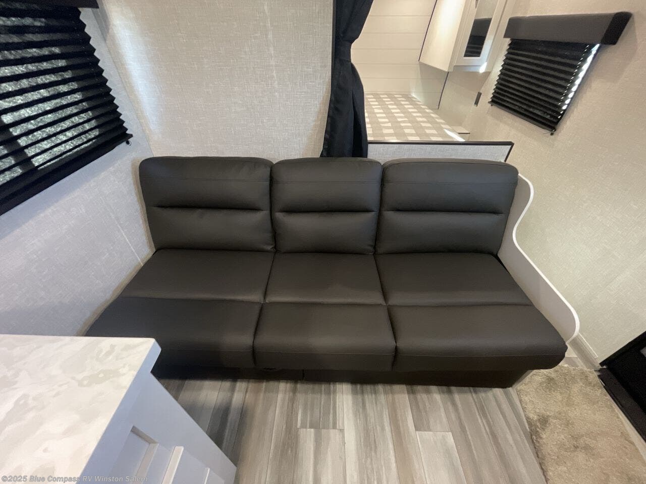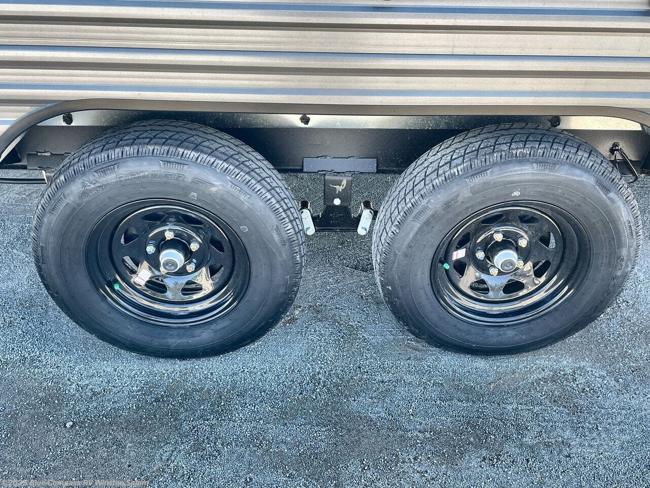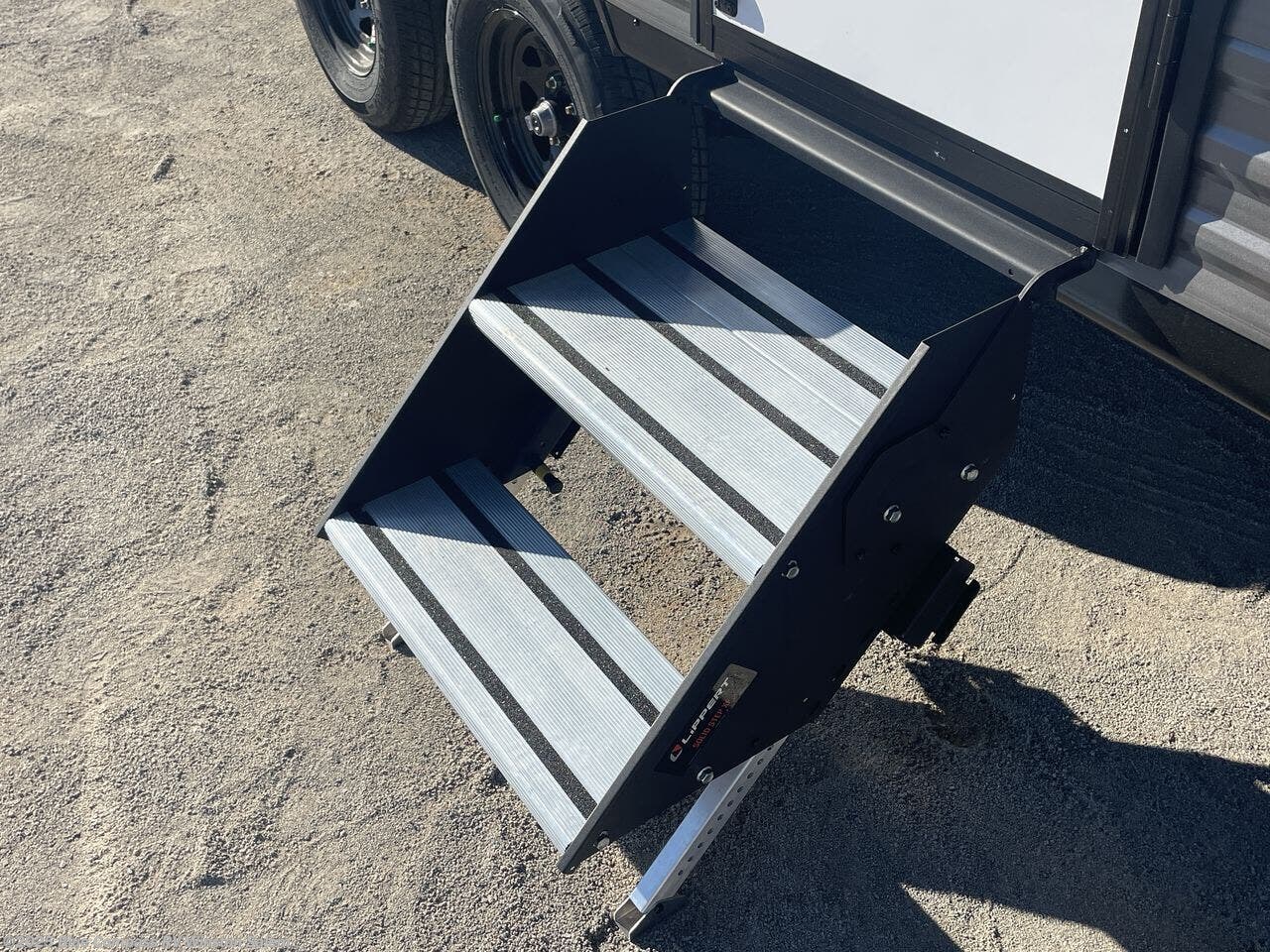 You can comfortably sleep eight to ten people in this trailer thanks to the double-size bunks, the RV queen bed in the front bedroom, plus the booth dinette and jack-knife sofa in the main living area! The chef of your crew will have a three burner cooktop and microwave oven to prepare meals, and everyone can store their favorite drinks in the 8 cu. ft. 12V refrigerator. The bathroom includes a tub/shower and a toilet, with the sink just outside of this room so others can brush their teeth if one is taking a shower before bed. The outside storage will let you bring along fishing poles and the 16' power awning with LED lights will create a nice place to gather in the evenings!