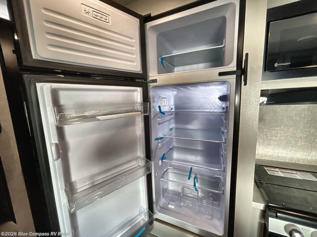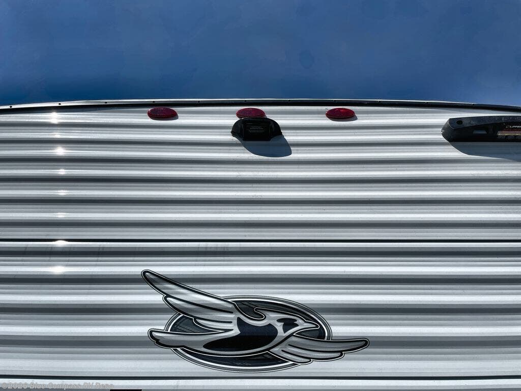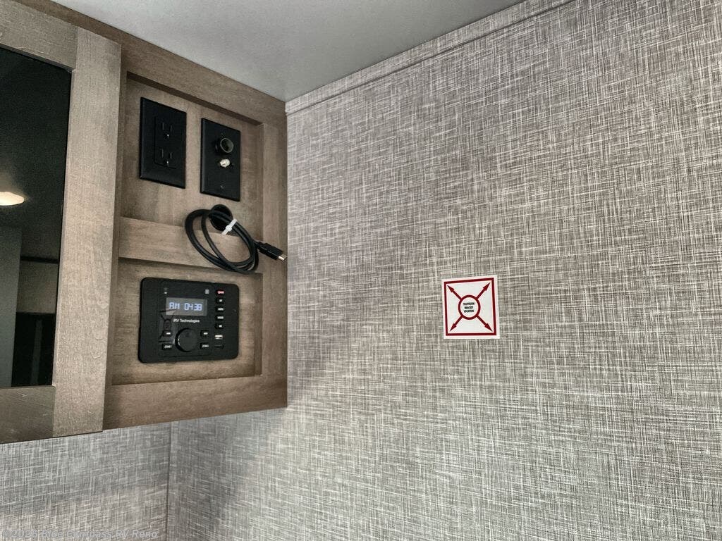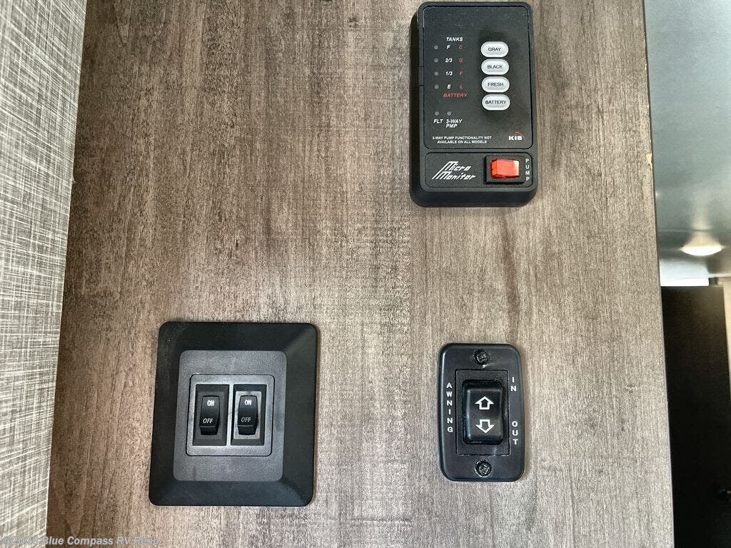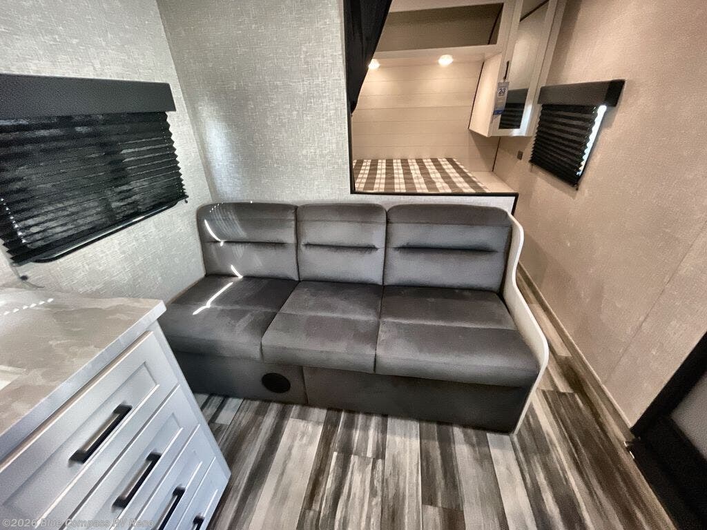 You can comfortably sleep up to eight people in this trailer thanks to the double-size bunks, the RV queen bed in the front bedroom, plus the booth dinette and jack-knife sofa in the main living area! The chef of your crew will have a three burner cooktop and microwave oven to prepare meals, and everyone can store their favorite drinks in the 8 cu. ft. 12V refrigerator. The bathroom includes a tub/shower and a toilet, with the sink just outside of this room so others can brush their teeth if one is taking a shower before bed. The outside storage will let you bring along fishing poles and the 16' power awning with LED lights will create a nice place to gather in the evenings!