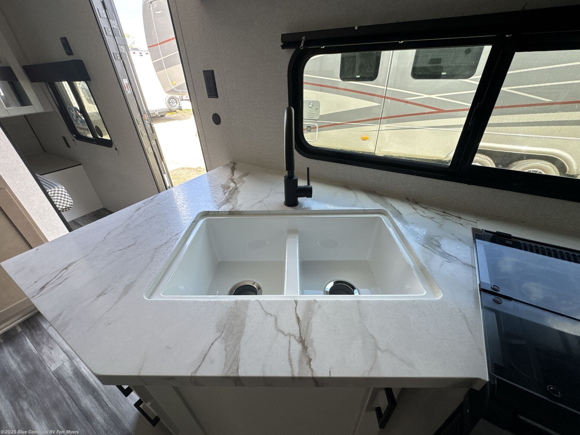 You can comfortably sleep up to ten people in this trailer thanks to the double-size bunks in back, the RV queen bed in the front bedroom, plus the booth dinette and jack-knife sofa in the main living area! The chef of your crew will have a three burner cooktop and microwave oven to prepare meals, and everyone can store their favorite drinks in the 8 cu. ft. 12V refrigerator inside, or in the outdoor refrigerator for convenience. The rear corner bathroom includes a tub/shower and a toilet, with the sink just outside of this room so others can brush their teeth if one is taking a shower before bed. The outside storage is accessible on both sides of the unit and will easily allow you bring along camp chairs, yard games and more. A 16' powered awning with LED lights will create a nice place to gather in the evenings with family and friends!