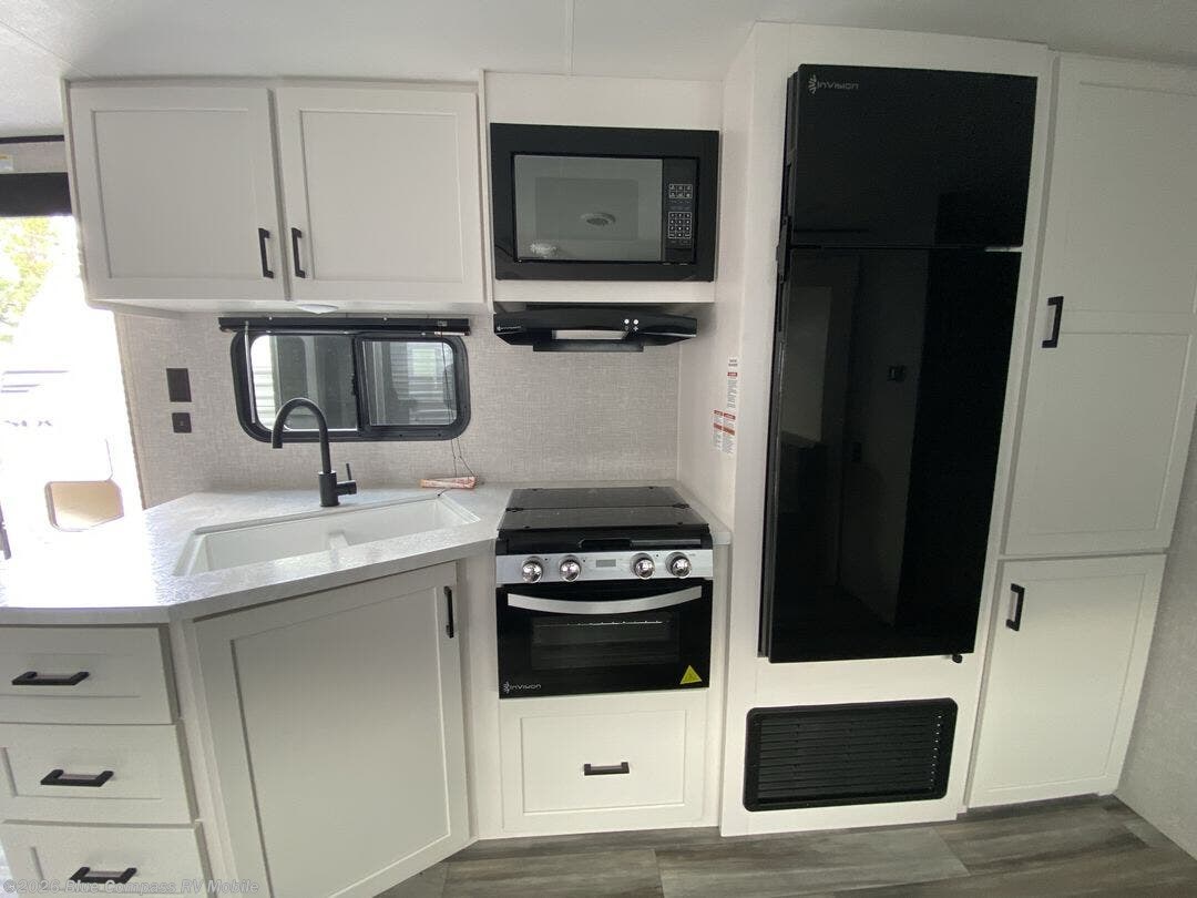 You can comfortably sleep up to ten people in this trailer thanks to the double-size bunks in back, the RV queen bed in the front bedroom, plus the booth dinette and jack-knife sofa in the main living area! The chef of your crew will have a three burner cooktop and microwave oven to prepare meals, and everyone can store their favorite drinks in the 8 cu. ft. 12V refrigerator inside, or in the outdoor refrigerator for convenience. The rear corner bathroom includes a tub/shower and a toilet, with the sink just outside of this room so others can brush their teeth if one is taking a shower before bed. The outside storage is accessible on both sides of the unit and will easily allow you bring along camp chairs, yard games and more. A 16' powered awning with LED lights will create a nice place to gather in the evenings with family and friends!