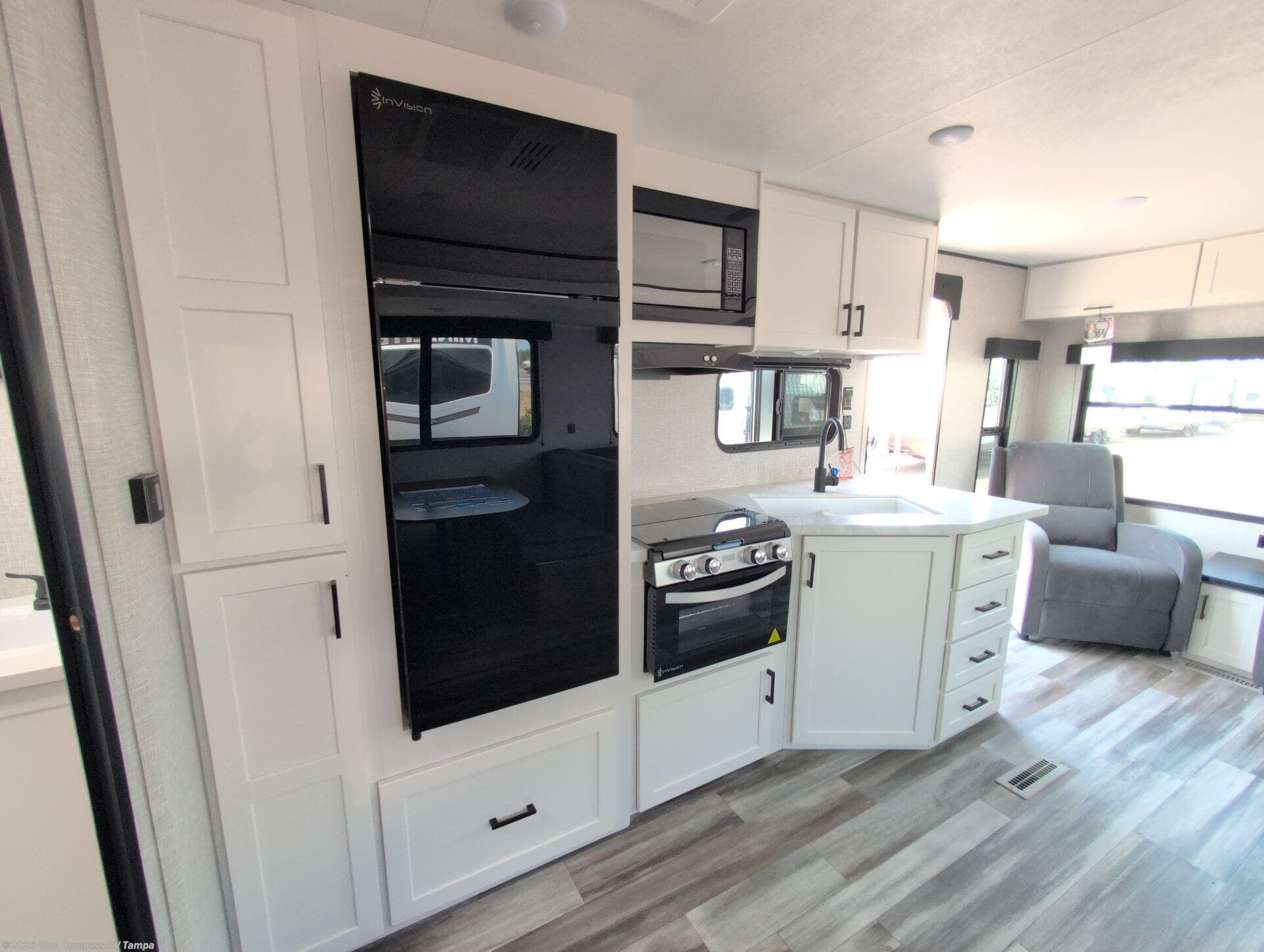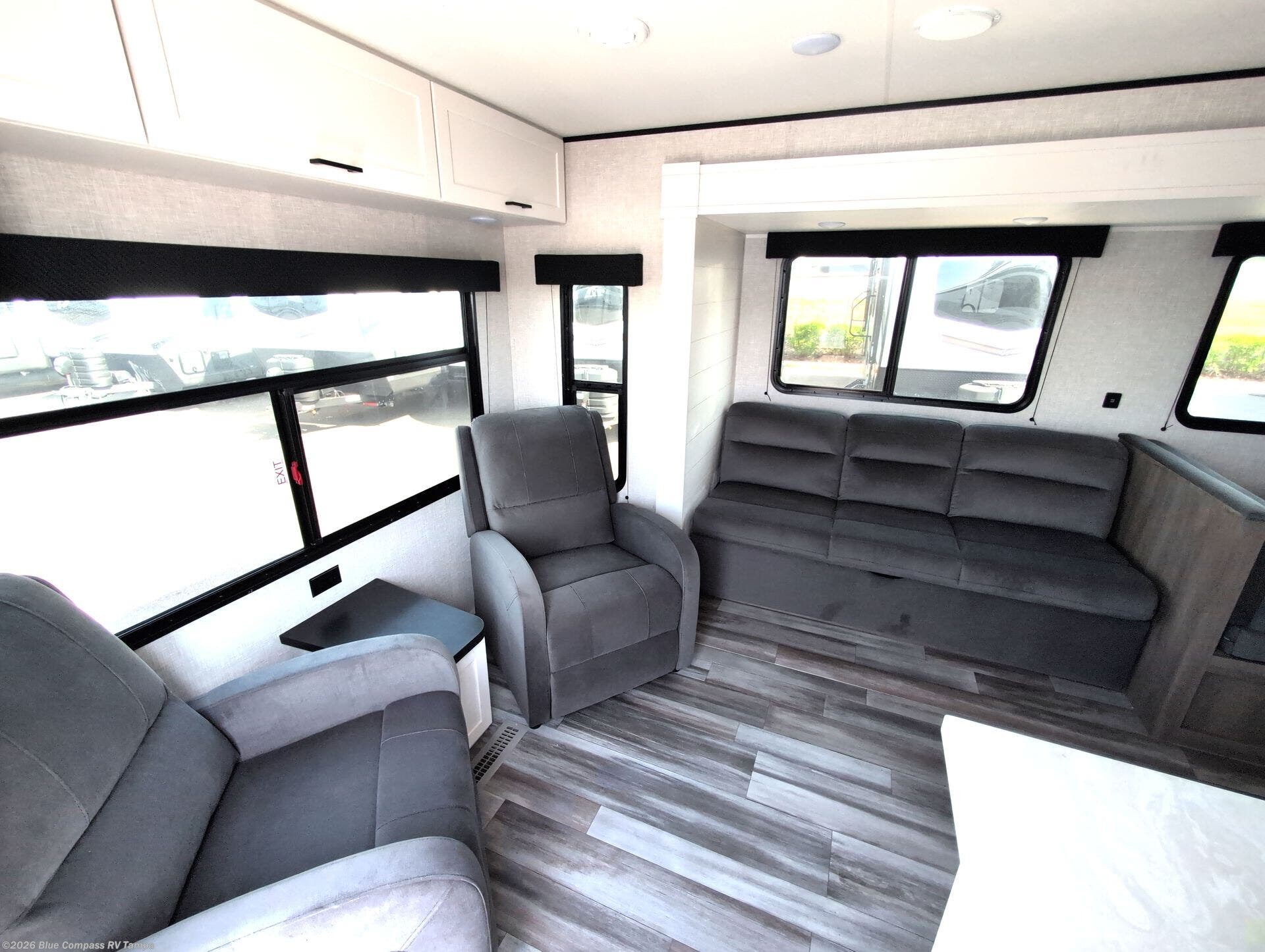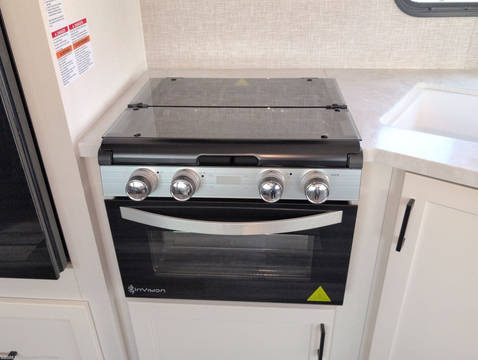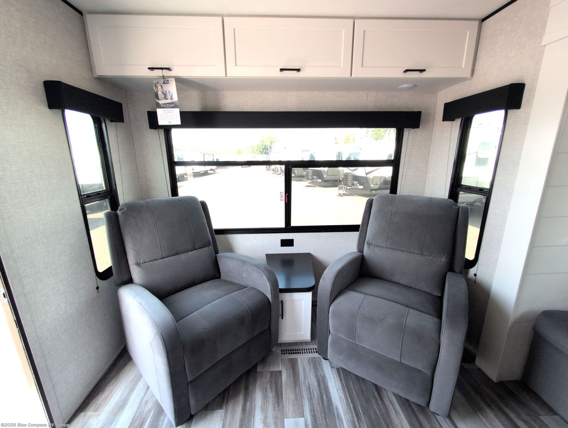 You can comfortably sleep up to six people in this trailer thanks to the RV queen bed in the front bedroom, plus the booth dinette and jack-knife sofa in the main living area! The chef of your crew will have a three burner cooktop and microwave oven to prepare meals, and everyone can store their favorite drinks in the 8 cu. ft. 12V refrigerator. The walk-through bath is spacious and includes a radius shower, toilet, a sink, and linen closet and is the full width of the unit. The outside storage will let you bring along camp chairs and games, fishing poles and more, plus the 18' 3" power awning with LED lights will create a nice place to gather in the evenings!