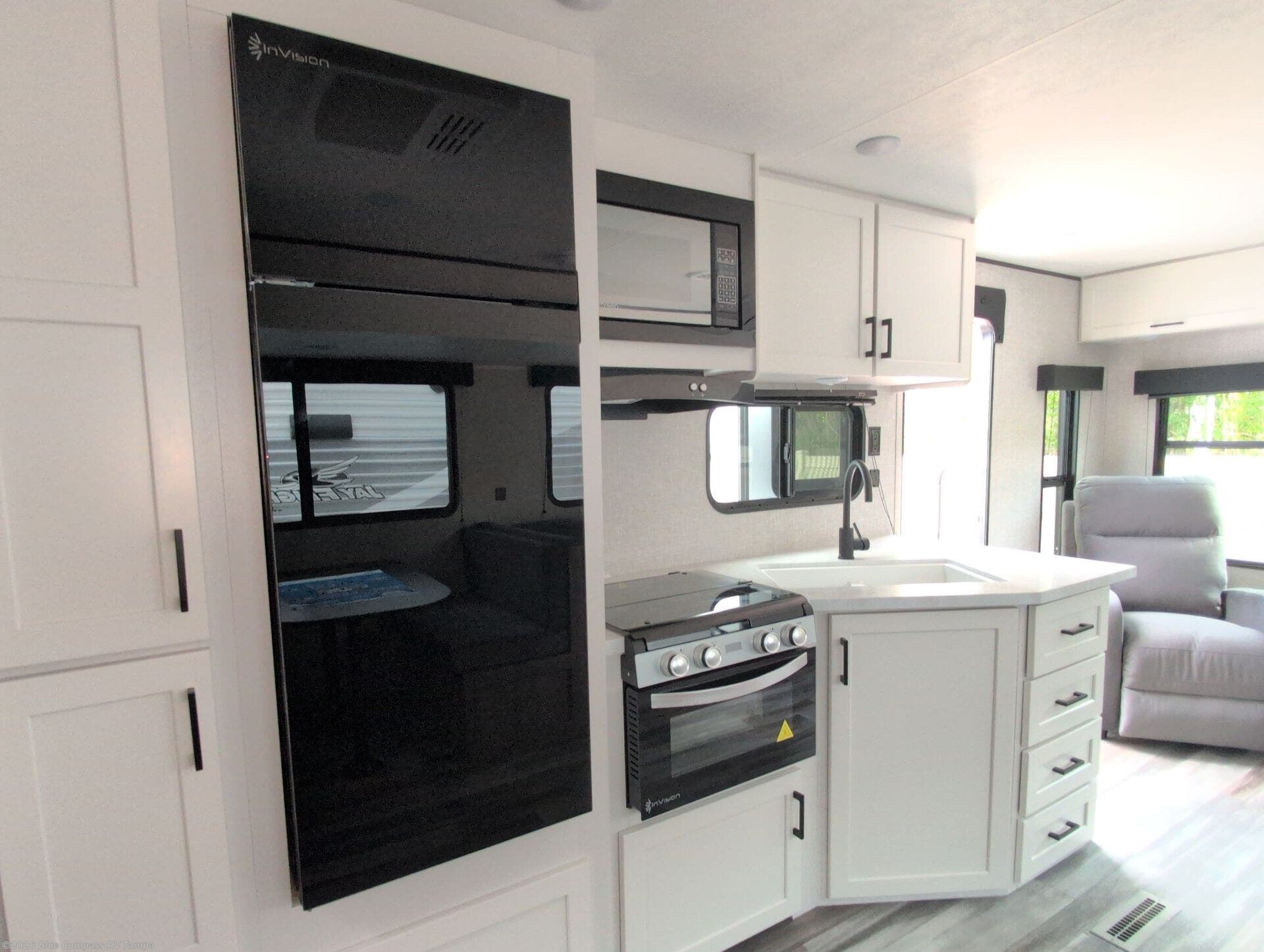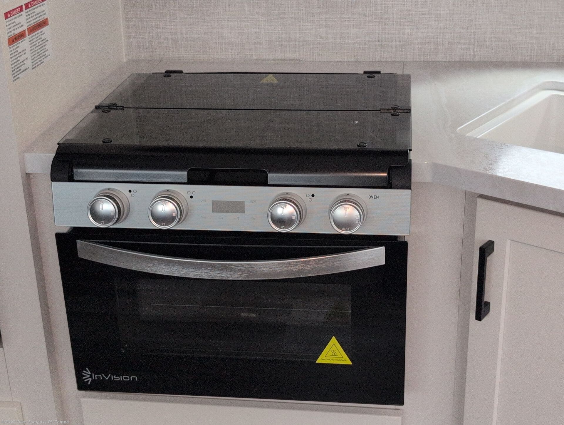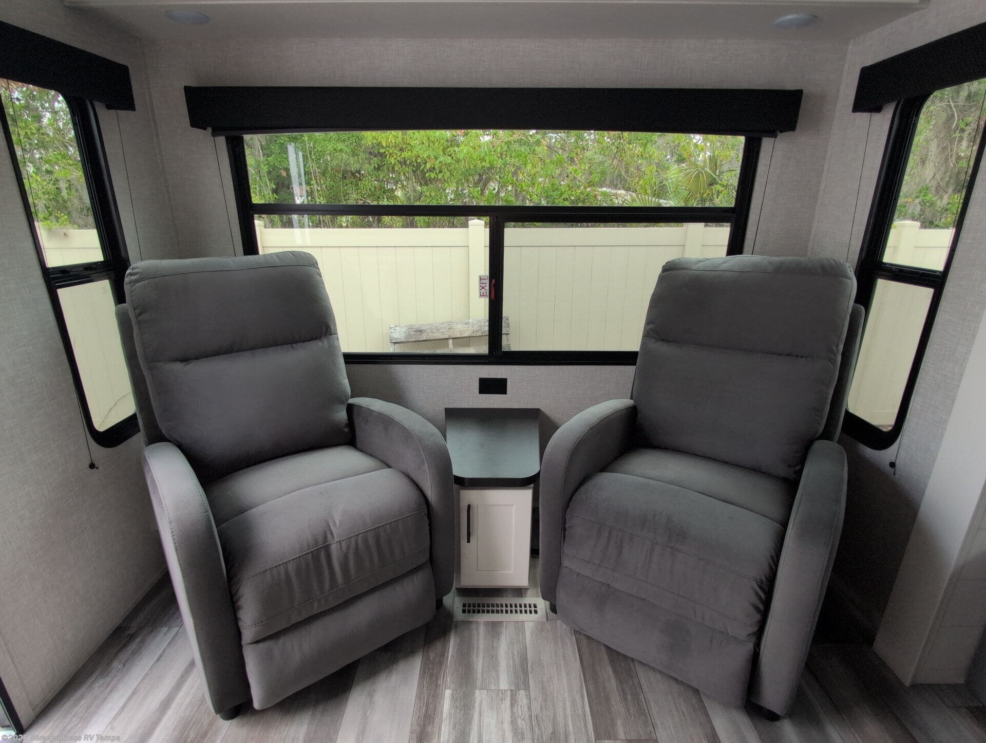 You can comfortably sleep up to six people in this trailer thanks to the RV queen bed in the front bedroom, plus the booth dinette and jack-knife sofa in the main living area! The chef of your crew will have a three burner cooktop and microwave oven to prepare meals, and everyone can store their favorite drinks in the 8 cu. ft. 12V refrigerator. The walk-through bath is spacious and includes a radius shower, toilet, a sink, and linen closet and is the full width of the unit. The outside storage will let you bring along camp chairs and games, fishing poles and more, plus the 18' 3" power awning with LED lights will create a nice place to gather in the evenings!