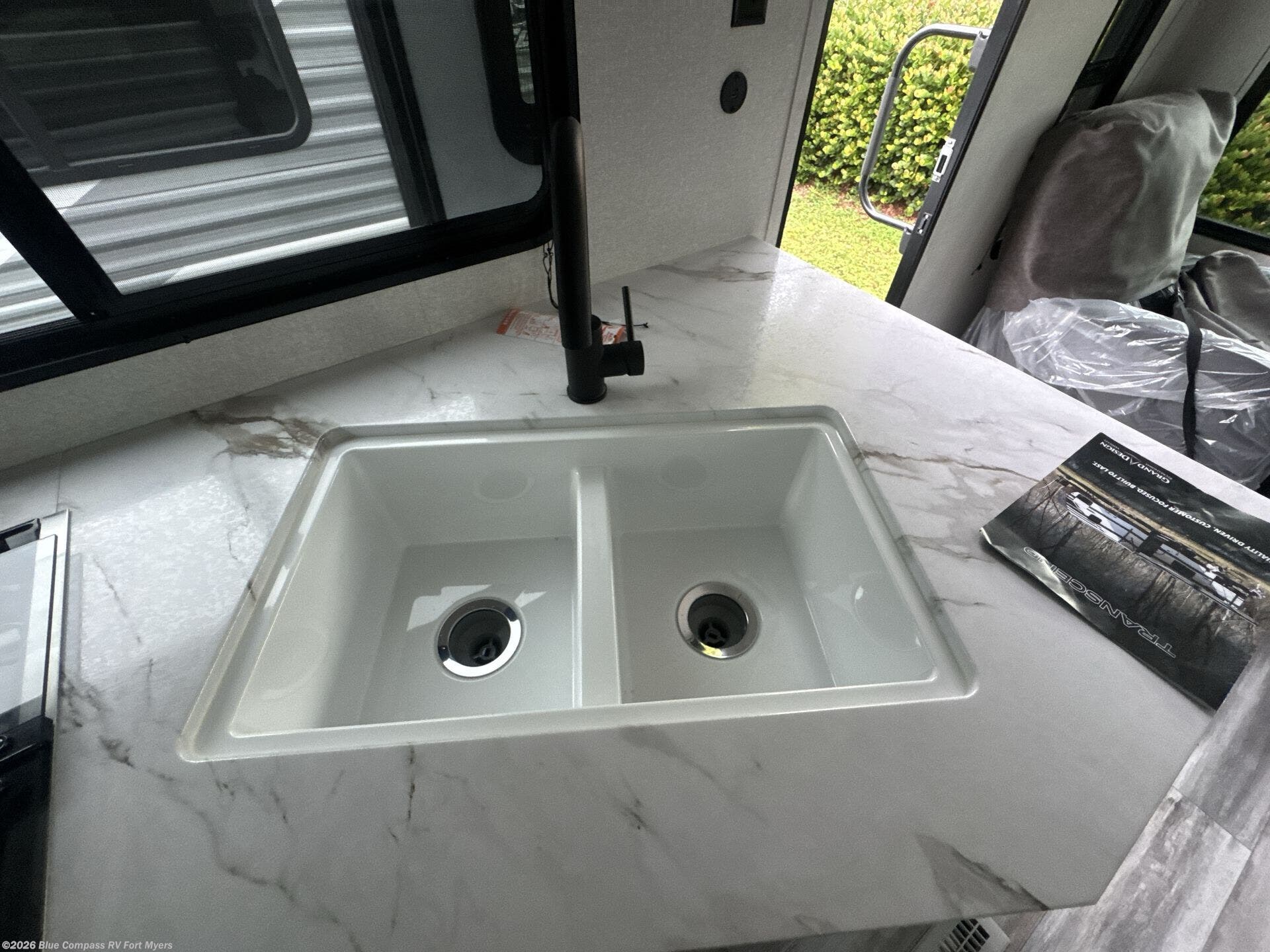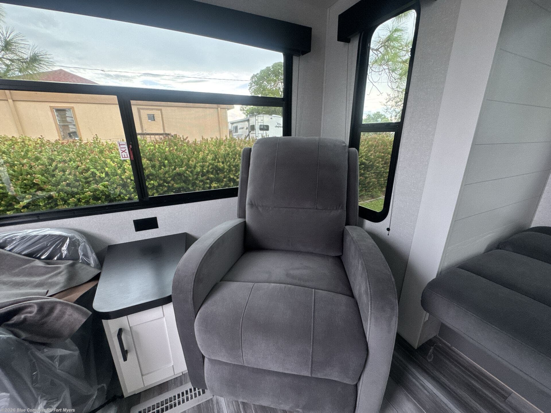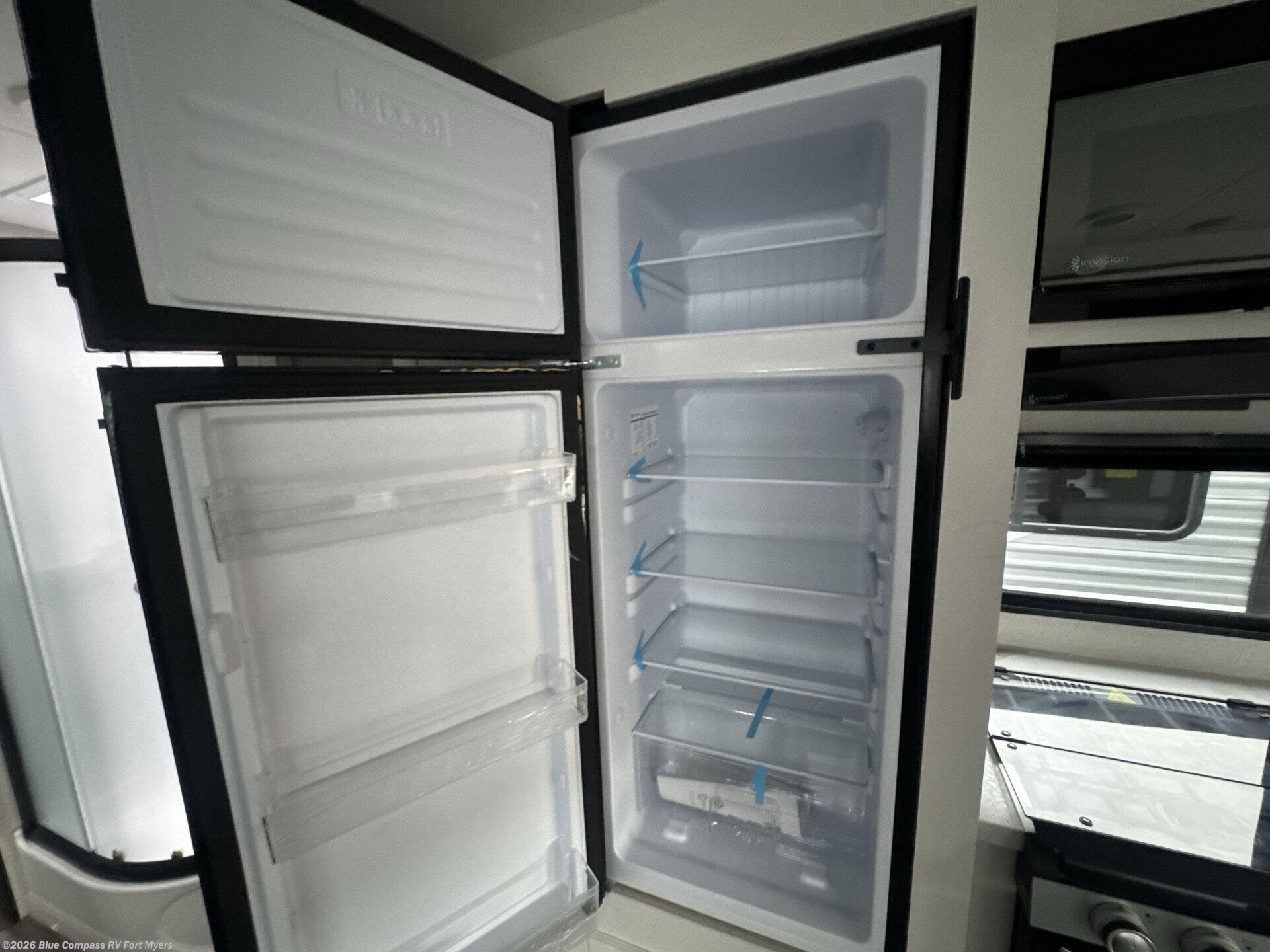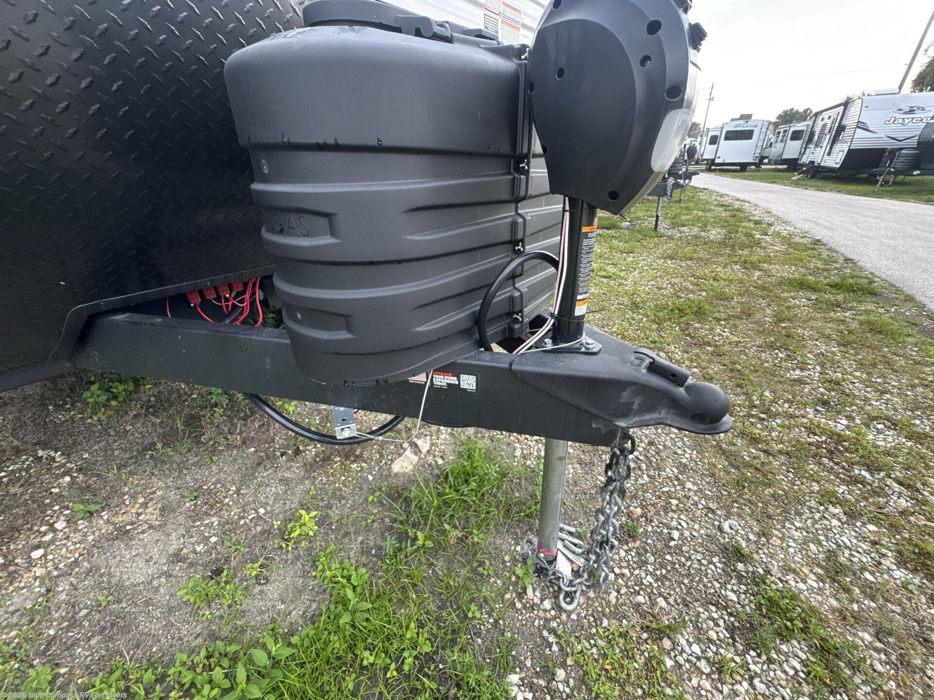 You can comfortably sleep up to six people in this trailer thanks to the RV queen bed in the front bedroom, plus the booth dinette and jack-knife sofa in the main living area! The chef of your crew will have a three burner cooktop and microwave oven to prepare meals, and everyone can store their favorite drinks in the 8 cu. ft. 12V refrigerator. The walk-through bath is spacious and includes a radius shower, toilet, a sink, and linen closet and is the full width of the unit. The outside storage will let you bring along camp chairs and games, fishing poles and more, plus the 18' 3" power awning with LED lights will create a nice place to gather in the evenings!
