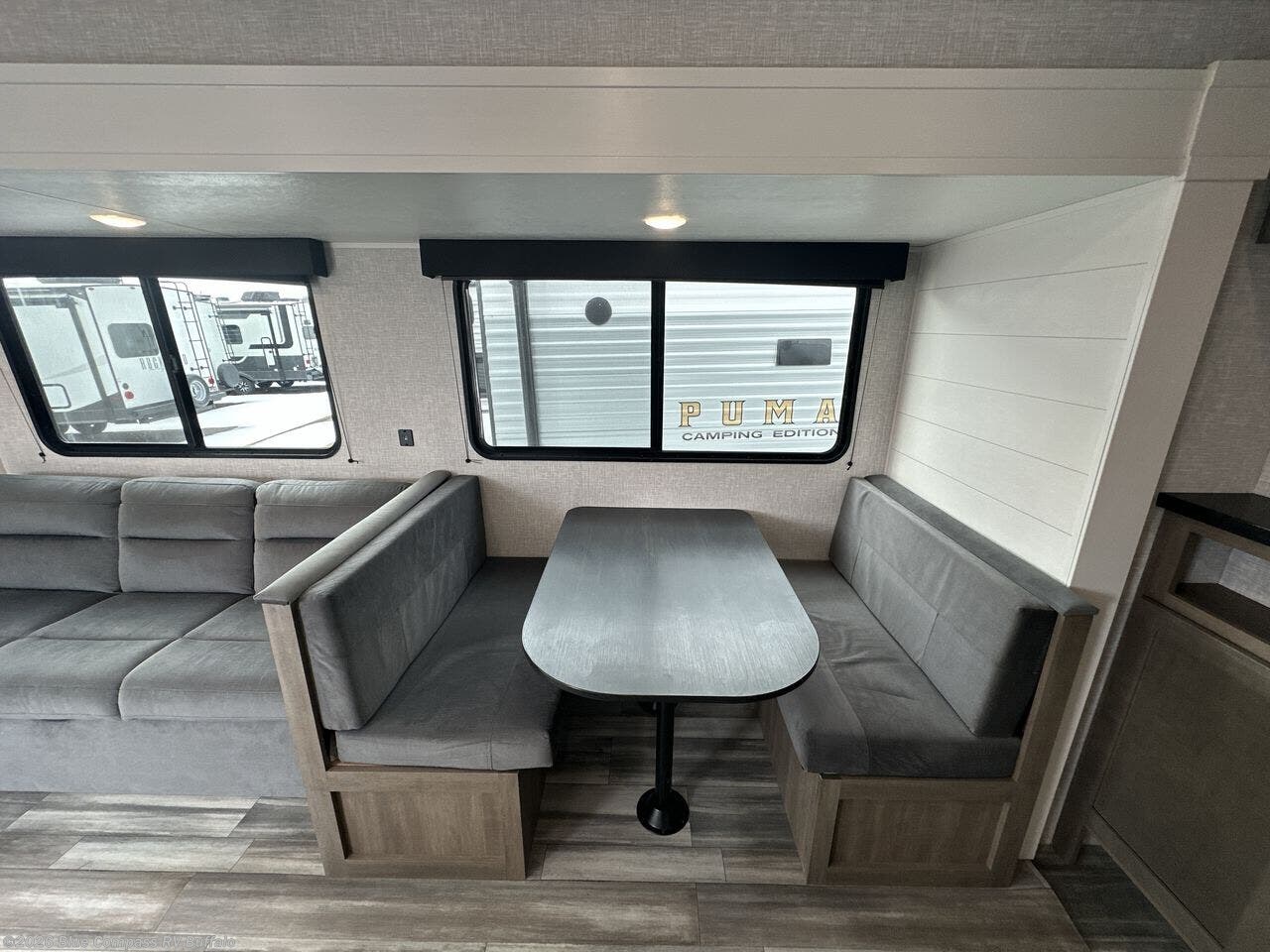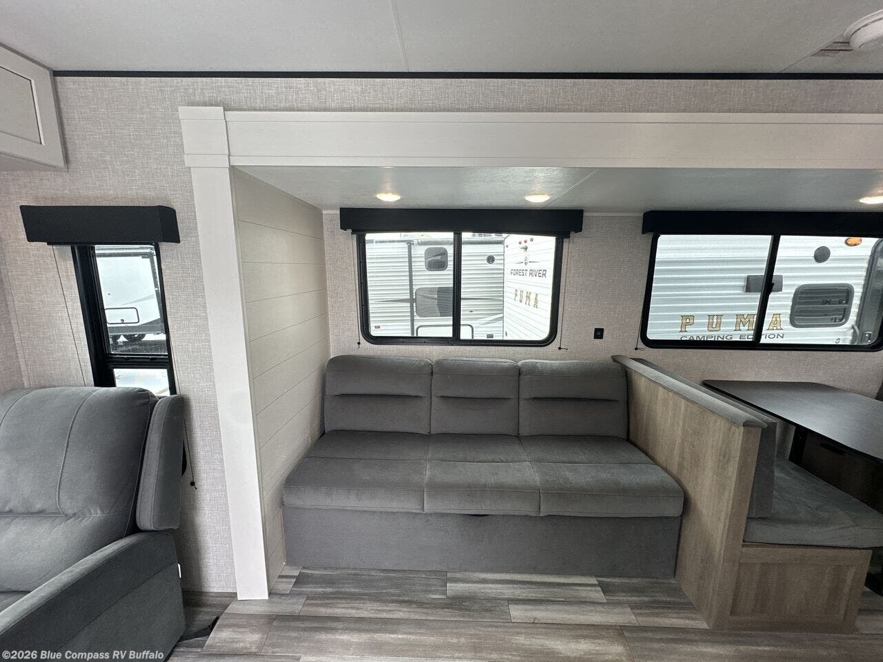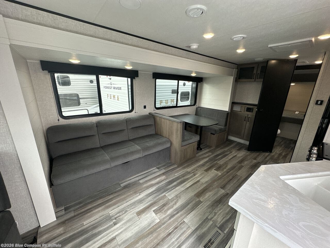 You can comfortably sleep up to six people in this trailer thanks to the RV queen bed in the front bedroom, plus the booth dinette and jack-knife sofa in the main living area! The chef of your crew will have a three burner cooktop and microwave oven to prepare meals, and everyone can store their favorite drinks in the 8 cu. ft. 12V refrigerator. The walk-through bath is spacious and includes a radius shower, toilet, a sink, and linen closet and is the full width of the unit. The outside storage will let you bring along camp chairs and games, fishing poles and more, plus the 18' 3" power awning with LED lights will create a nice place to gather in the evenings!