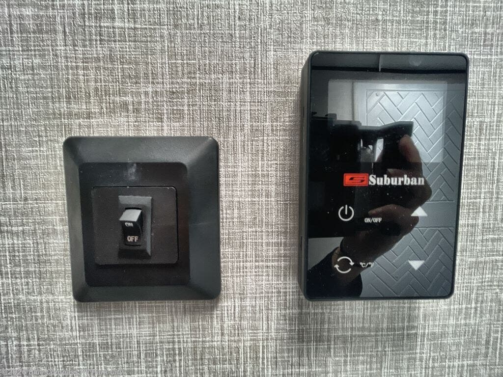 Loads of fun like hiking, fishing, and playing outdoor camping games are waiting for you to make that reservation, hitch up and head out! This trailer allows the owners to sleep in privacy behind the space saving sliding door on a 60" x 75" queen bed. And the kids or grandkids can sleep on the double-size bunks in the rear next to the full bathroom including a tub/shower. They even have a wardrobe nearby for their things. The slide out jackknife sofa and U-shaped dinette offers more floor space, a place to relax and dine, plus you can play games at the dinette. This model also includes an exterior refrigerator so you can grab a cold drink while under the 16' power awning!