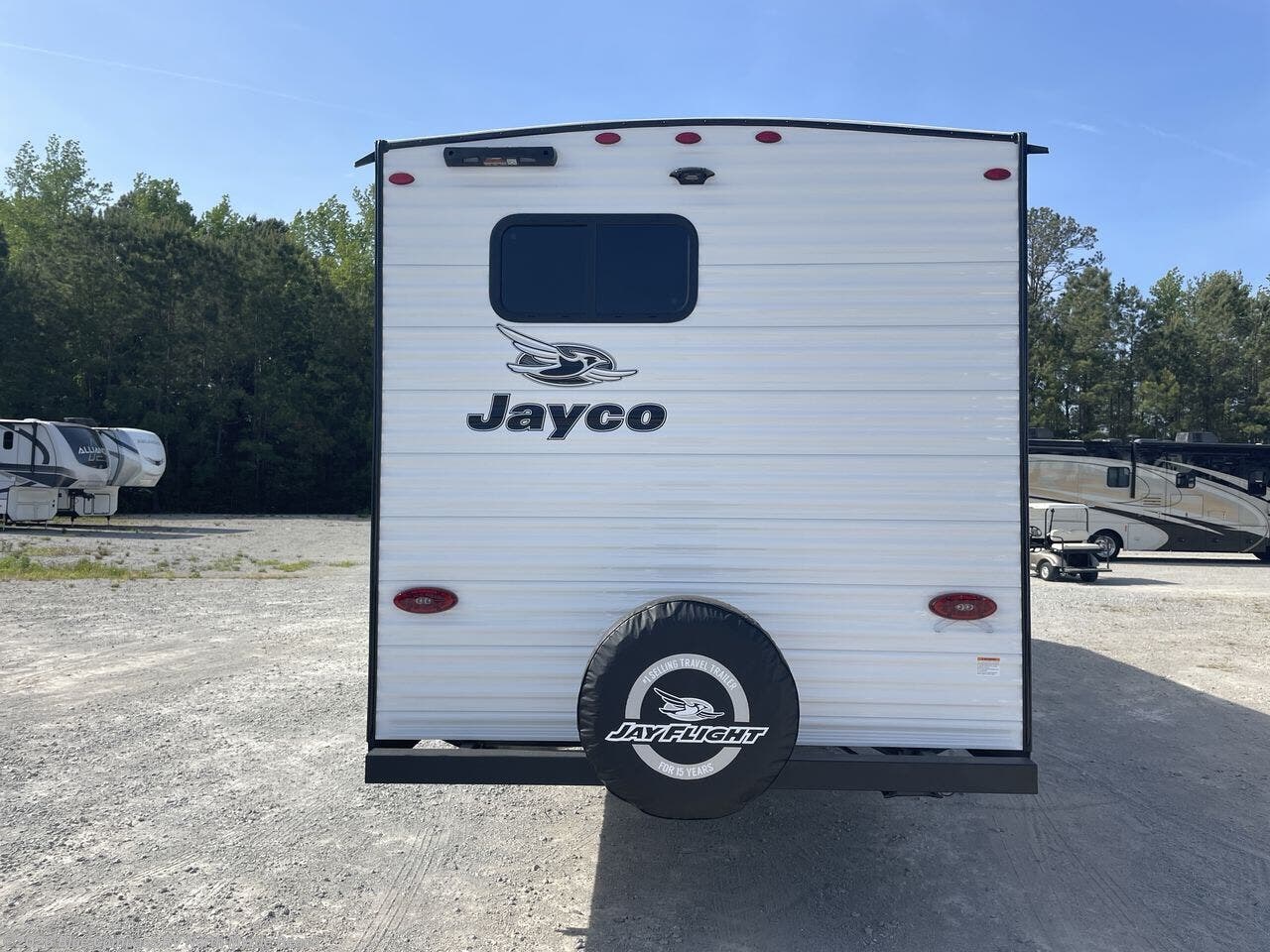 The Jayco Jay Flight SLX travel trailer is quite easy to own because it is lightweight for an easier towing experience. Built on a fully integrated A-frame with galvanized-steel, impact-resistant wheel wells, the Jay Flight SLX has quality at its very foundation. That quality continues on to the electric self-adjusting brakes, easy-lube hubs, Magnum Truss roof system, and LP quick connect. Some of what the mandatory Customer Value Package includes is backup camera prep, Keyed-Alike entry and baggage doors, marine grade exterior speakers, and an on-demand tankless water heater.