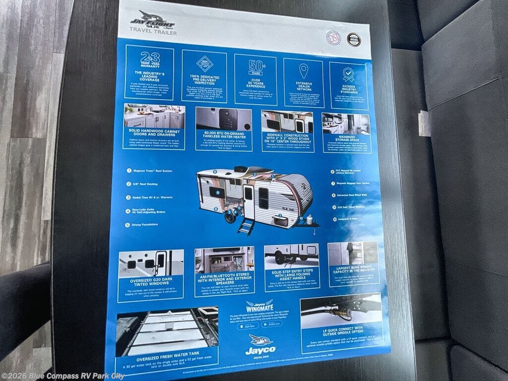The Jayco Jay Flight SLX travel trailer is quite easy to own because it is lightweight for an easier towing experience. Built on a fully integrated A-frame with galvanized-steel, impact-resistant wheel wells, the Jay Flight SLX has quality at its very foundation. That quality continues on to the electric self-adjusting brakes, easy-lube hubs, Magnum Truss roof system, and LP quick connect. Some of what the mandatory Customer Value Package includes is backup camera prep, Keyed-Alike entry and baggage doors, marine grade exterior speakers, and an on-demand tankless water heater.
