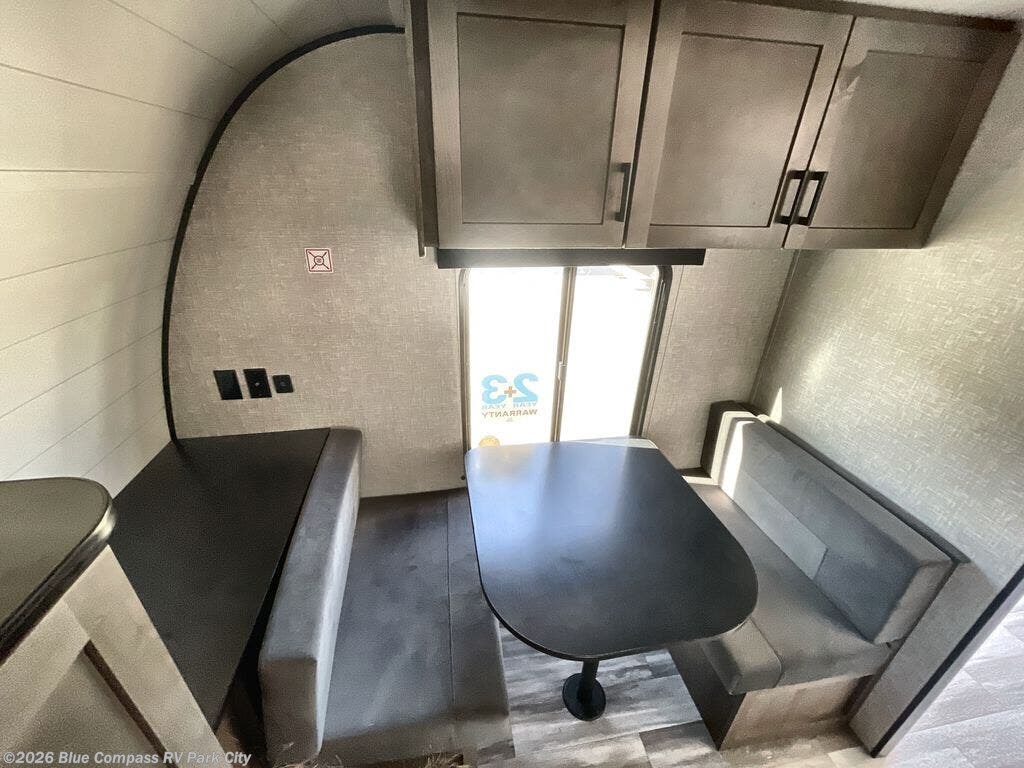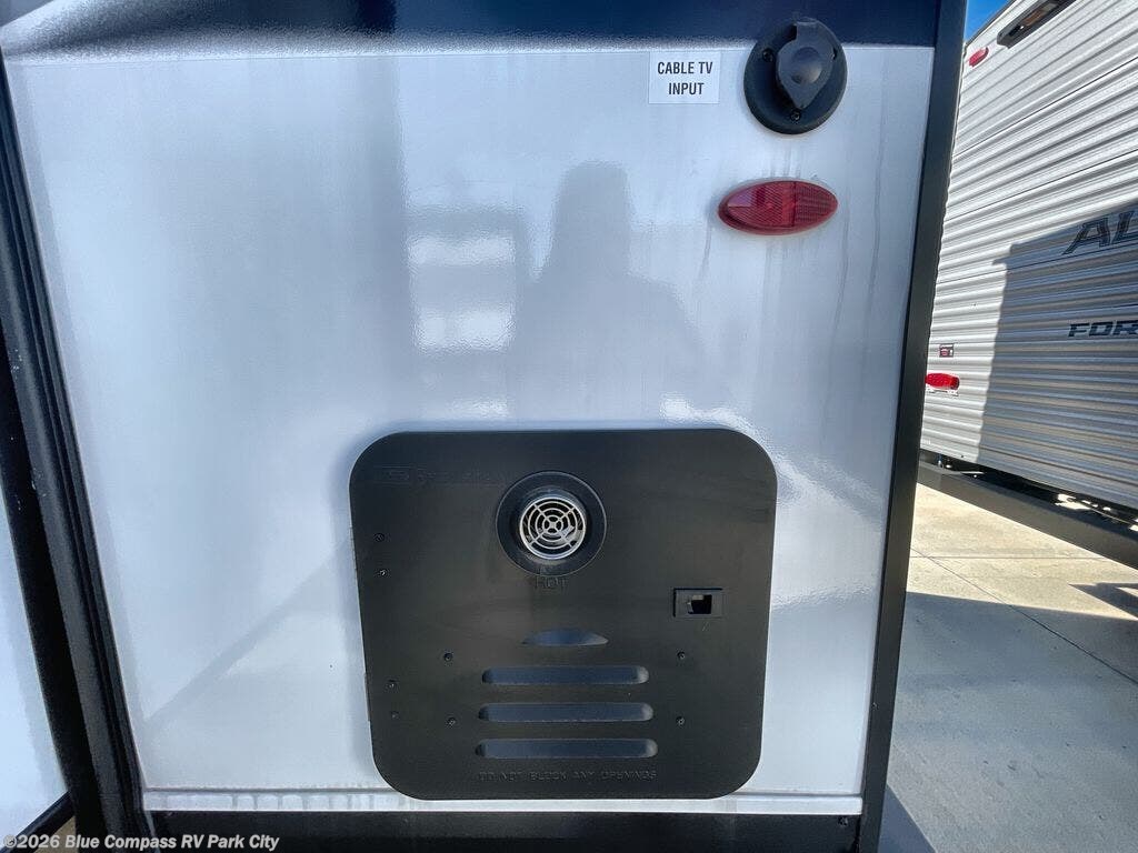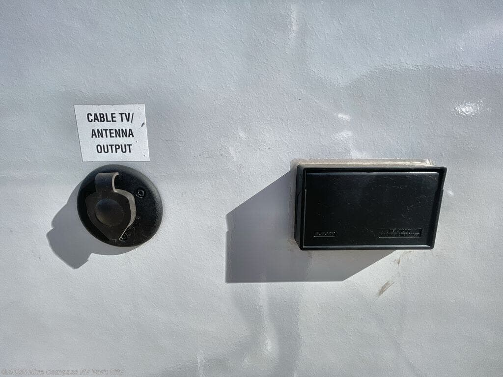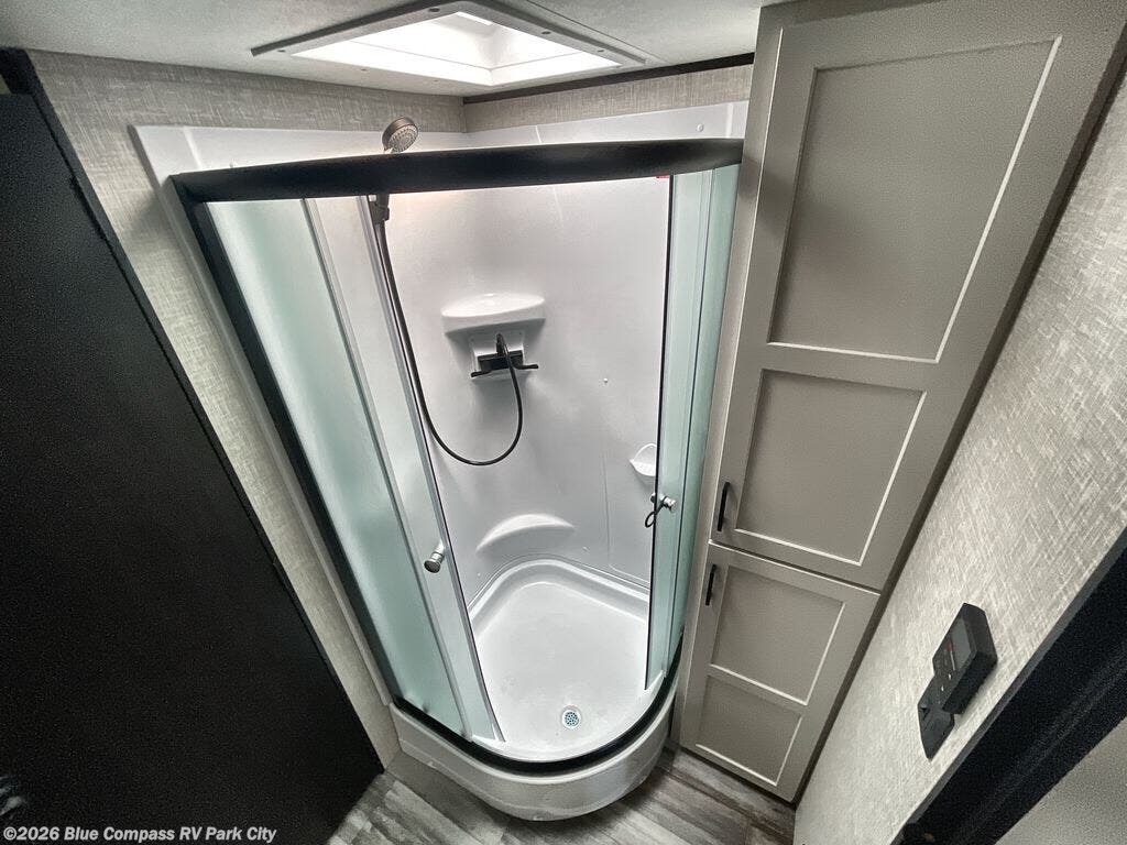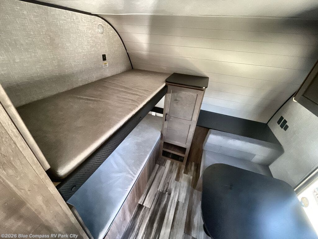 With two private bedrooms, everyone will have a comfortable place to sleep in this travel trailer! The front private bedroom has a 60" x 75" queen bed with wardrobes on either side and the rear private bedroom has a 60" x 80" queen bed slide with a dresser, a wardrobe, one of the exit/entrance doors, and an entrance into the walk-through bathroom which has a radius shower for everyone to stay squeaky clean. The patio doors not only make it easy to enter and exit the unit, but also bring in tons of natural lighting. After you have prepared a delicious home cooked meal, you can can head to the U-shaped dinette to enjoy it there comfortably then relax on the Jack-knife sofa across from the entertainment center!