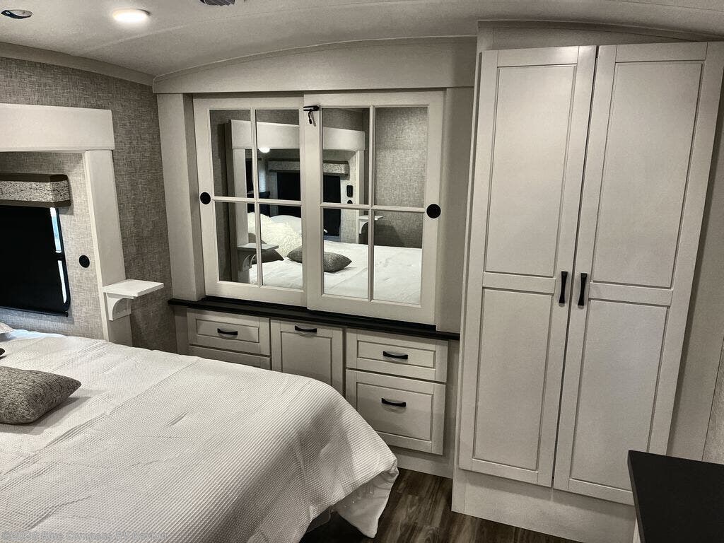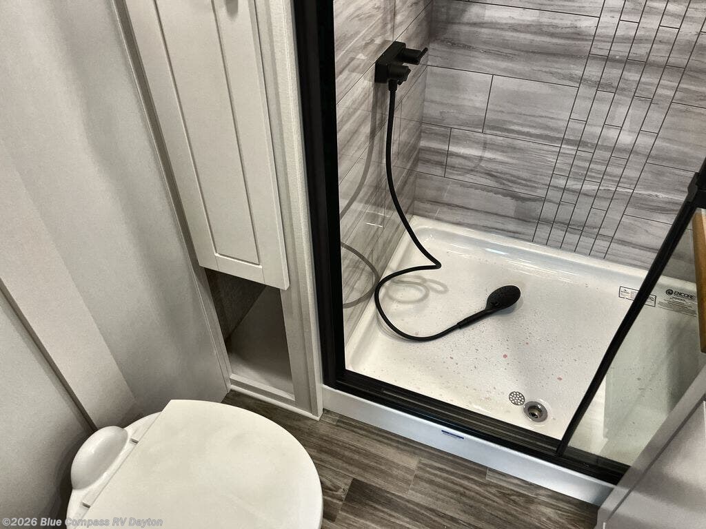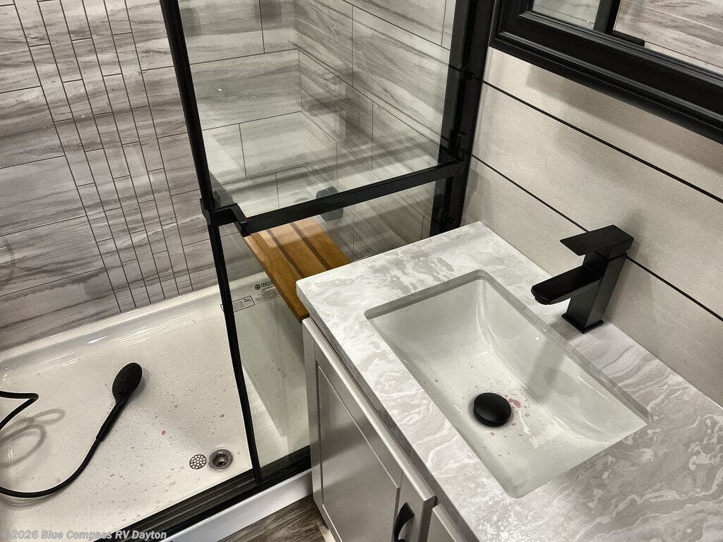 Luxury Bathroom – Equipped with a spa-inspired shower, dual vanities (select models), and high-end fixtures for a residential feel. - Four-Season Comfort – Stay comfortable in any climate with Jayco’s Climate Shield™ all-weather protection and whisper-quiet dual A/C system.