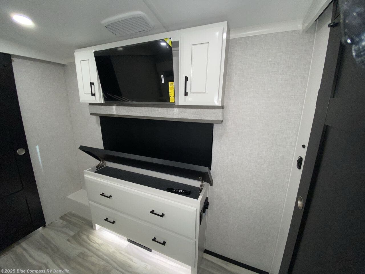 Triples slides, a desk/coffee bar, fireplace, and a huge master bath in front all indicate the kind of vacation you will experience in this Pinnacle Fifth Wheel! As you enter, a convenient half bath is located straight ahead. Slightly to your left, a nice seating area for gathering with family or friends to relax and watch TV, enjoy the fireplace while reading a book or watching a movie, and the dining table with chairs. The dinette slide also houses a 21 cu. ft. residential refrigerator and pantry. The rear kitchen features a u-shaped counter, all the appliances you need to cook like at home, even a pull-out butcher block space for chopping up your veggies. Back through and up the steps to your right in front, the master bedroom will make you feel like royalty with its king bed, plus luxurious full rear bath. A huge vanity with dual bath sinks will allow you both to get ready at the same time, plus there is a walk-in shower with a seat for added convenience. Speaking of walk-in, you will also love the spacious walk-in closet that includes washer/dryer prep.