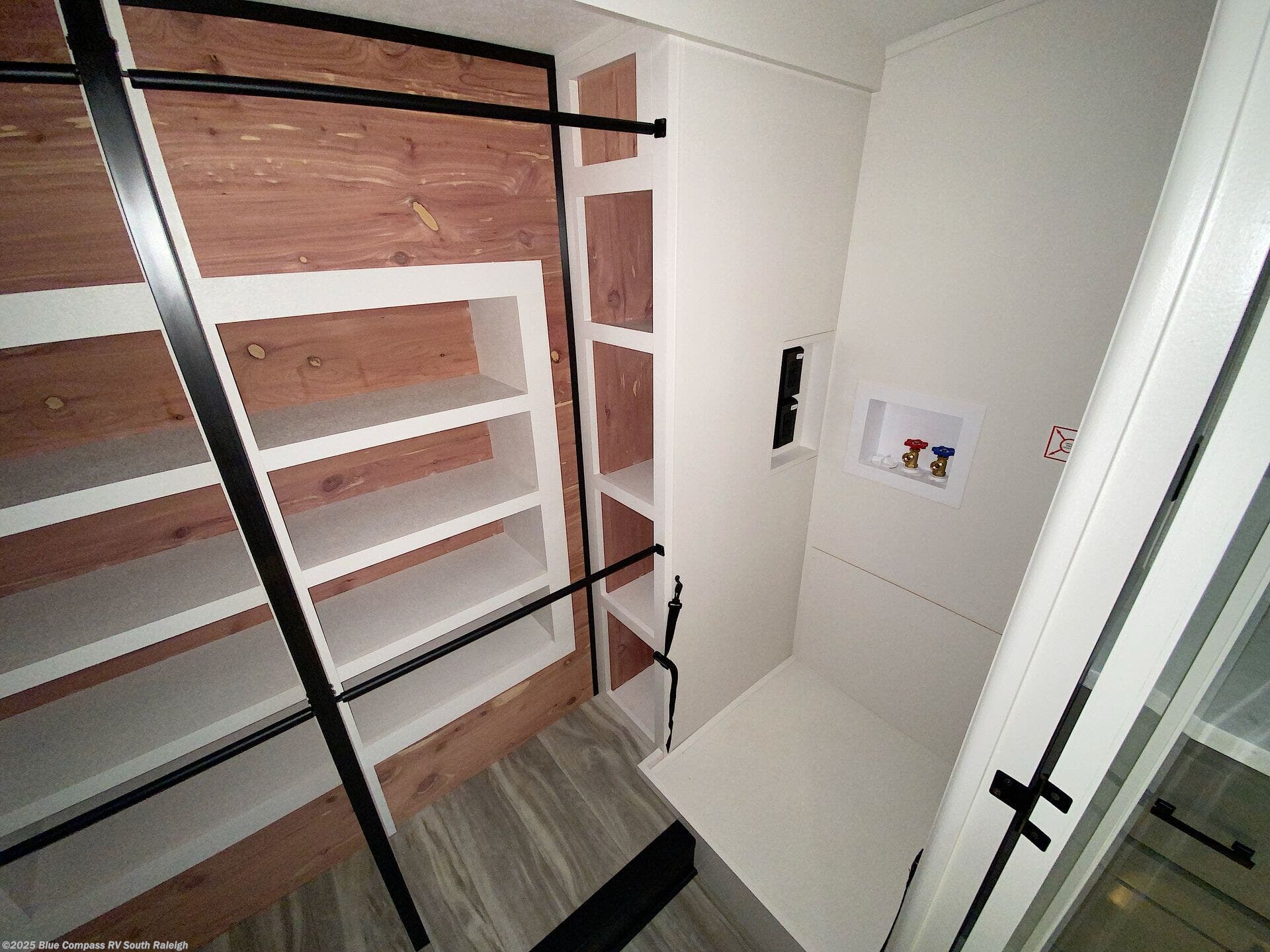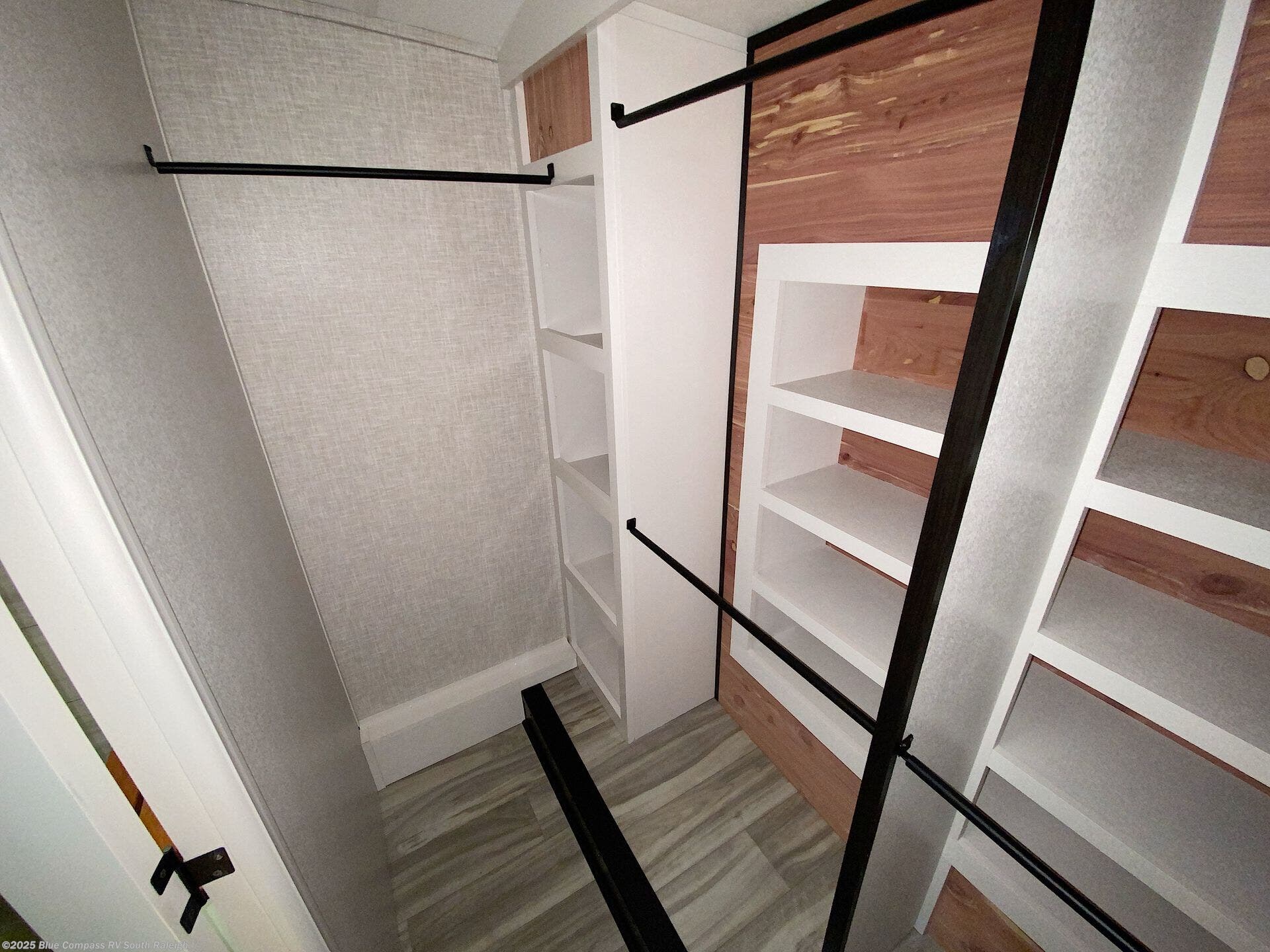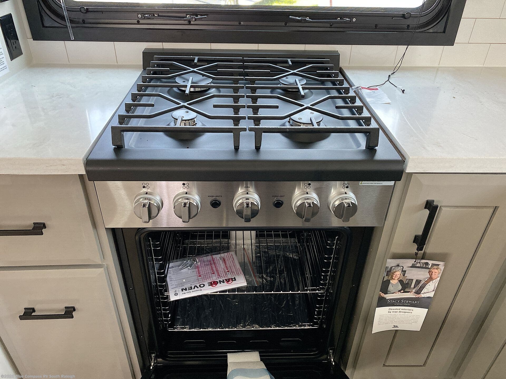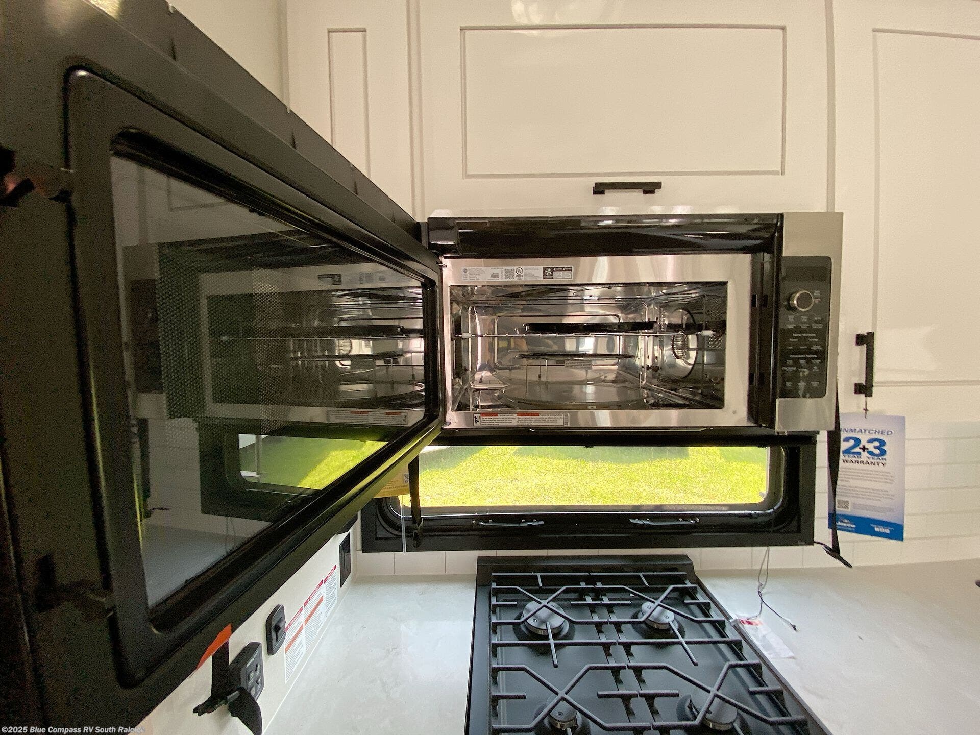 Triples slides, a desk/coffee bar, fireplace, and a huge master bath in front all indicate the kind of vacation you will experience in this Pinnacle Fifth Wheel! As you enter, a convenient half bath is located straight ahead. Slightly to your left, a nice seating area for gathering with family or friends to relax and watch TV, enjoy the fireplace while reading a book or watching a movie, and the dining table with chairs. The dinette slide also houses a 21 cu. ft. residential refrigerator and pantry. The rear kitchen features a u-shaped counter, all the appliances you need to cook like at home, even a pull-out butcher block space for chopping up your veggies. Back through and up the steps to your right in front, the master bedroom will make you feel like royalty with its king bed, plus luxurious full rear bath. A huge vanity with dual bath sinks will allow you both to get ready at the same time, plus there is a walk-in shower with a seat for added convenience. Speaking of walk-in, you will also love the spacious walk-in closet that includes washer/dryer prep.