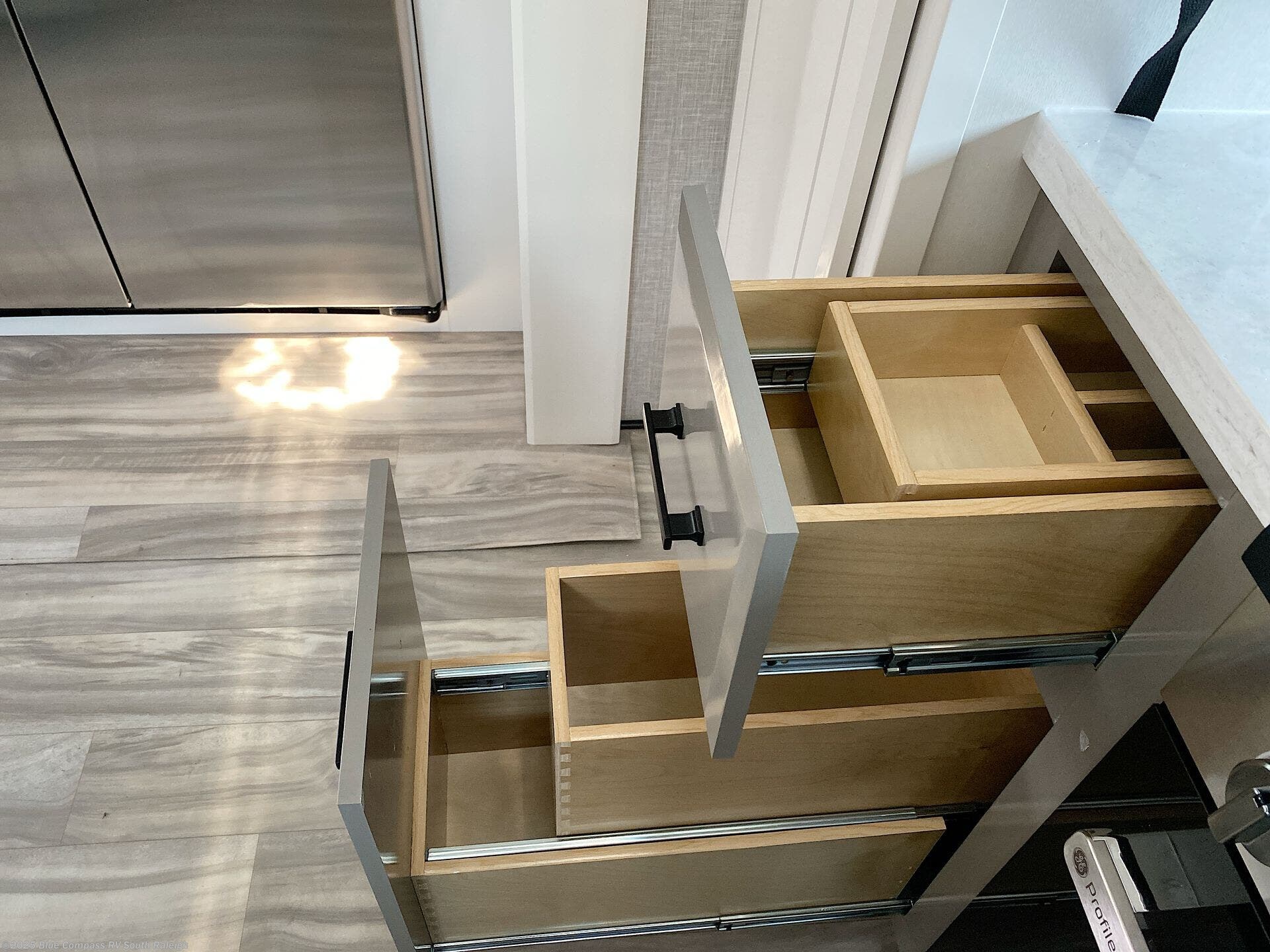 Each Pinnacle fifth wheel features Stronghold VBL lamination for the lightest, yet strongest construction in the RV industry. Add that to the Magnum Truss XL6 roof system and Climate Shield zero-degree tested weather protection and you'll be enjoying your fifth wheel for years to come. Some of the exterior conveniences you will appreciate are the Keyed-Alike lock system, the fully enclosed, universal docking center, and the 6-point hydraulic auto-leveling system for quick and easy set up. The 5 Star Handling Package will make towing a fifth wheel a walk in the park, and the two Whisper Quiet A/C units will keep you comfortable during the hot summer months. Inside, you'll enjoy the residential "Do it all" sink with pull-out kitchen faucet, glass rinse, and vegetable rinse, the handcrafted hardwood glazed cabinetry, the vinyl flooring throughout, plus many more comforts. There is even a central vacuum system, a wireless remote control system, USB ports throughout, plus many more conveniences to make each trip enjoyable.