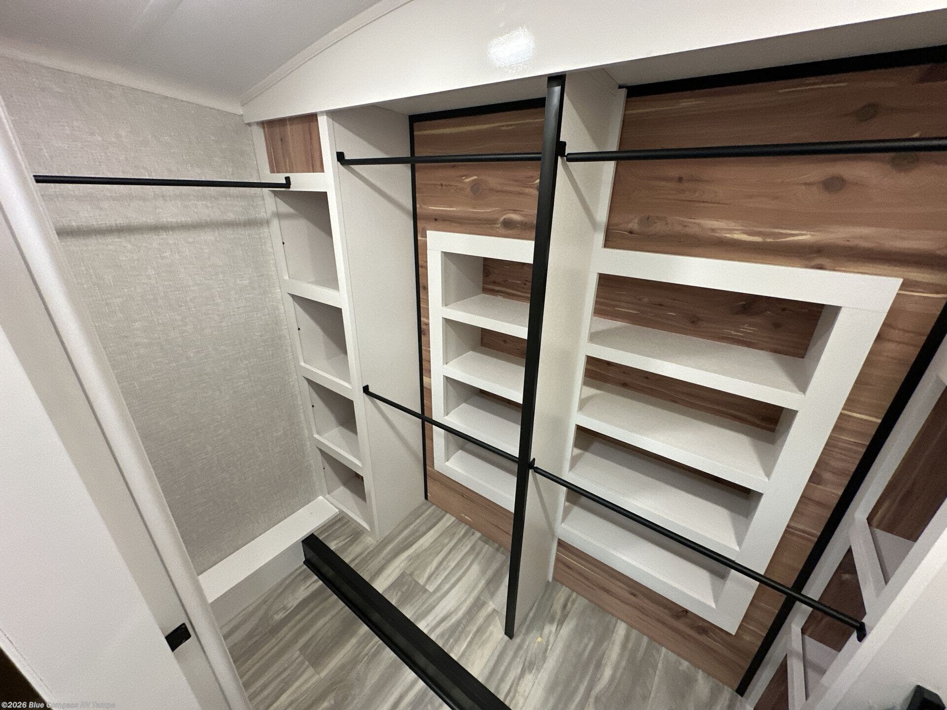 Triples slides, a desk/coffee bar, fireplace, and a huge master bath in front all indicate the kind of vacation you will experience in this Pinnacle Fifth Wheel! As you enter, a convenient half bath is located straight ahead. Slightly to your left, a nice seating area for gathering with family or friends to relax and watch TV, enjoy the fireplace while reading a book or watching a movie, and the dining table with chairs. The dinette slide also houses a 21 cu. ft. residential refrigerator and pantry. The rear kitchen features a u-shaped counter, all the appliances you need to cook like at home, even a pull-out butcher block space for chopping up your veggies. Back through and up the steps to your right in front, the master bedroom will make you feel like royalty with its king bed, plus luxurious full rear bath. A huge vanity with dual bath sinks will allow you both to get ready at the same time, plus there is a walk-in shower with a seat for added convenience. Speaking of walk-in, you will also love the spacious walk-in closet that includes washer/dryer prep.