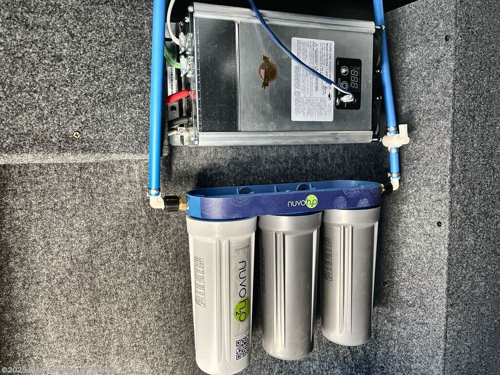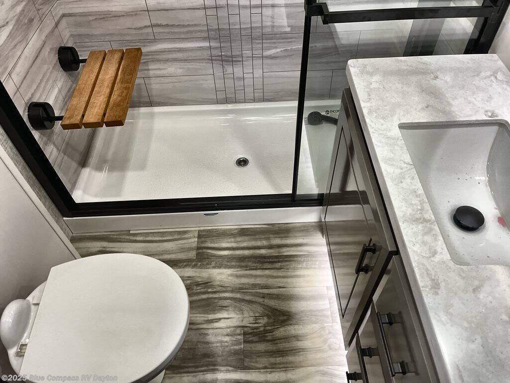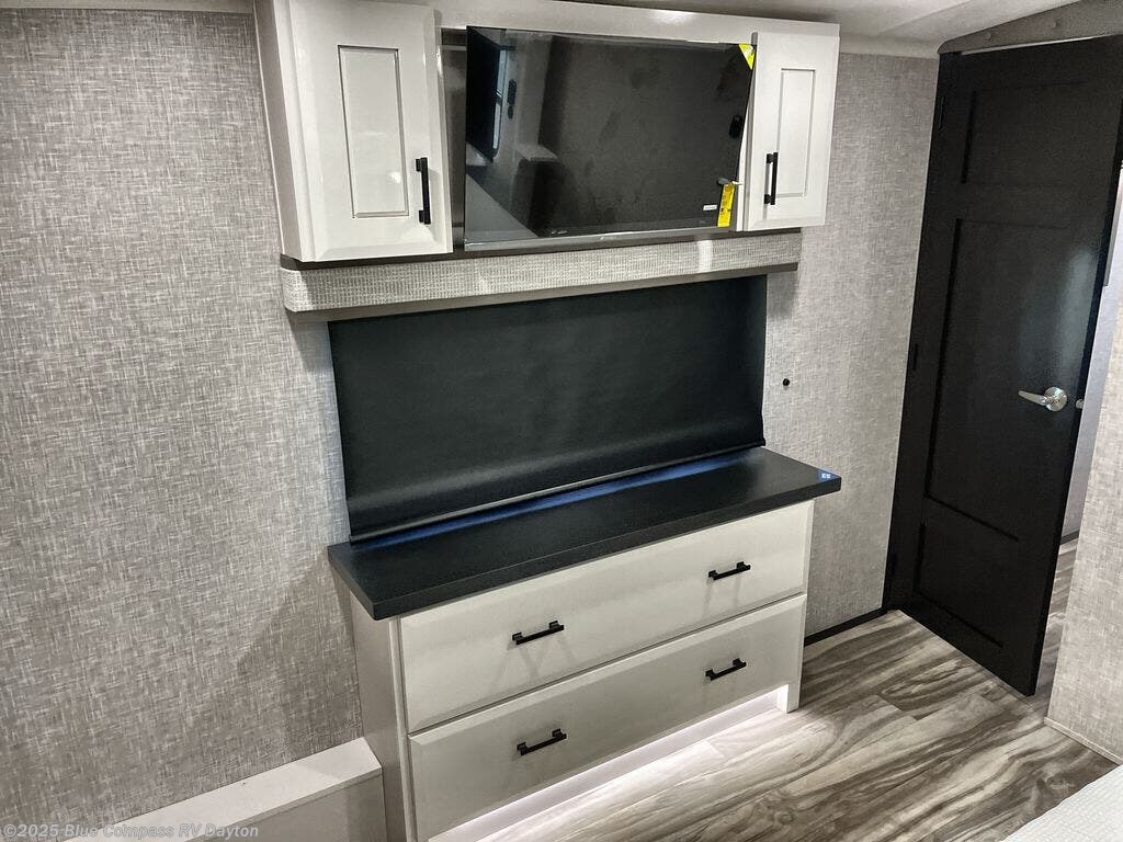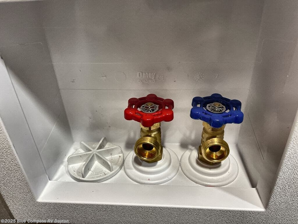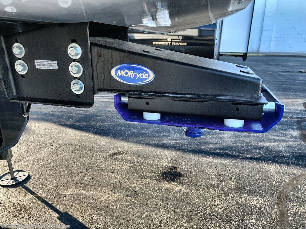 Your search is over now with this perfect luxury fifth wheel for your crew of four. Once you get settled at the campground, take a load off on the theater seat sacross from the TV lift and fireplace. There is also a free-standing table here and a tri-fold sofa that will double as additional seating and sleeping space. The kitchen island includes a pull-out cutting board extension for tons of prep space and even a dishwasher for easy clean up, and a residential range to use for cooking as well as a convection microwave oven with built-in air fryer. Head to the full bath that includes a walk-in shower with a seat, an LED backlit custom framed mirror, plus residential bath backsplash for added luxury. You're gong to love the front private bedroom with its king bed slide out, 32" TV, plus a large front closet complete with a hamper and drawers, and an area that features washer/dryer prep in case you wish to add that convenience as well.