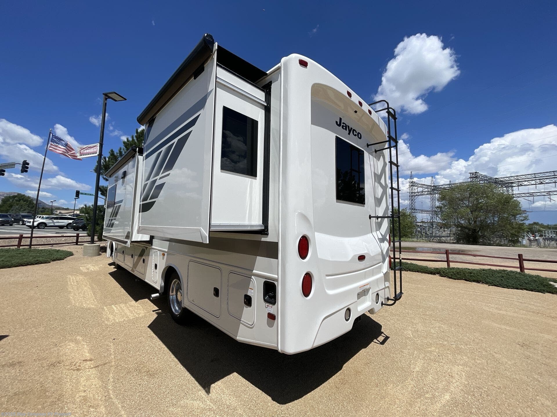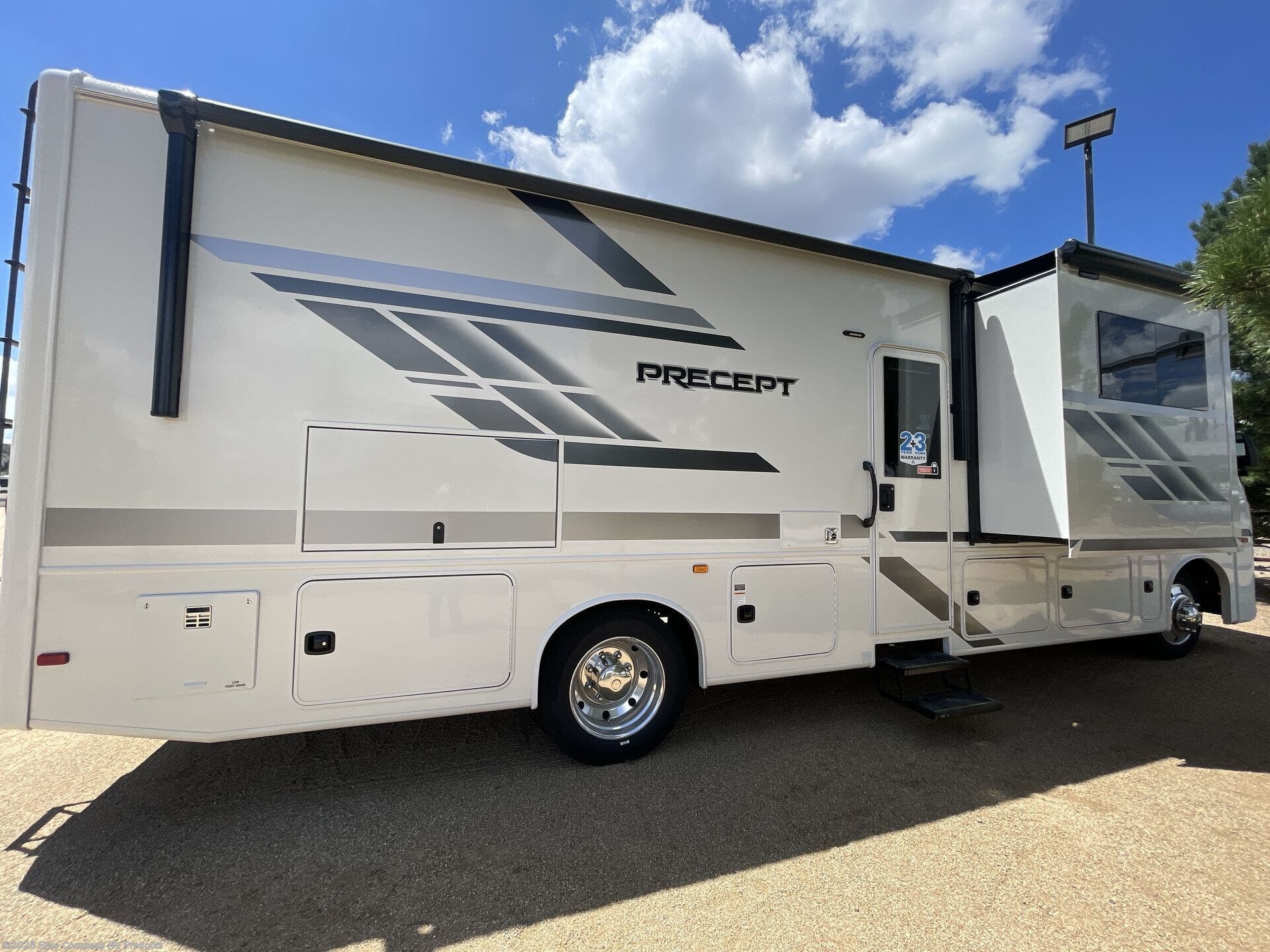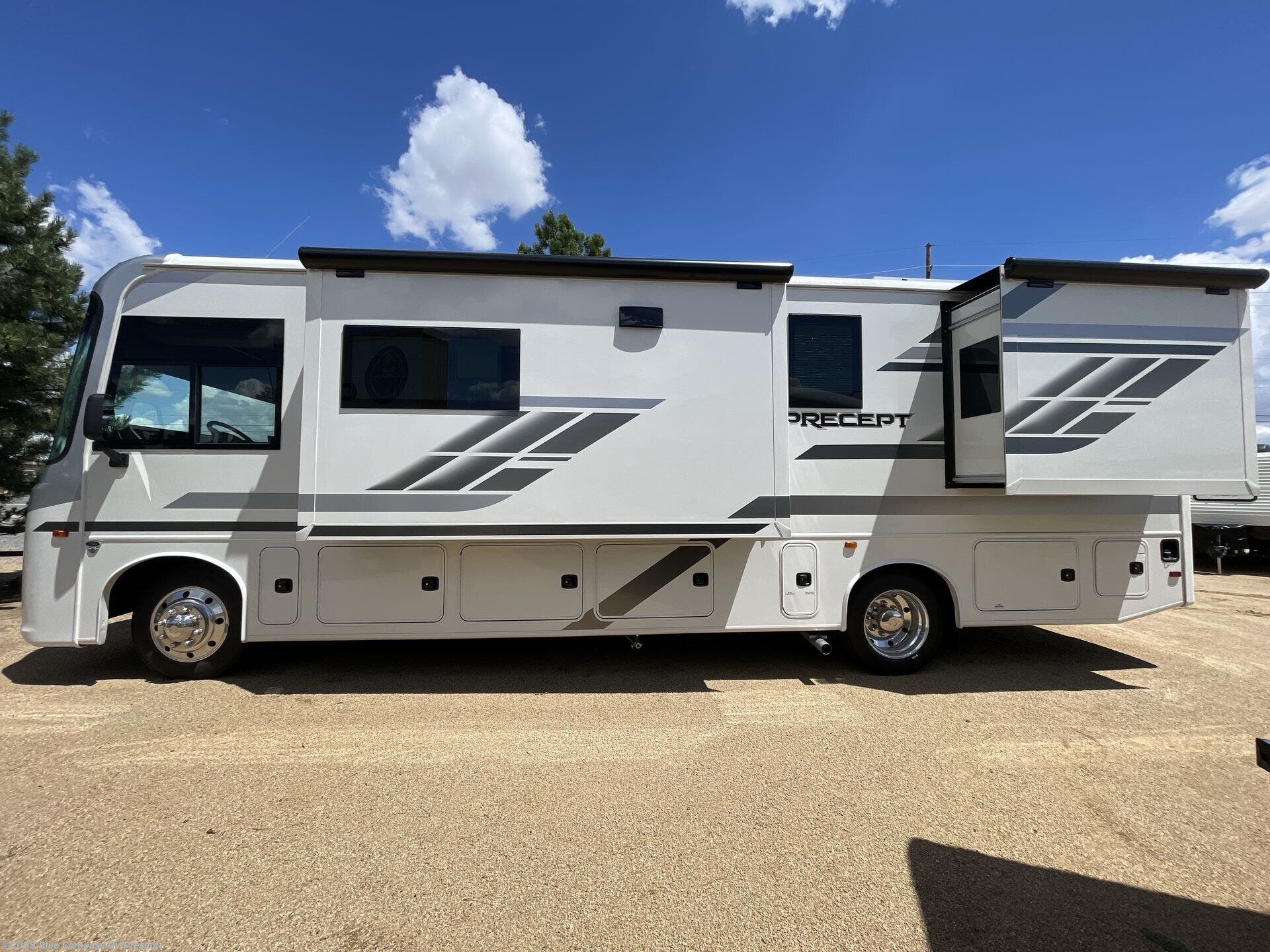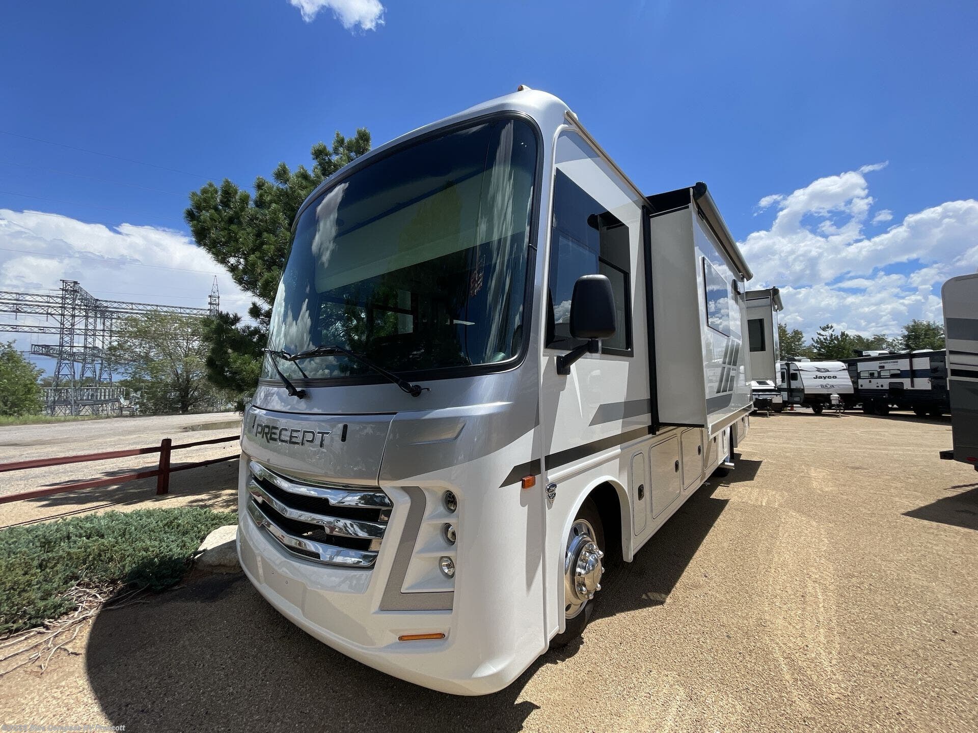 The Jayco Precept Class A gas motorhome comes with some features that you'll only find on a Jayco product, like the JRide Plus which offers you a powerful blend of precise handling and renowned stability on the road and the Firefly total coach control system which allows you to control your coach's operations from just about anywhere with your phone. You'll find two-point lap seatbelts in all designated seating locations, and the one-piece, seamless fiberglass front and rear caps resist wear and tear over the years. The Precept also offers you the lightest yet strongest construction in the industry with the Stronghold VBL lamination on the roof, floor, and sidewalls. You'll also be very pleased to find a 120" panoramic windshield, automatic hydraulic leveling jacks, and a 5,500W generator with auto-gen start.