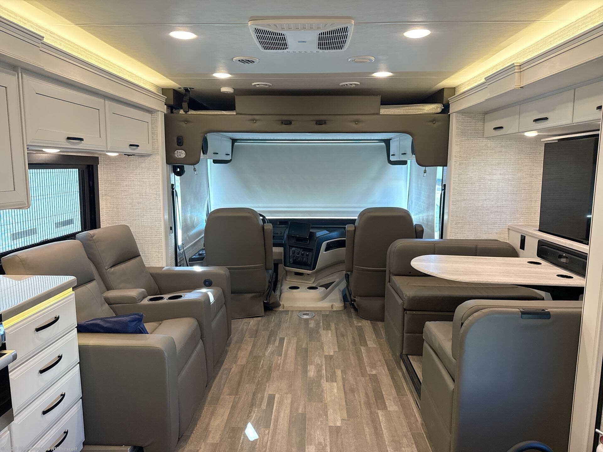 The fun is just about to begin with this Precept Class A gas motorhome! You will have an amazing night of sleep on the RV king bed slide back in the private bedroom, and the bedroom also offers you an LED TV to watch while you relax. The separated bathroom gives you a chance to have two people getting ready at the same time, and the opposing slides in the main living area provide some extra room for lounging or socializing. As you drive down the road, you'll appreciate the removable cockpit table that sits in between the swivel cab seats, and you can create some extra sleeping space by adding the optional drop-down overhead bunk in the cab.