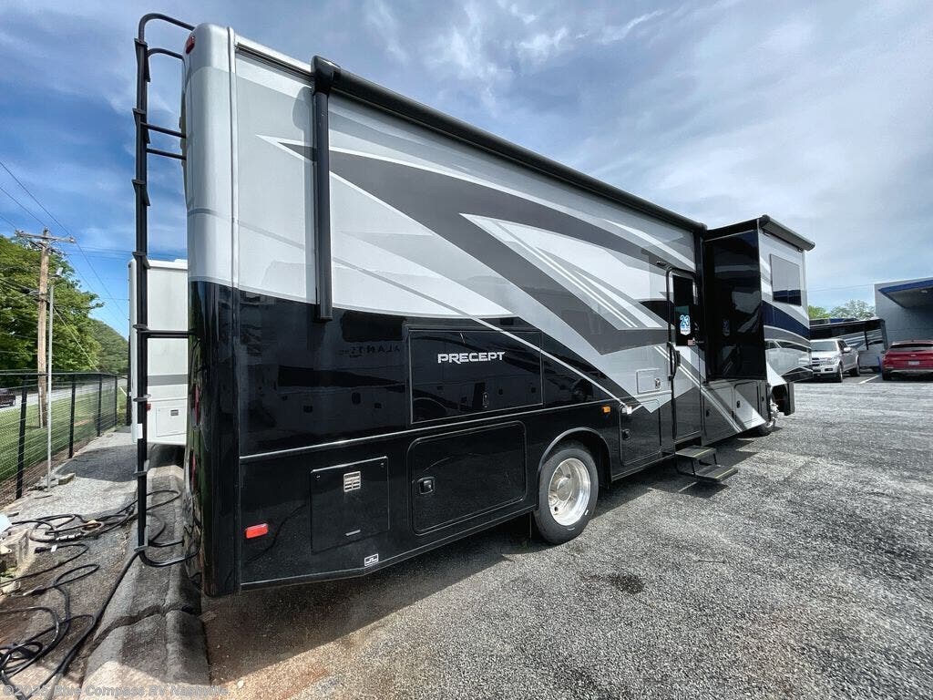 The Jayco Precept Class A gas motorhome comes with some features that you'll only find on a Jayco product, like the JRIDE PLUS which offers you a powerful blend of precise handling and renowned stability on the road and the Firefly total coach control system which allows you to control your coach's operations from just about anywhere with your phone. You'll find two-point lap seatbelts in all designated seating locations, and the one-piece, seamless fiberglass front and rear caps resist wear and tear over the years. The Precept also offers you the lightest yet strongest construction in the industry with the Stronghold VBL lamination on the roof, floor, and sidewalls. You'll also be very pleased to find a 120" panoramic windshield, automatic hydraulic leveling jacks, and a 5,500W generator with auto-gen start.