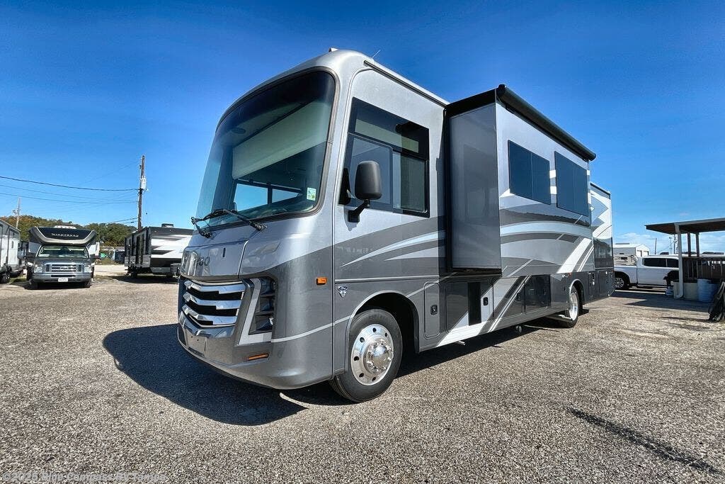 The Jayco Precept Class A gas motorhome comes with some features that you'll only find on a Jayco product, like the JRide Plus which offers you a powerful blend of precise handling and renowned stability on the road and the Firefly total coach control system which allows you to control your coach's operations from just about anywhere with your phone. You'll find two-point lap seatbelts in all designated seating locations, and the one-piece, seamless fiberglass front and rear caps resist wear and tear over the years. The Precept also offers you the lightest yet strongest construction in the industry with the Stronghold VBL lamination on the roof, floor, and sidewalls. You'll also be very pleased to find a 120" panoramic windshield, automatic hydraulic leveling jacks, and a 5,500W generator with auto-gen start.