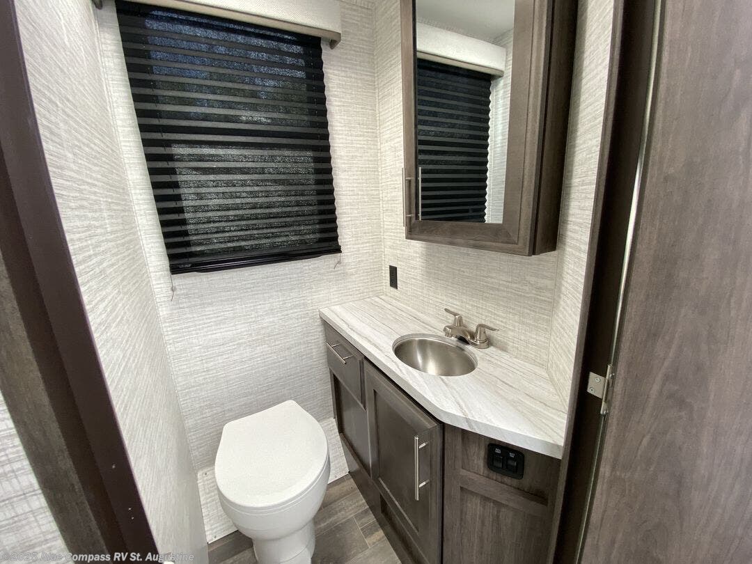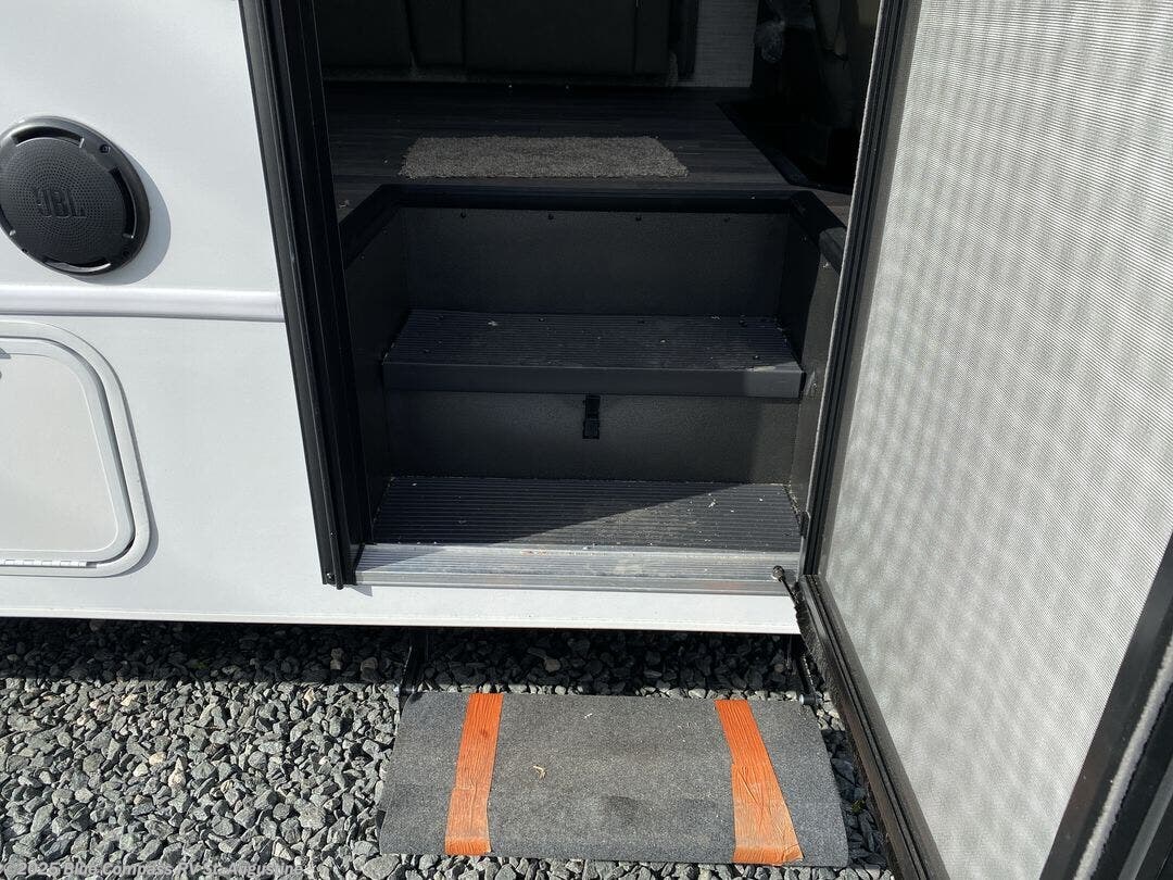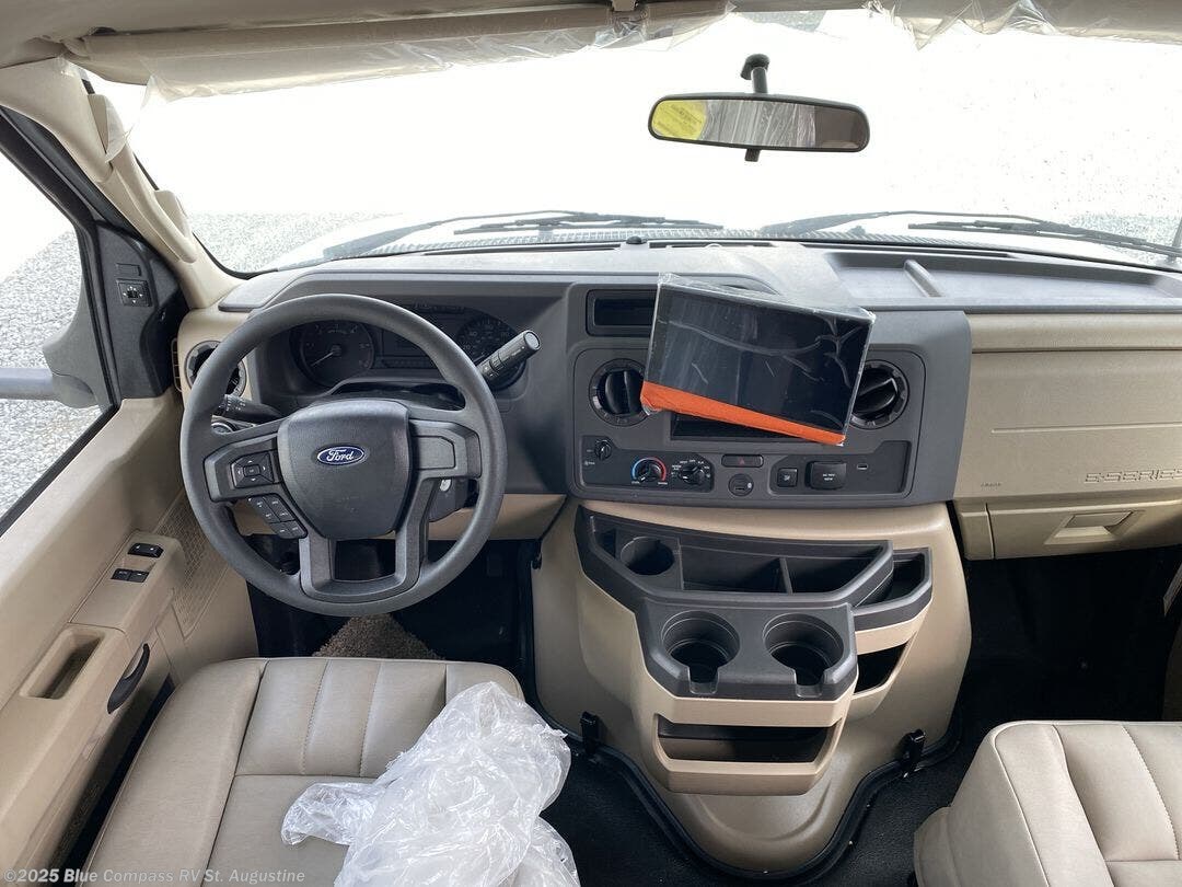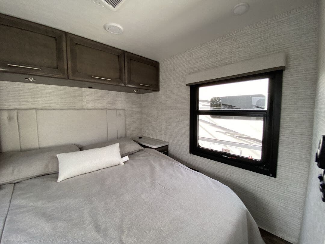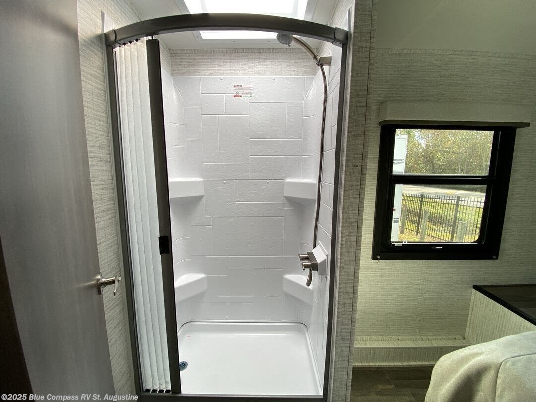 Explore new places as you travel in this coach with the comforts of home and the conveniences you are accustom to. In the rear bedroom, you will appreciate privacy when you close the divider to enjoy the walk-around queen bed with storage for your clothes. There is a private toilet and sink with the shower right across the hall so two people can freshen up at once. The chef will love the galley kitchen which is spacious thanks to the furniture slide out. The Furrion all-in-one cooktop along with the residential-size microwave, plus the 10 cu. ft. refrigerator will give the cook everything for warm meals for two or more. The driver and passenger seats swivel to become a part of the living area seating, and the cab-over bunk her will be a big plus for the little ones. You can also choose the optional theater seating in place of the sofa if you're not needing the additional sleeping space.