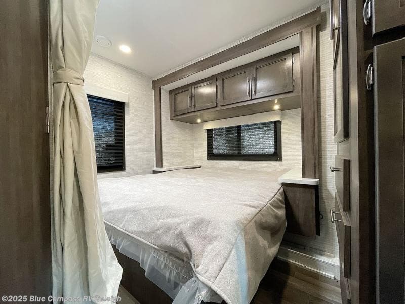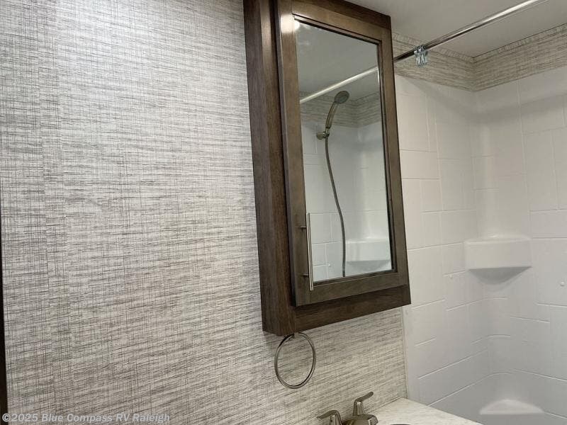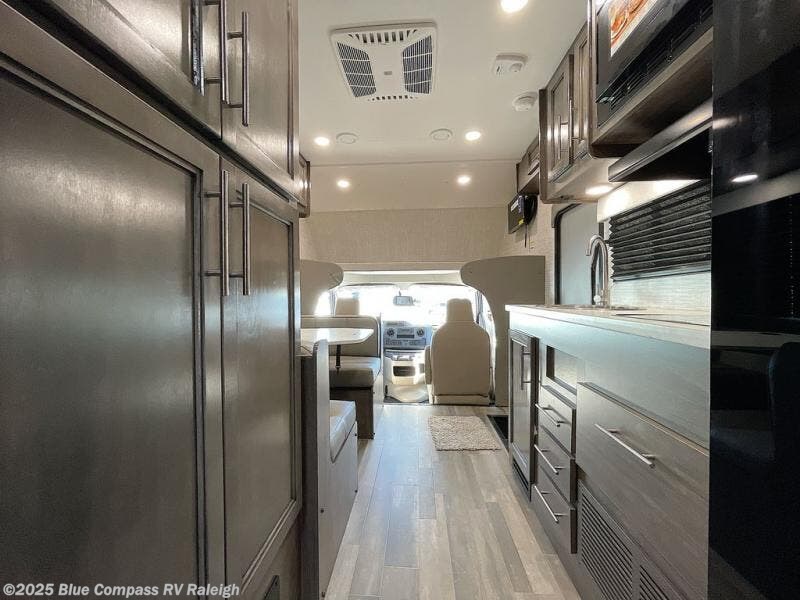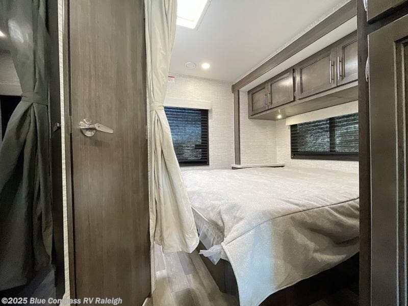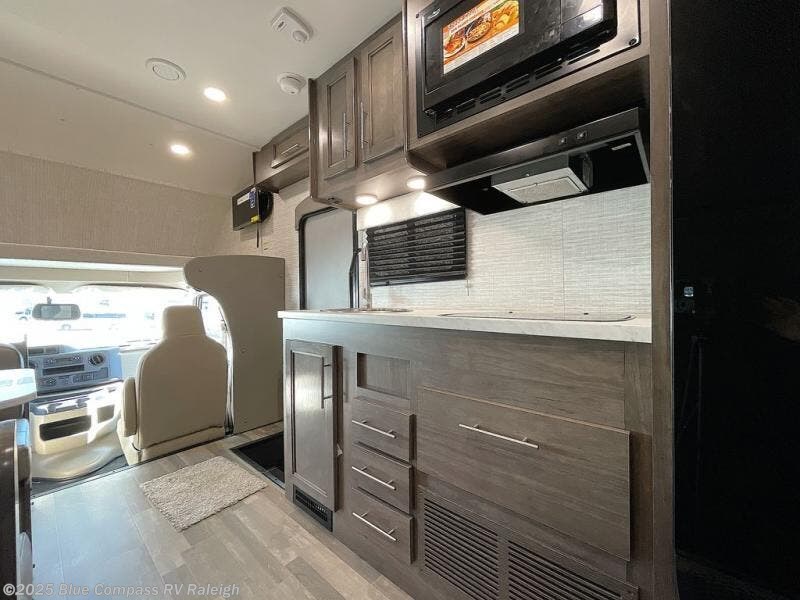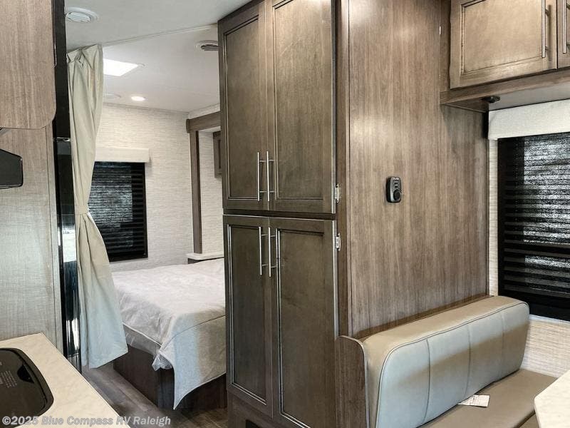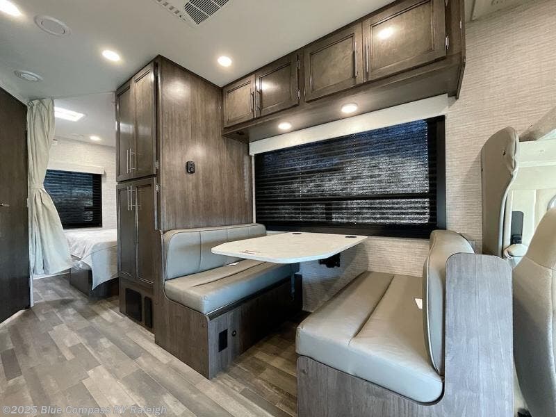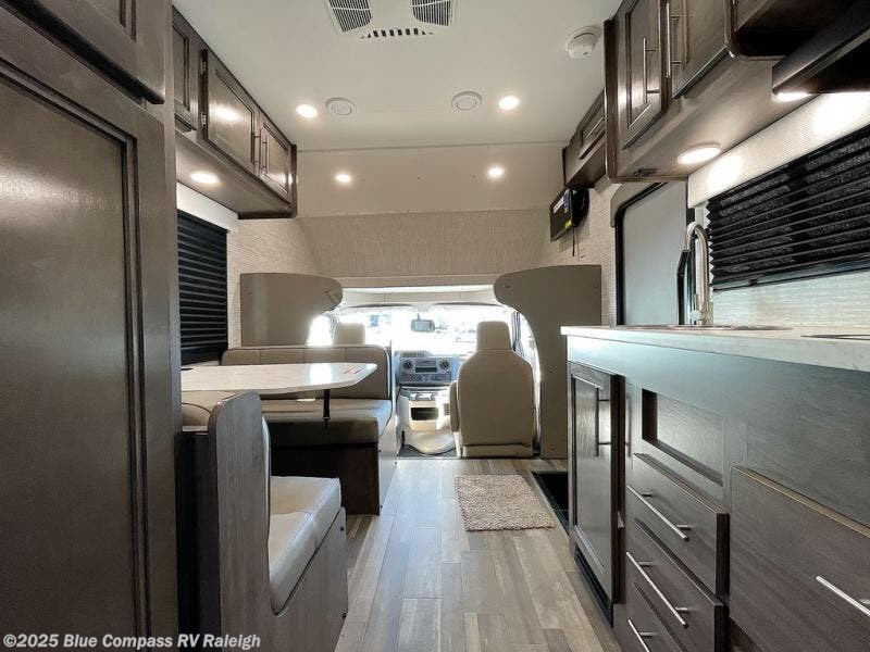 There's a comfortable place to sleep for everyone in this motorhome! From the corner 60" x 70" queen bed that slides out to the bunk over cab, and even the 42" x 70" booth dinette once converted. You can store your favorite snacks and hang up your clothes in the wardrobe/pantry. The chef can prepare delicious meals with the two burner cooktop and if there happens to be any leftovers then they can be stored in the 10 cu. ft. 12V refrigerator. The rear corner bathroom has a 24" x 36" shower that you are sure to enjoy after a long day of traveling!